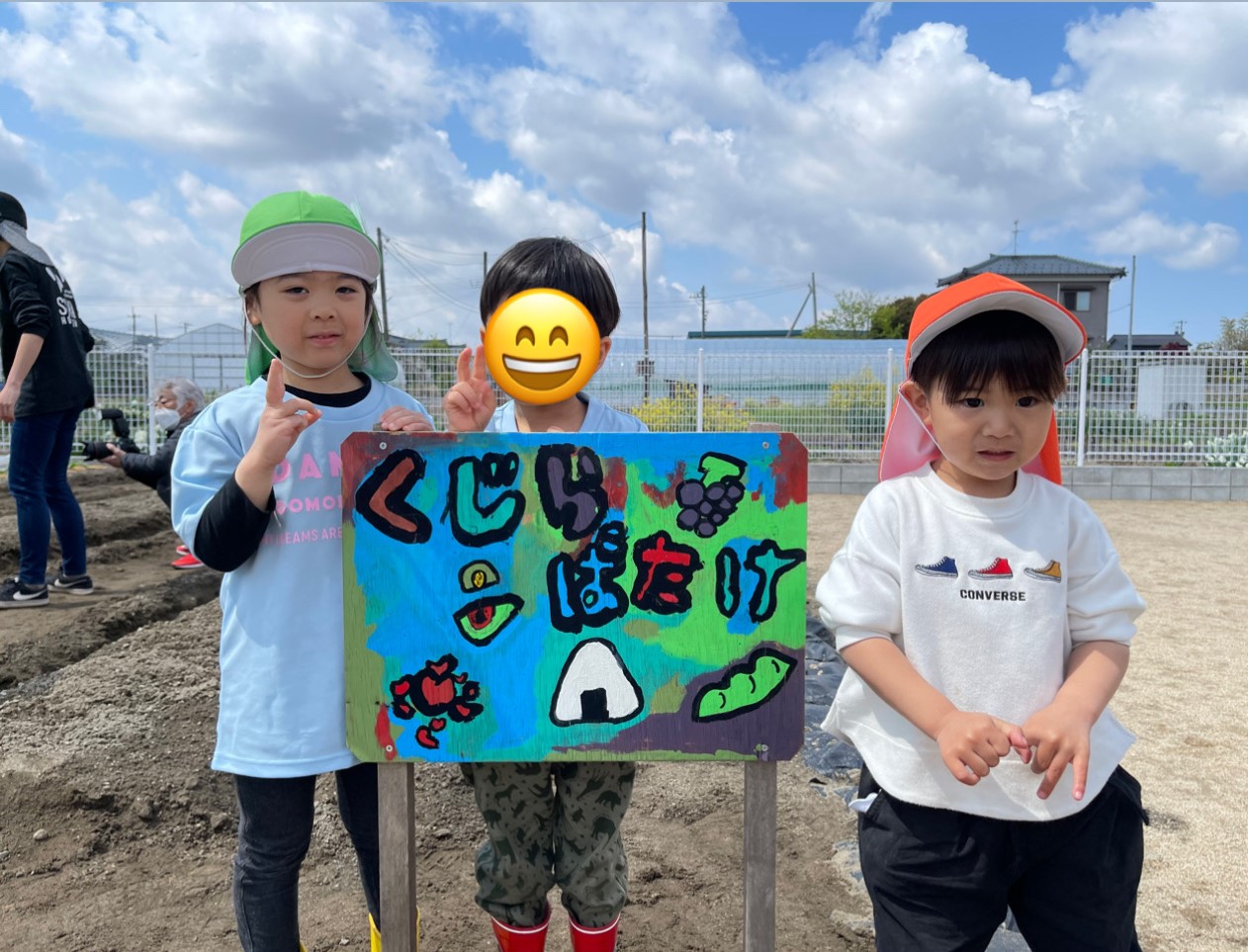そして、えだまめこども園の3名が集まり、園庭にある畑の開墾式を行いました!