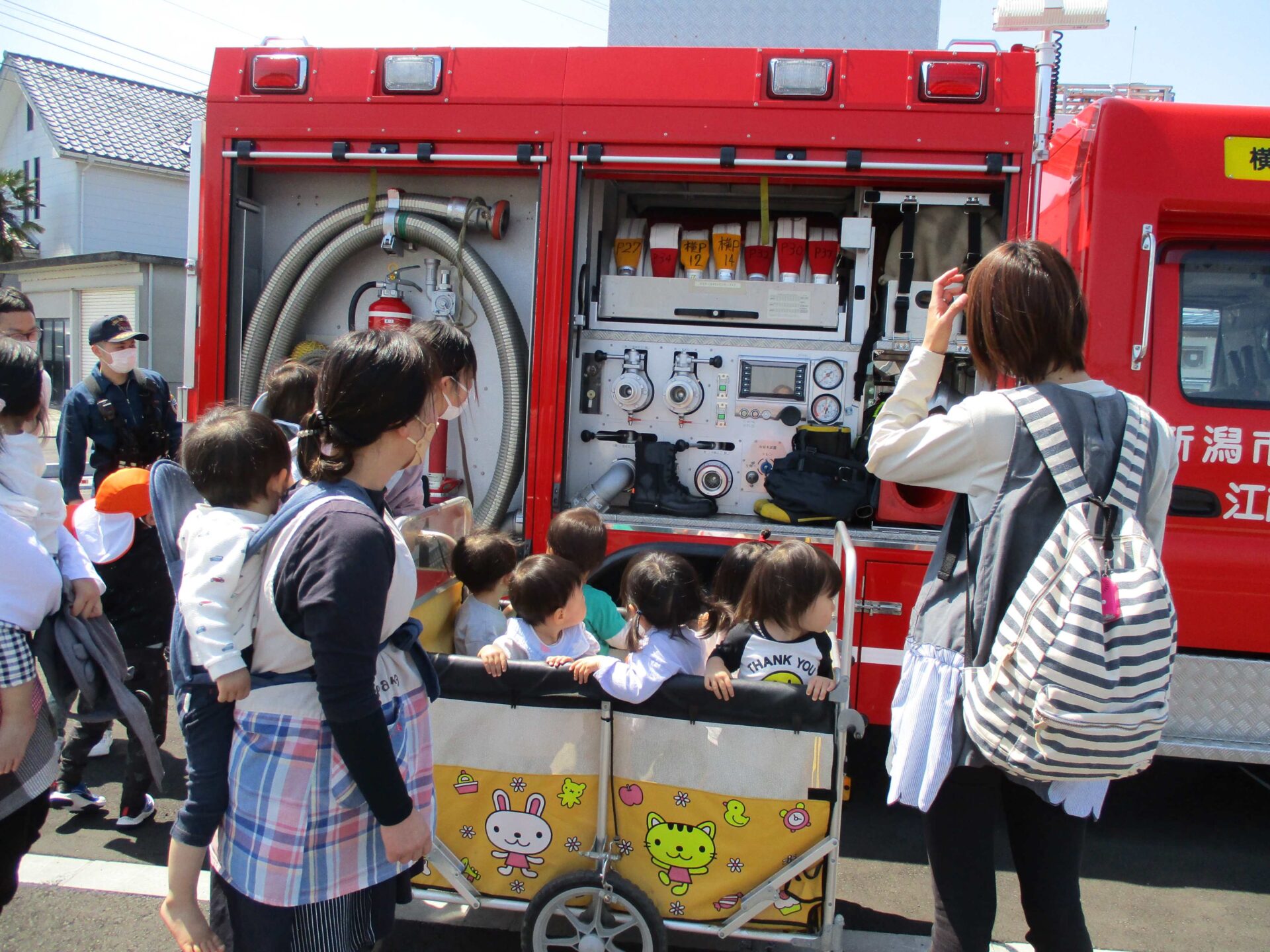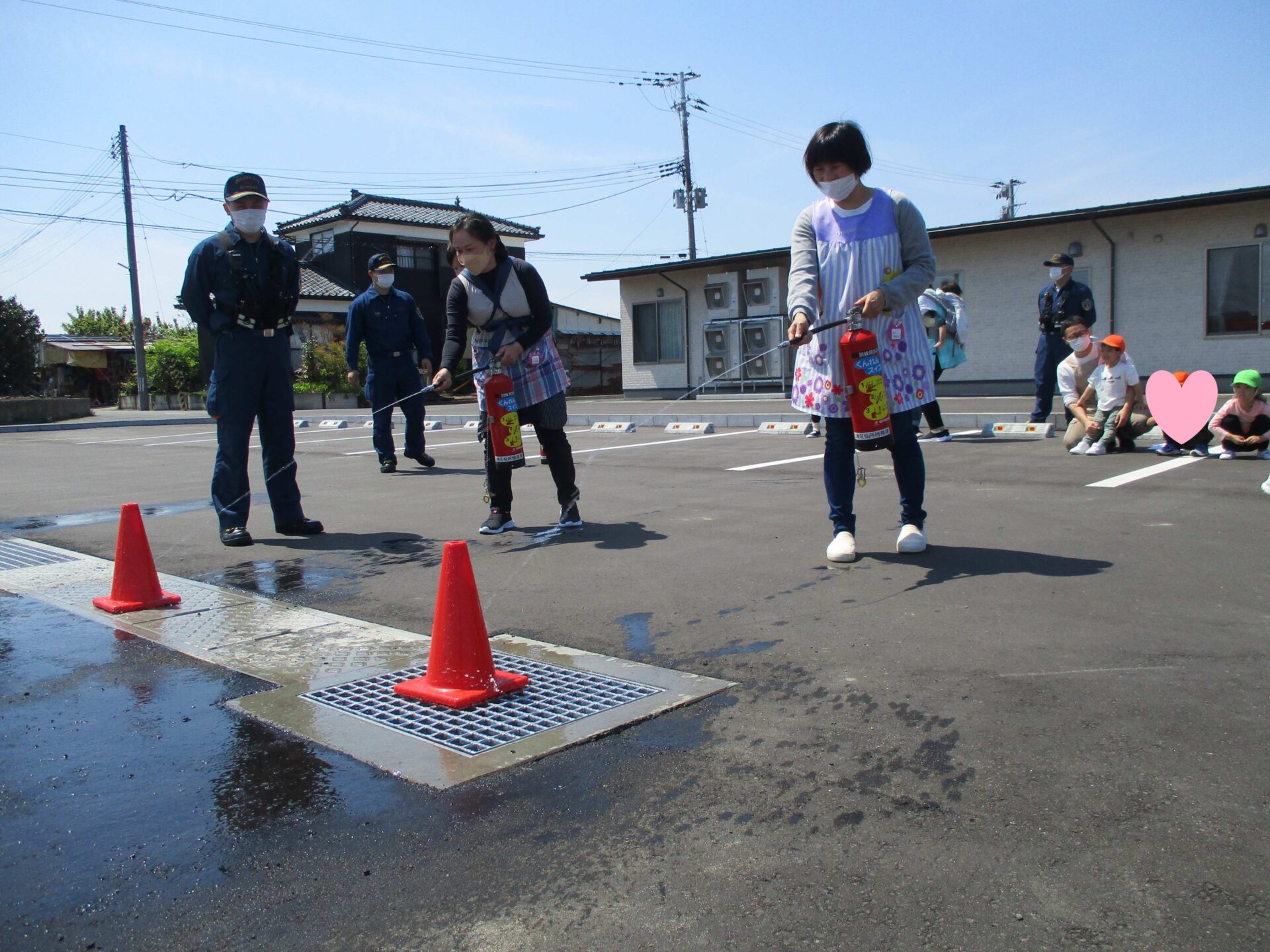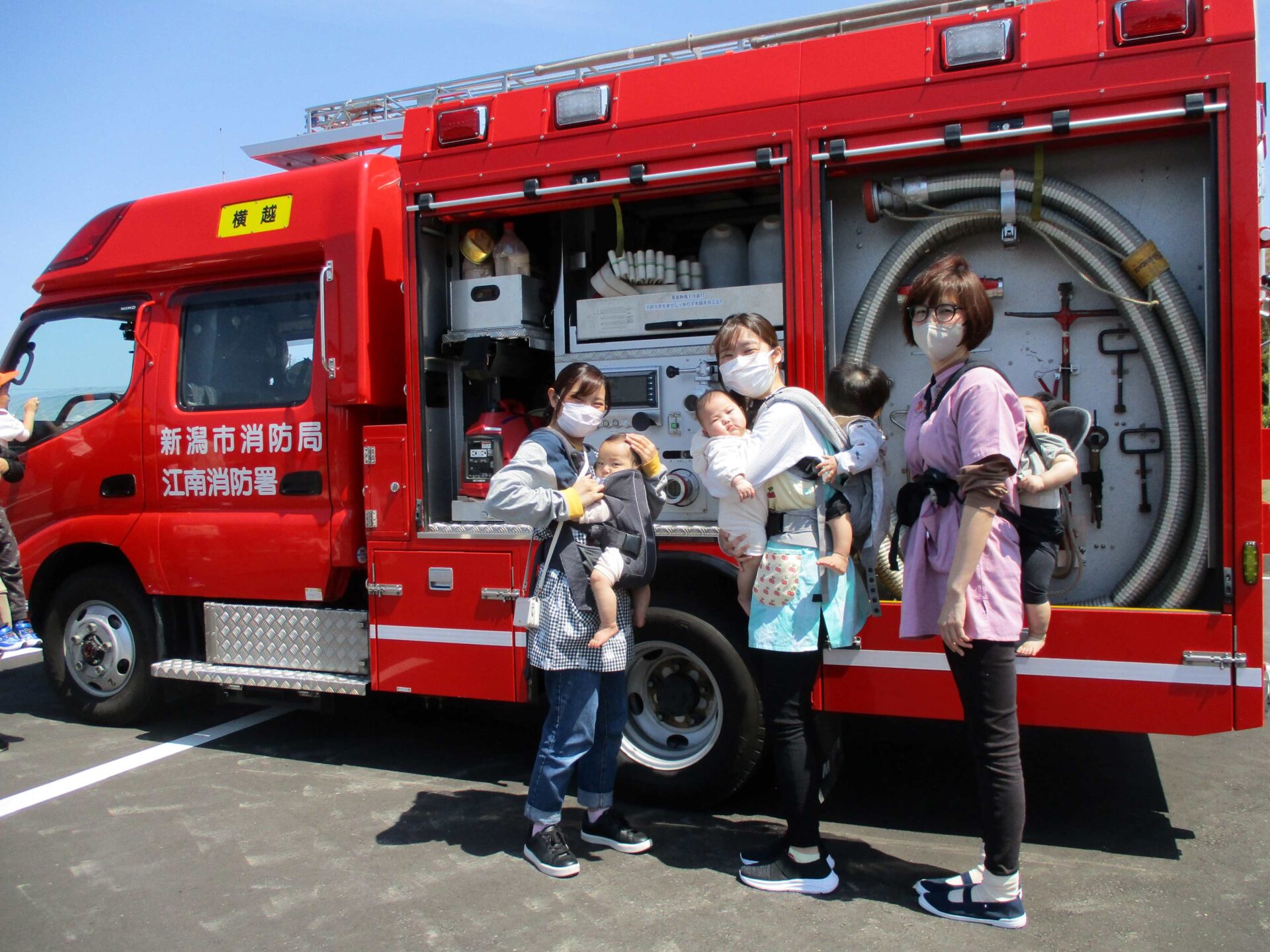 消防士さんたちが見守る中、無事に避難できました!