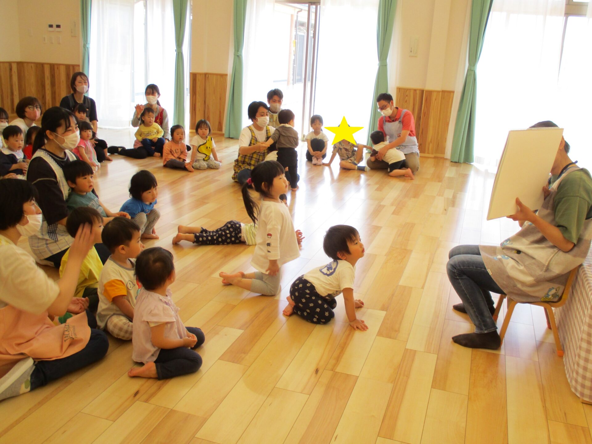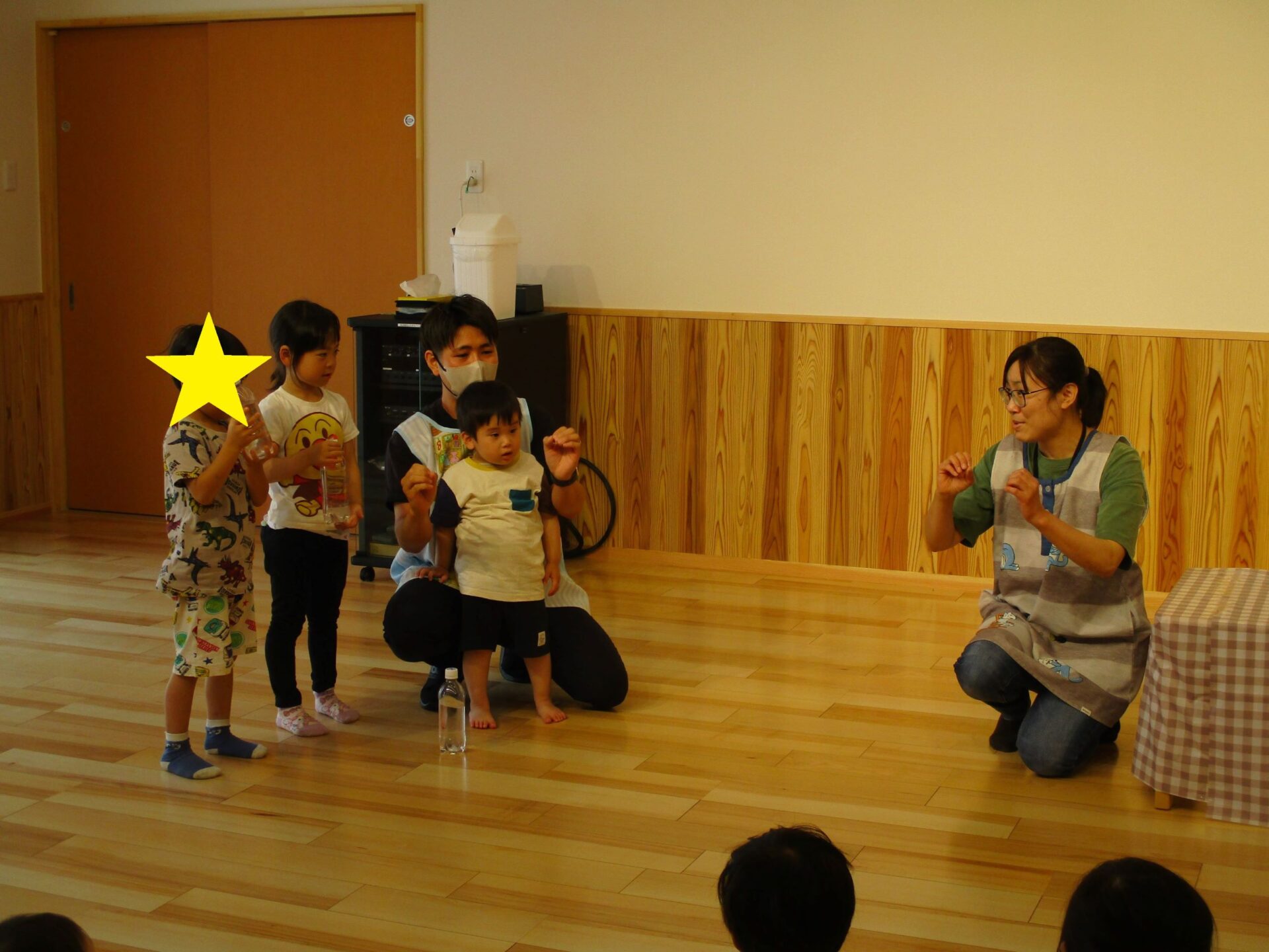 えだまめこども園の先生たちが次々に登場し、ホールの中は大盛り上がり!!