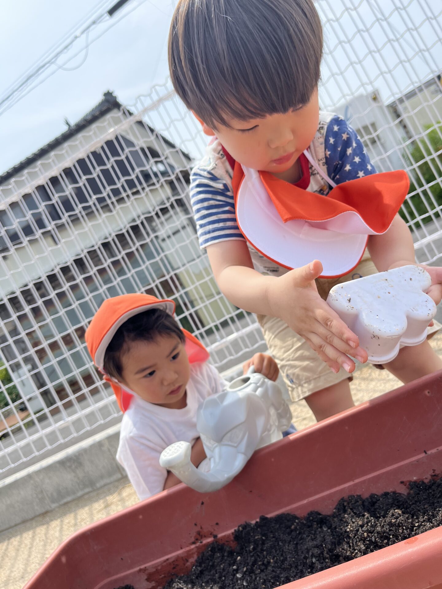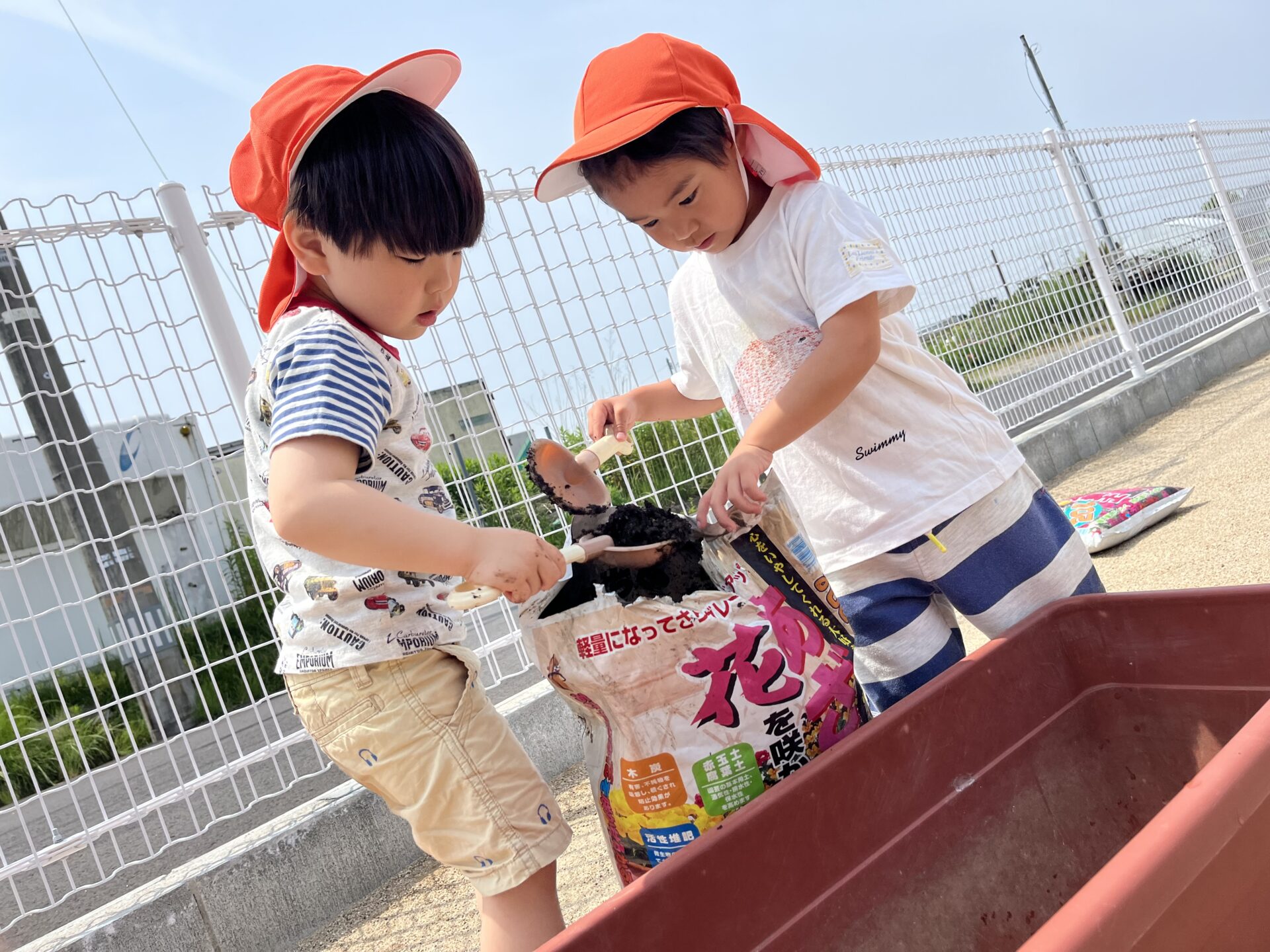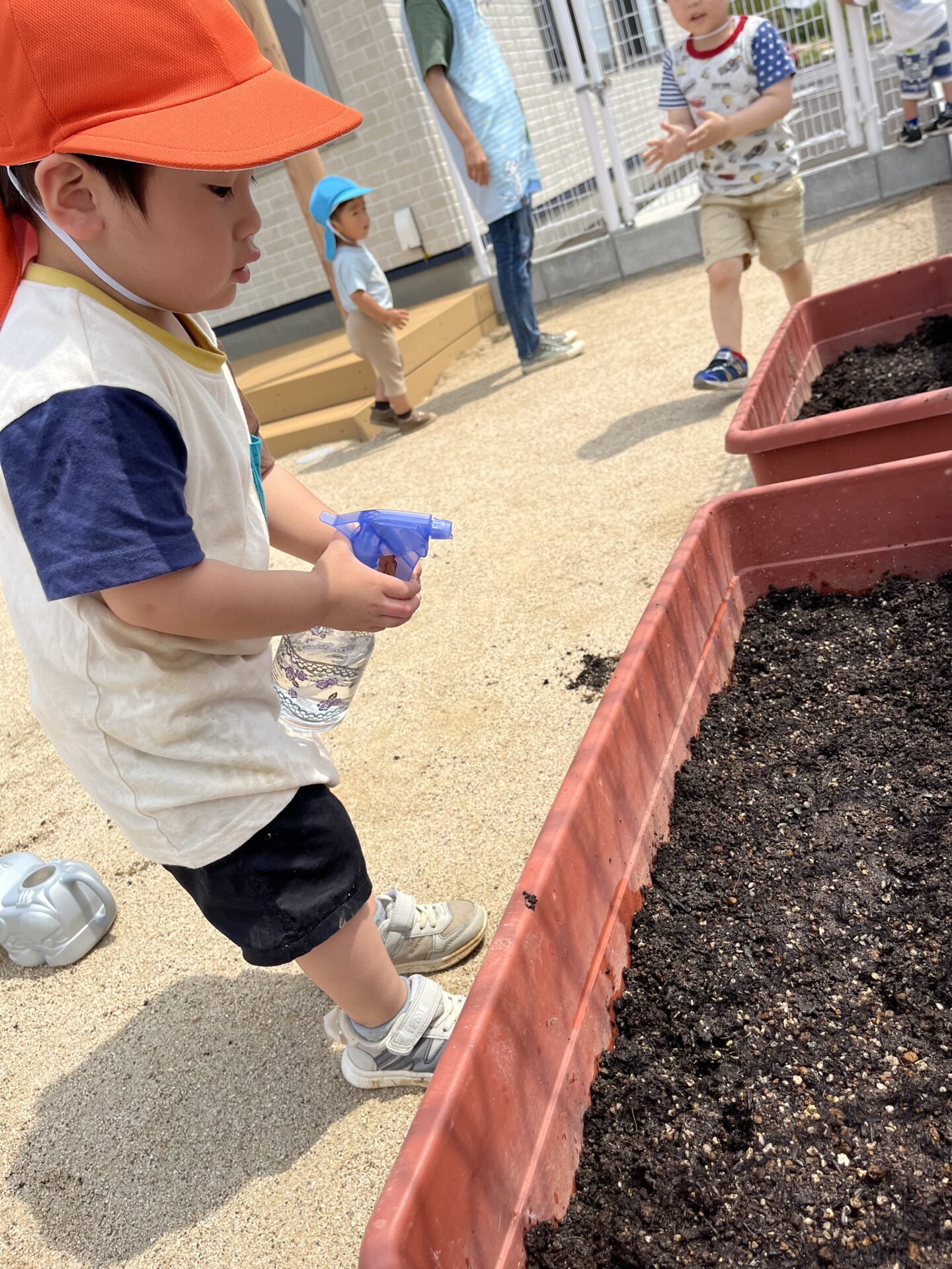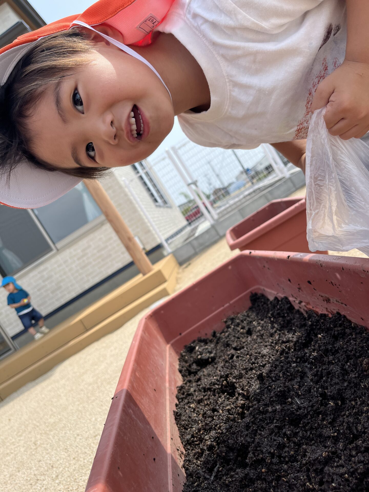 お友だちが土入れをしていると、