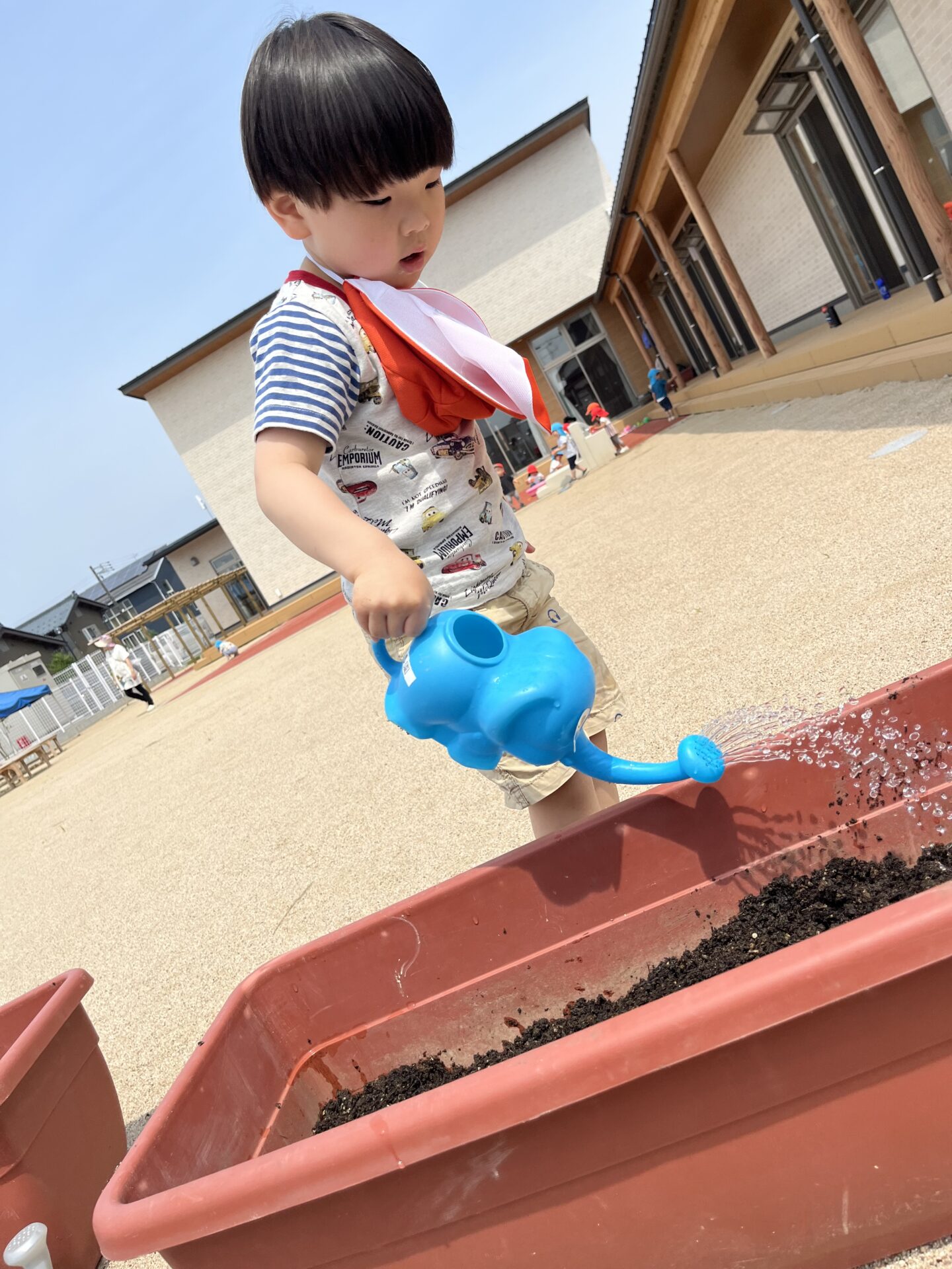 4歳児のお友だちが、畑で野菜を育てているのを見て「僕たちも!やってみたい!」と