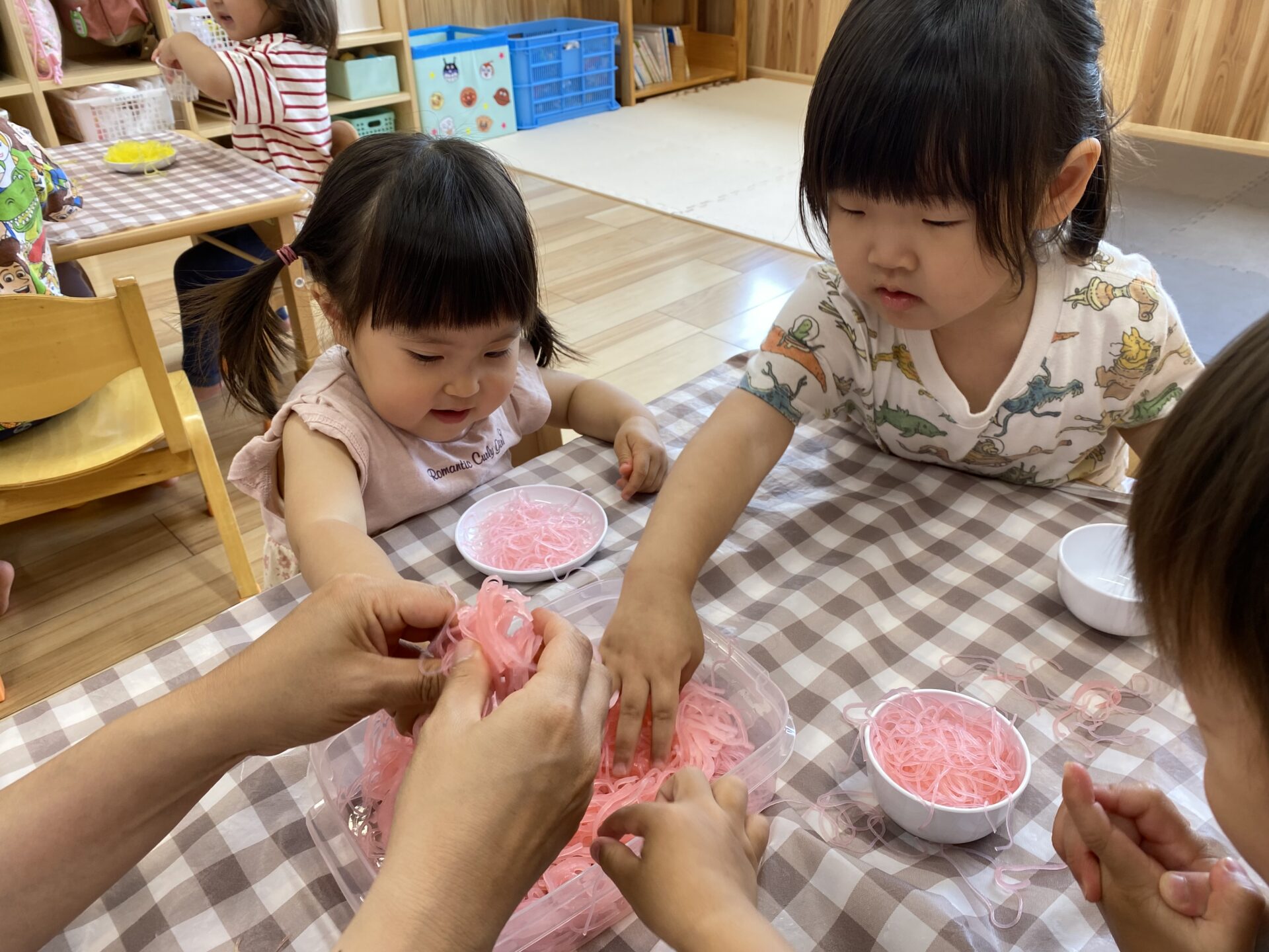 今では、すっかり慣れ自分の好きな場所やあそび・玩具を見つけ、お友だちや保育者と