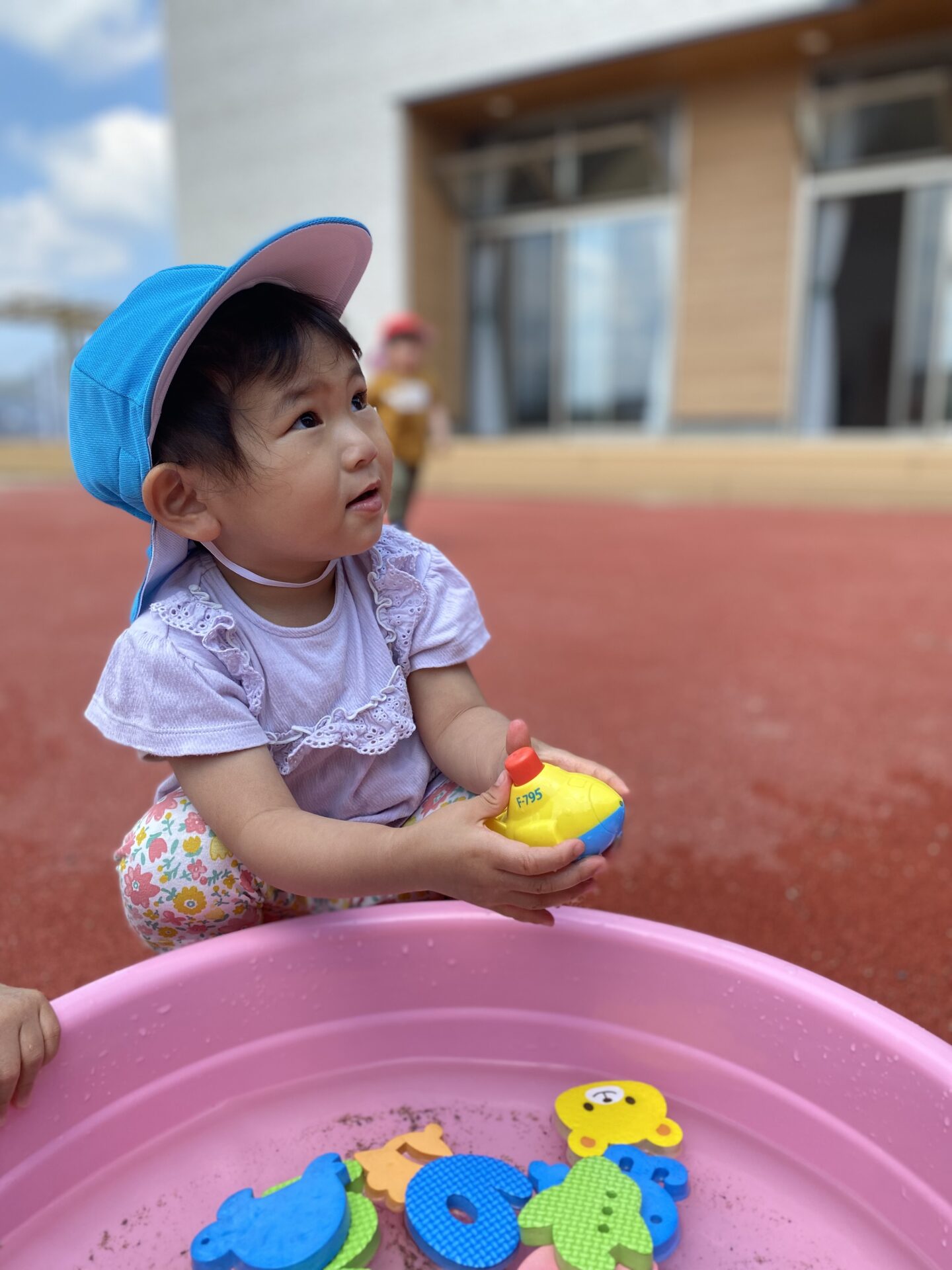 このほかにも、畑やプランターの花に水をあげたり、保育者と追いかけっこをしたり、自然に触れ、季節を感じながら体を思いきり動かして遊んでいます!