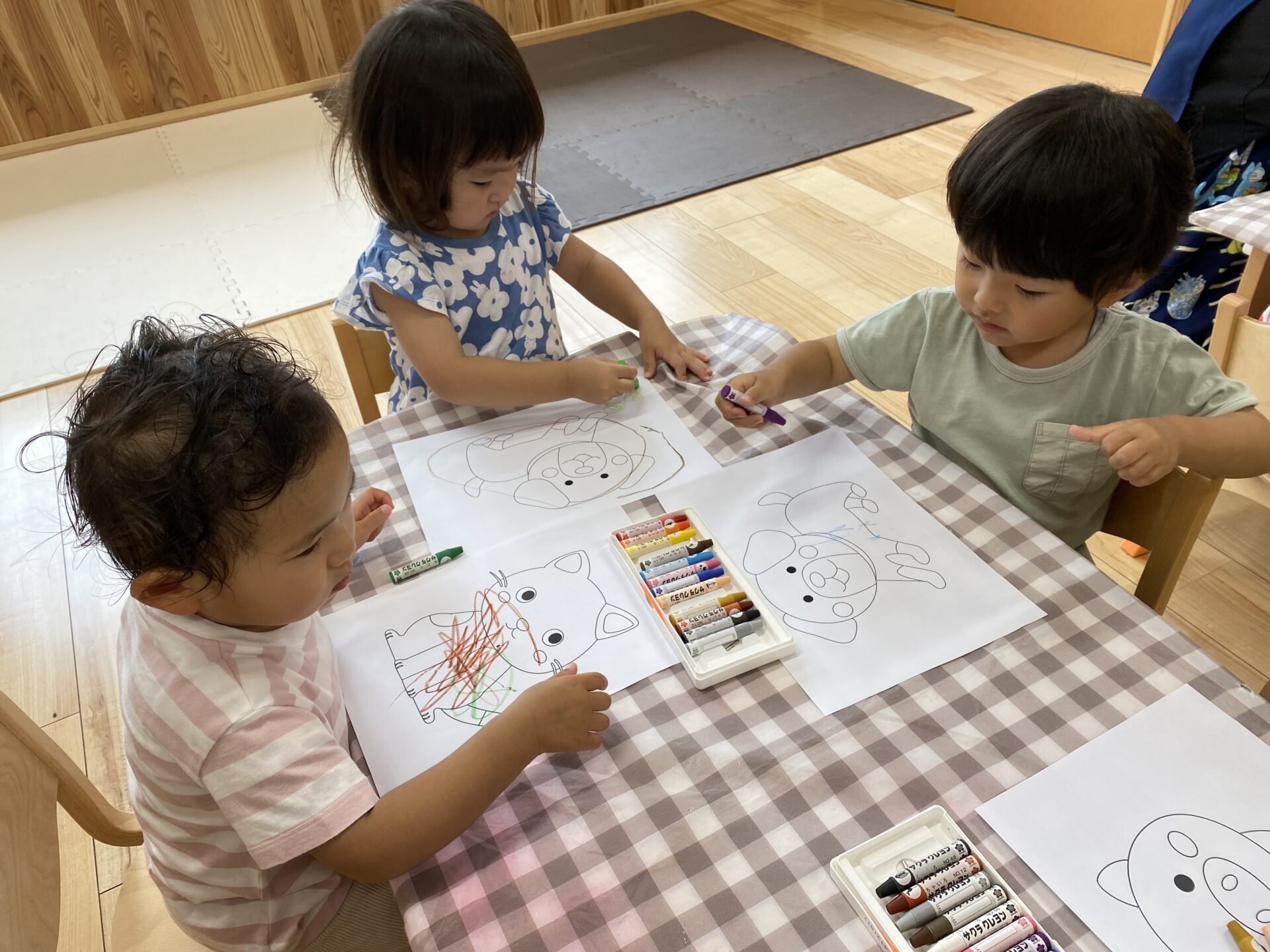 保育室では、ままごとやブロック、お絵描きなどを、ゆったりとした雰囲気の中で、