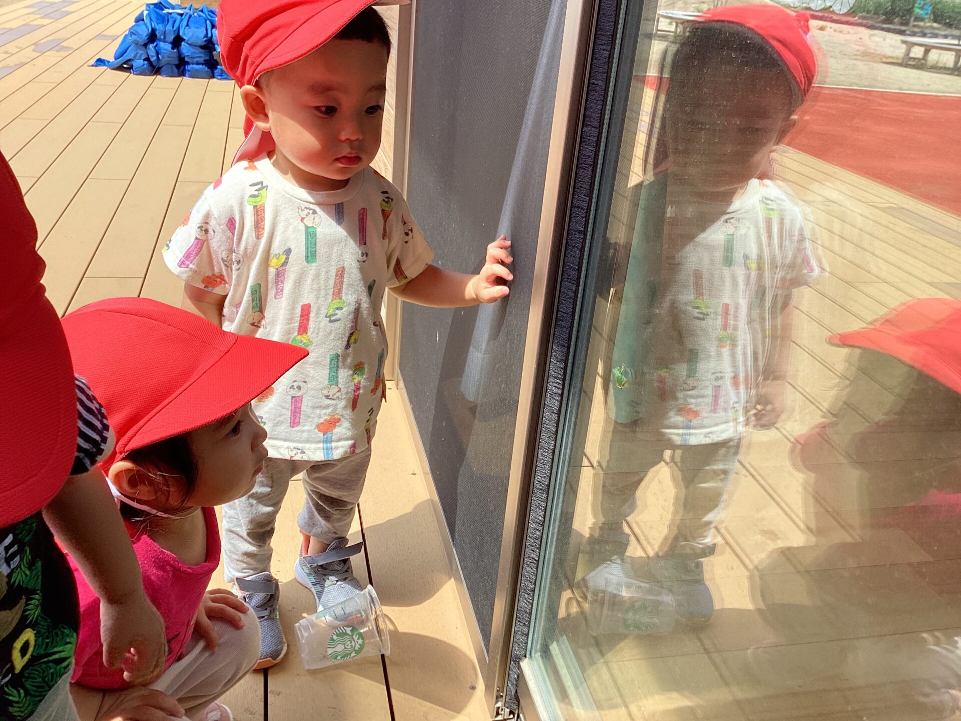 窓にくっついている、ちいさなともだちに「かえるさ~ん!おとちゃんだよ~。」と、自己紹介をする姿に、保育者が「かわいらしい~😭」と、ときめいておりました。