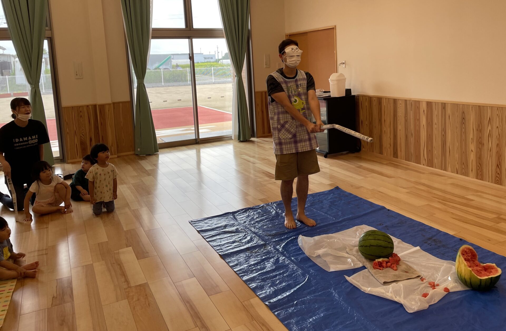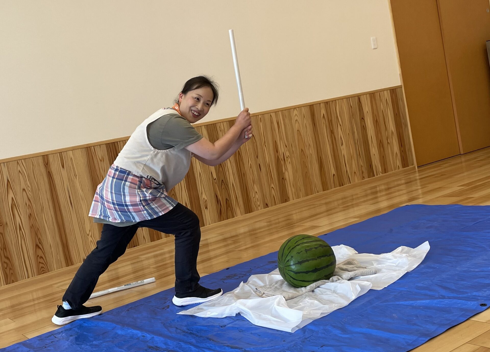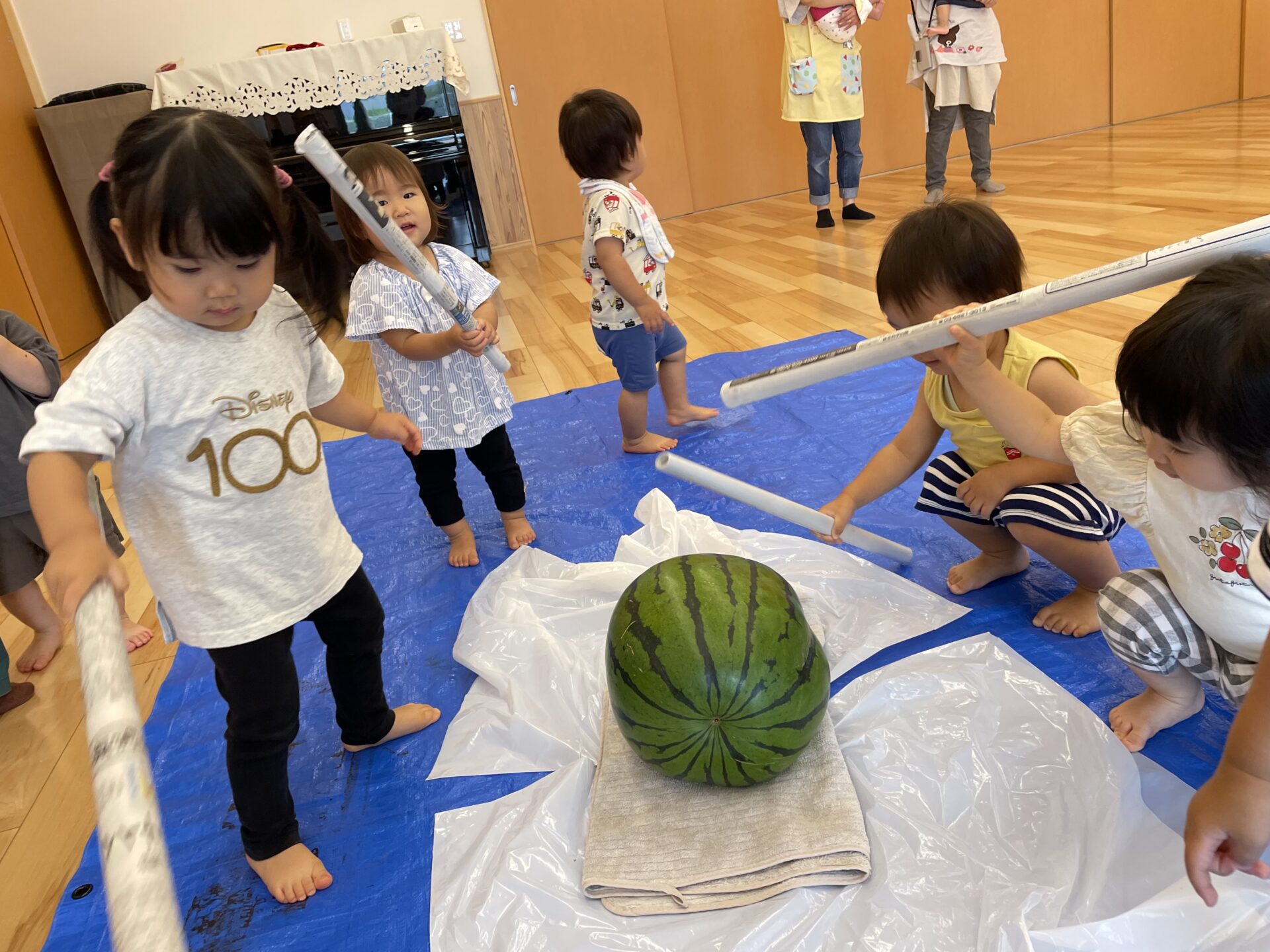 これは・・・アレをするしかありません。7月のお誕生会は、「スイカ割り」で決まりです。