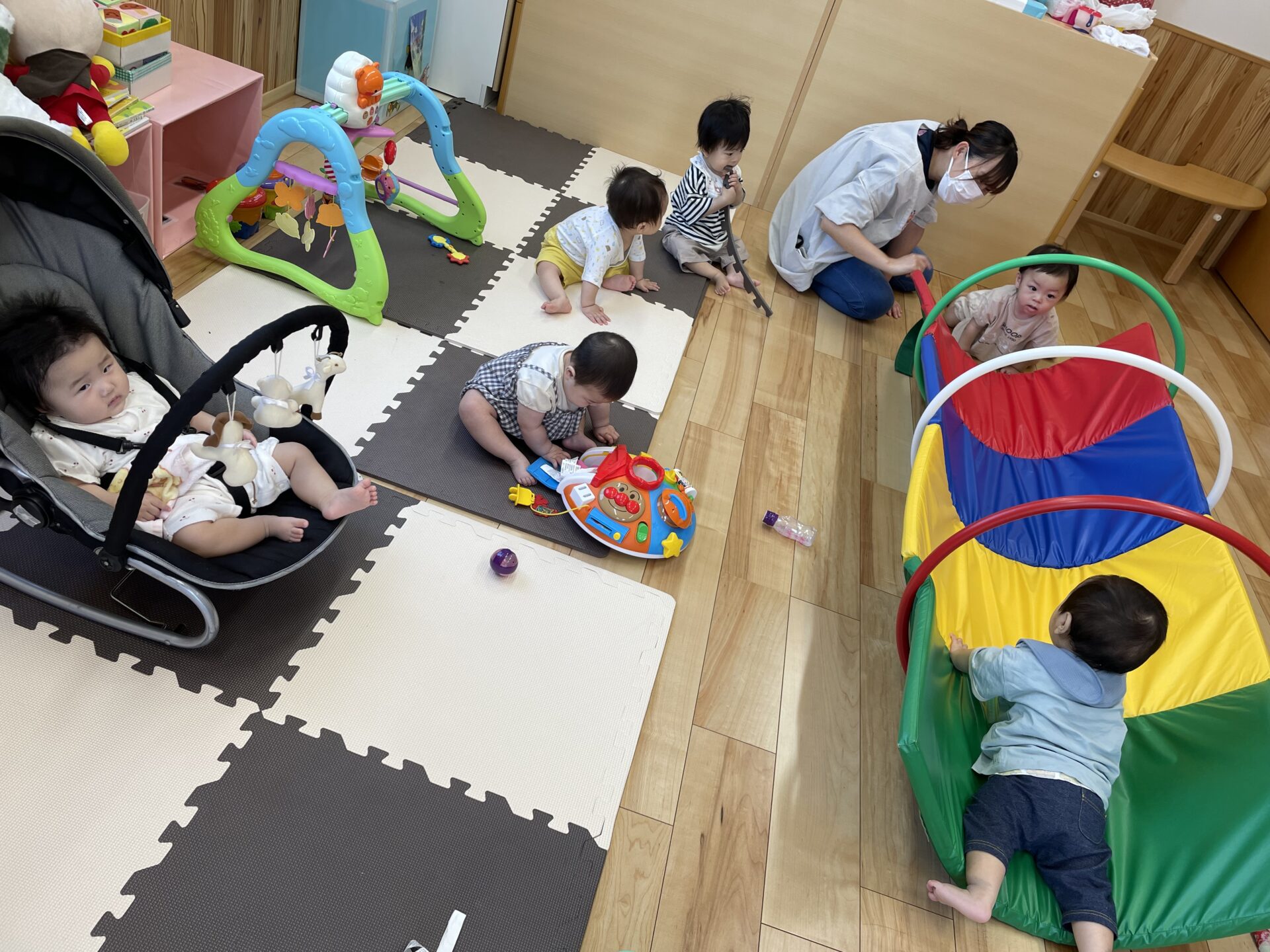 4月の開園当初は4名でスタートした、えだまめ組(0歳児)