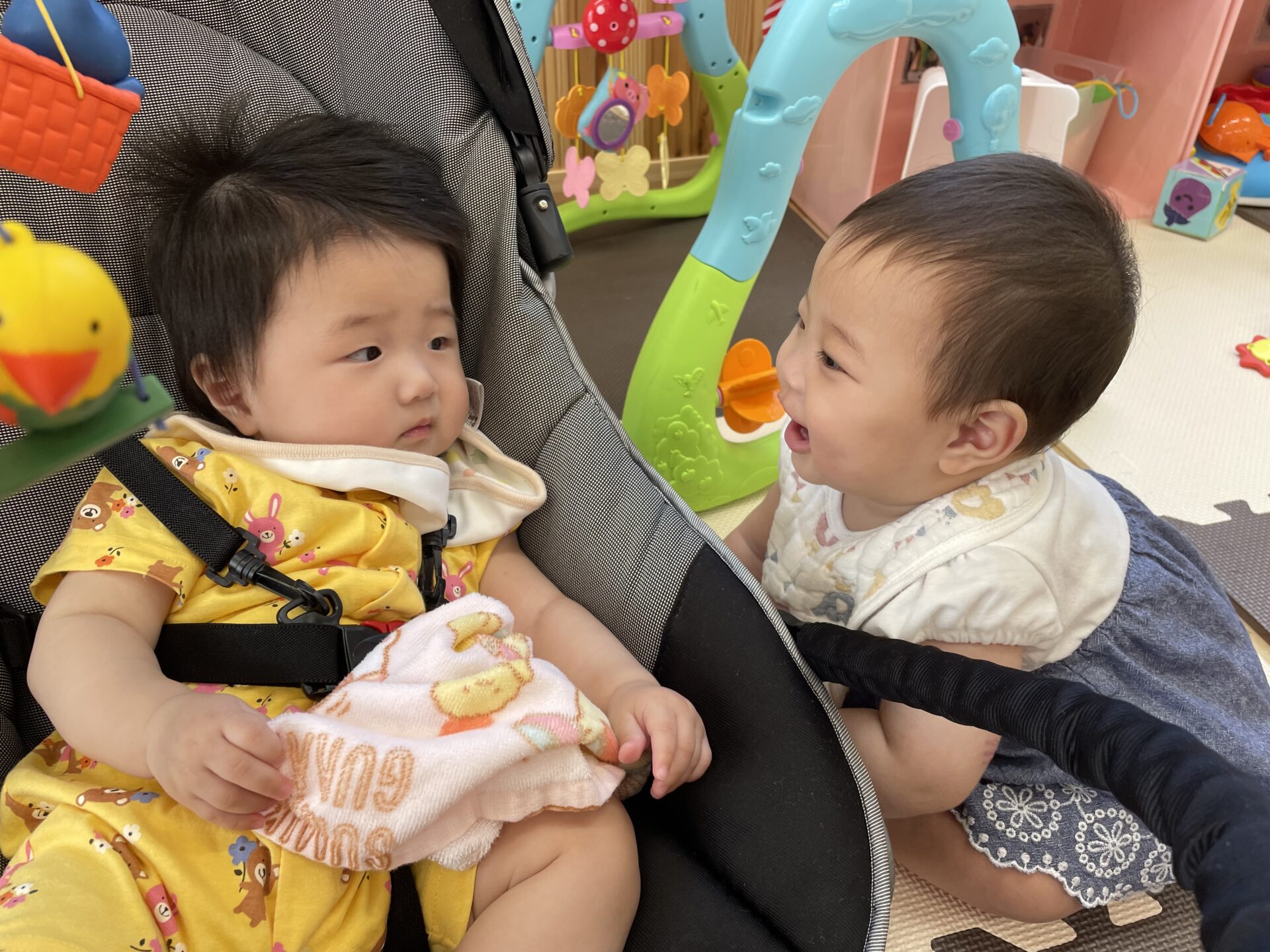 新しいお友だちが来てくれたことで、だんだんと保育者だけでなく、お友だち同士の関わりが増えてきました。