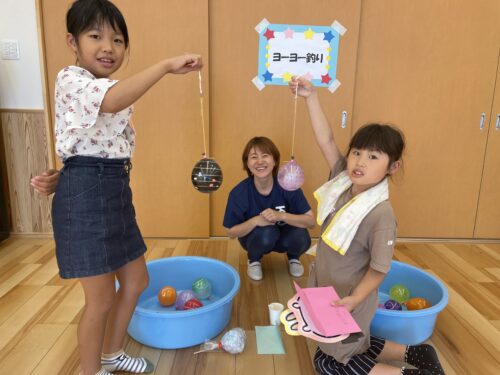 お面屋さんもヨーヨー釣りも、とっても盛り上がりました。