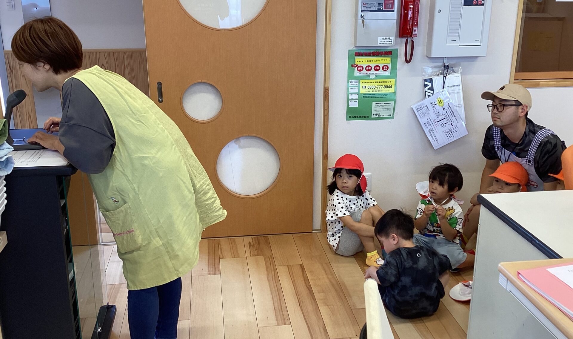 園内放送で全職員へ知らせると、各保育室でも子どもたちの安全確保、同時に警察へ通報します。