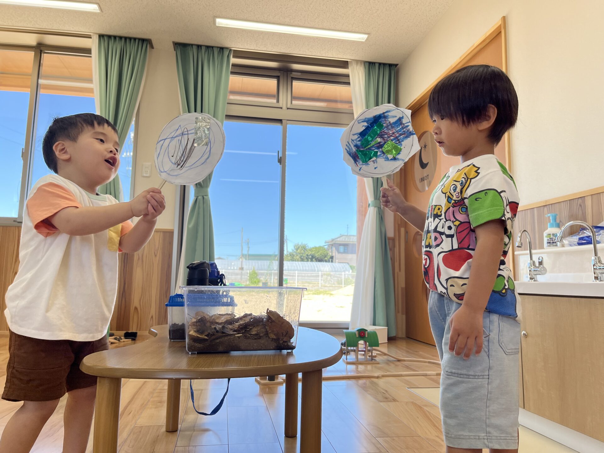 完成すると、お部屋で飼っているクワガタムシや、カブトムシに