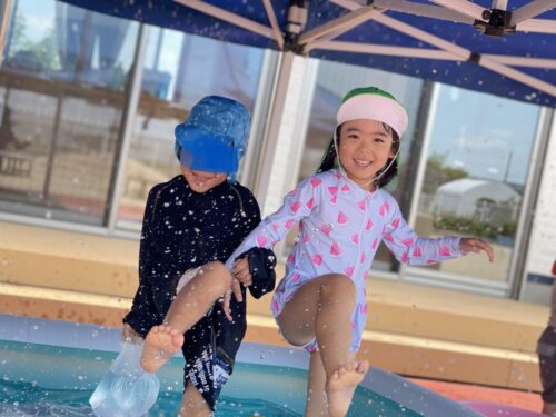 身体全身で水を浴びて、思い思いのあそびを楽しみ、暑い夏を乗り切れました。