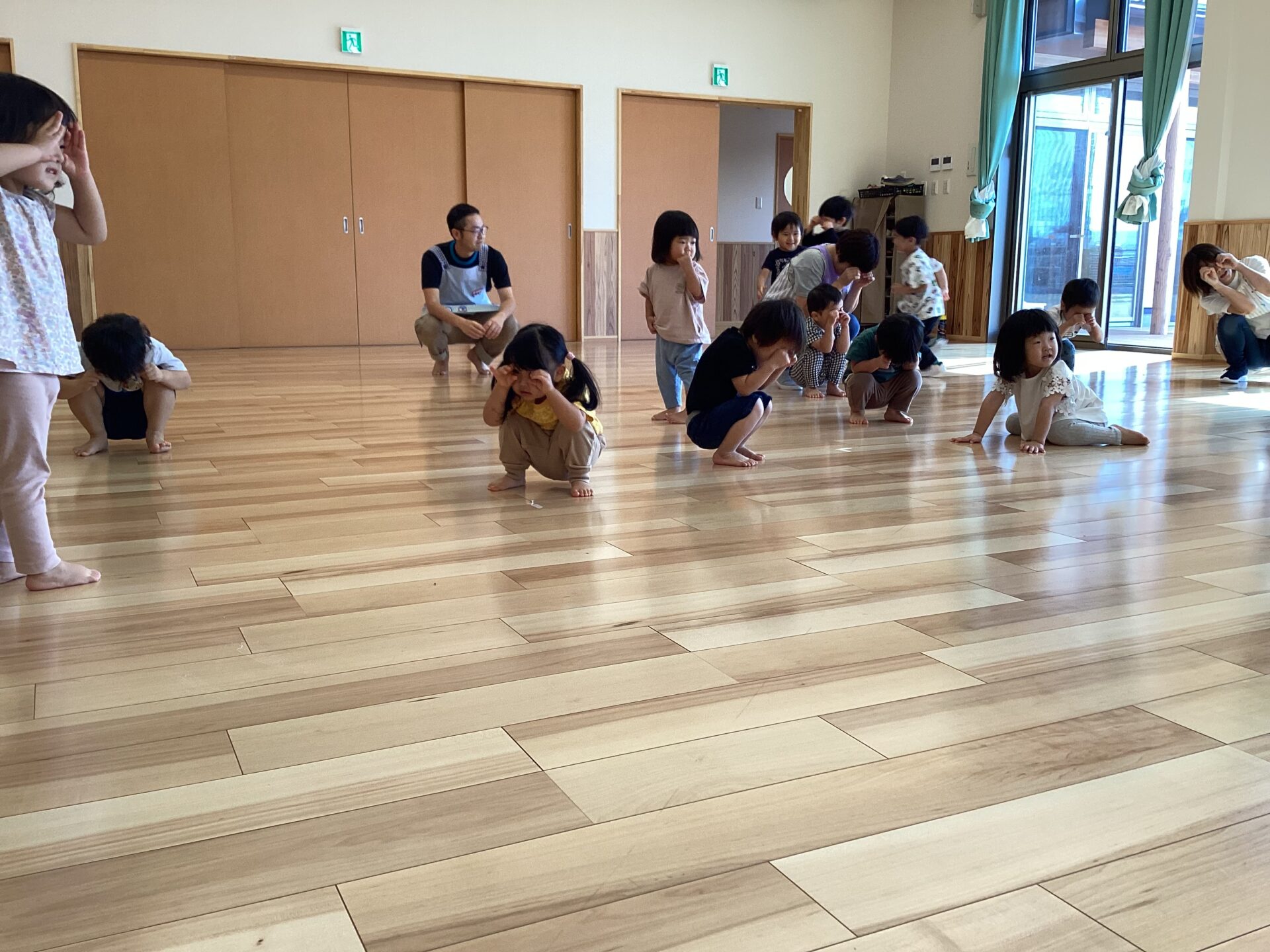 友だちと一緒に笑いながら楽しそうに踊っています!ぜひ、保護者の方も一緒に踊りましょう!