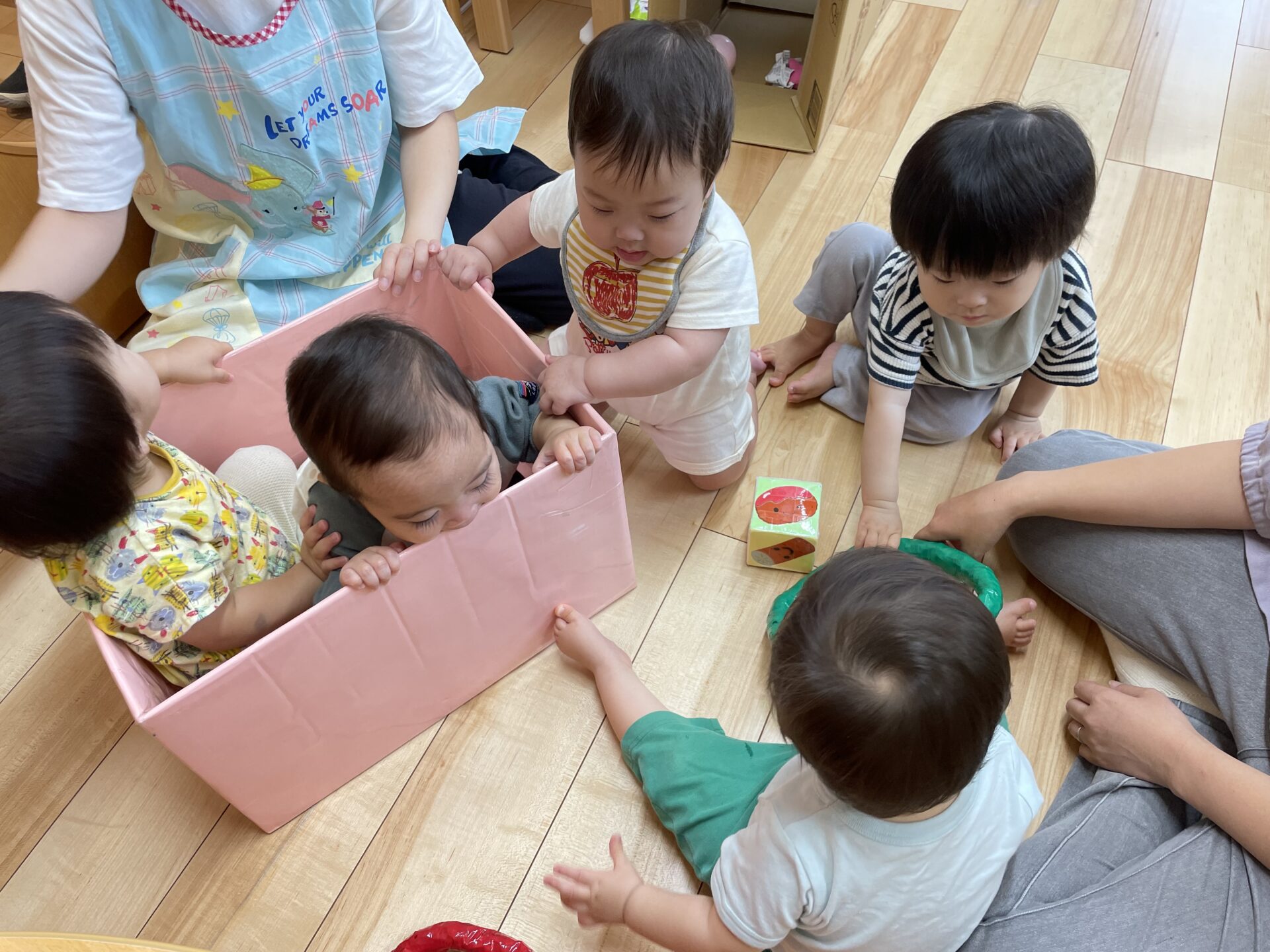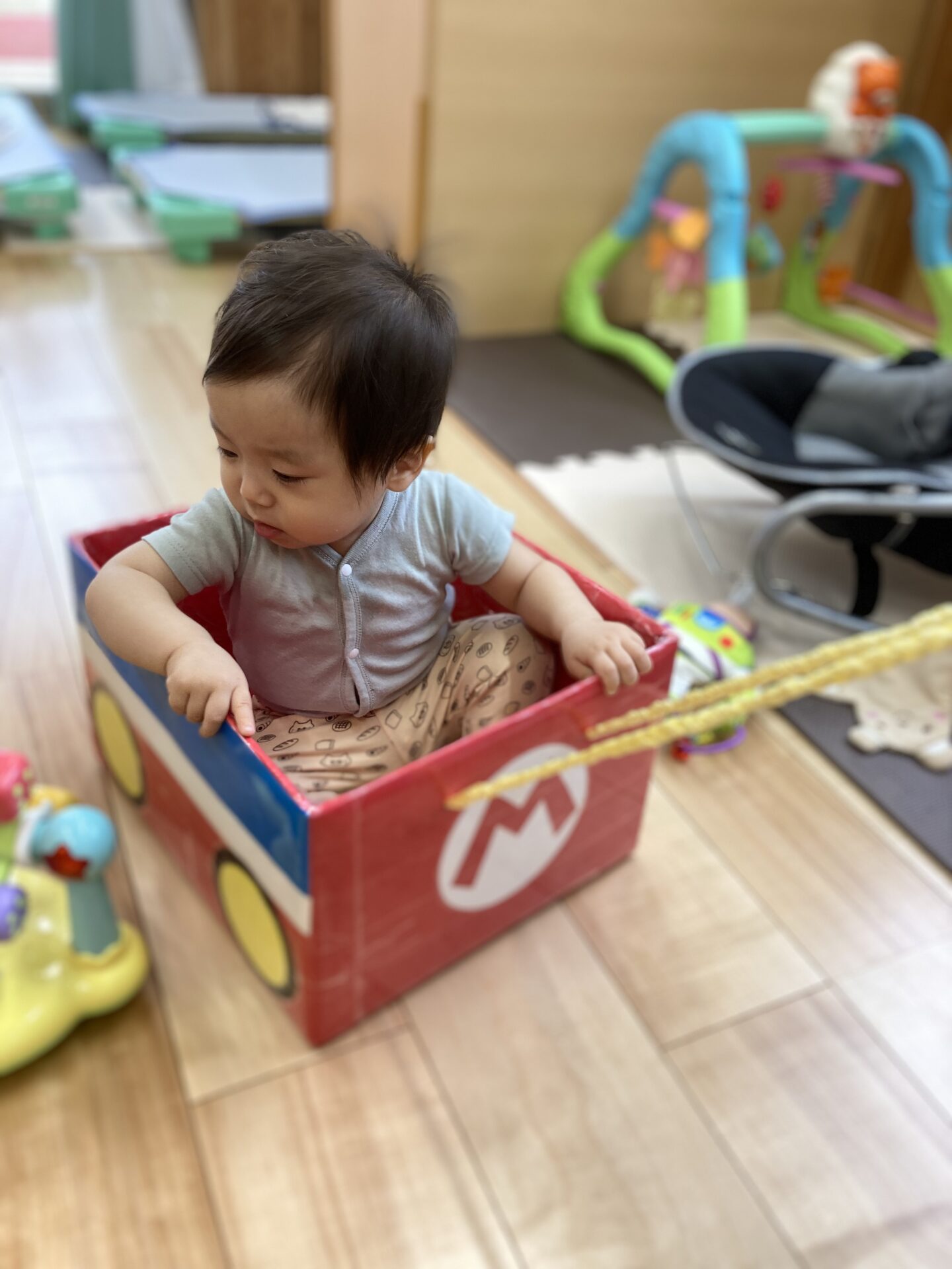 ここでえだまめ組(0歳児)のお部屋をのぞいてみましょう😊