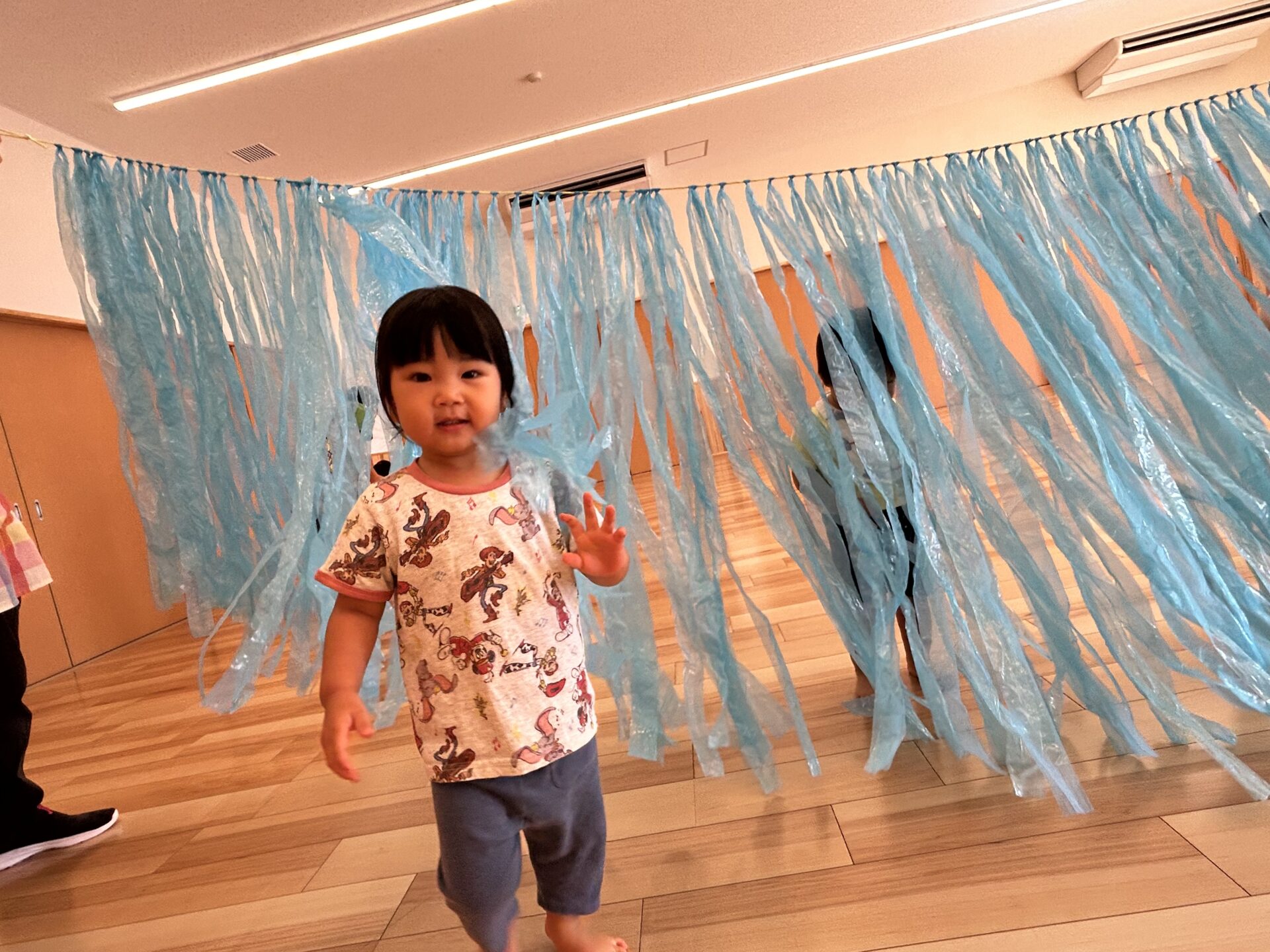 カラーポリ袋をつなげた虹のトンネル🌈🌈