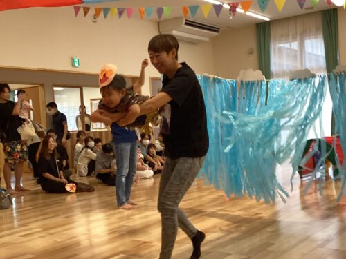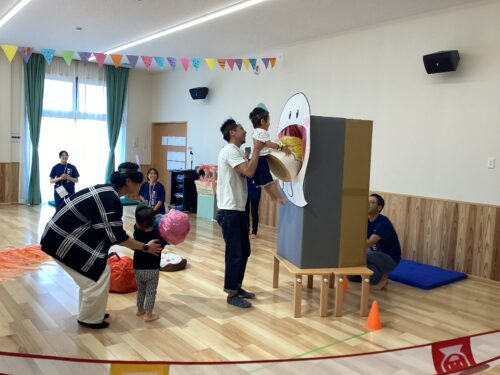 2歳児の親子競技は、クラスで大人気のおばけが登場です。