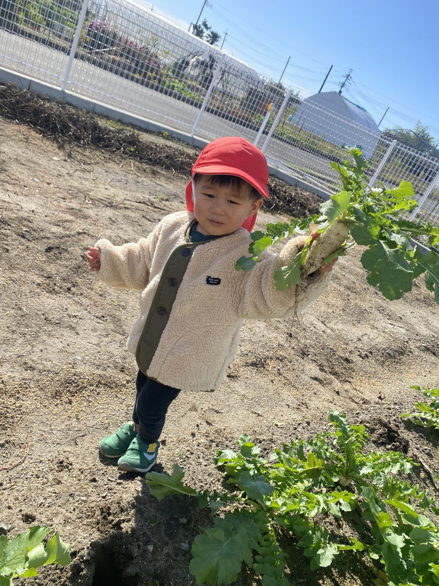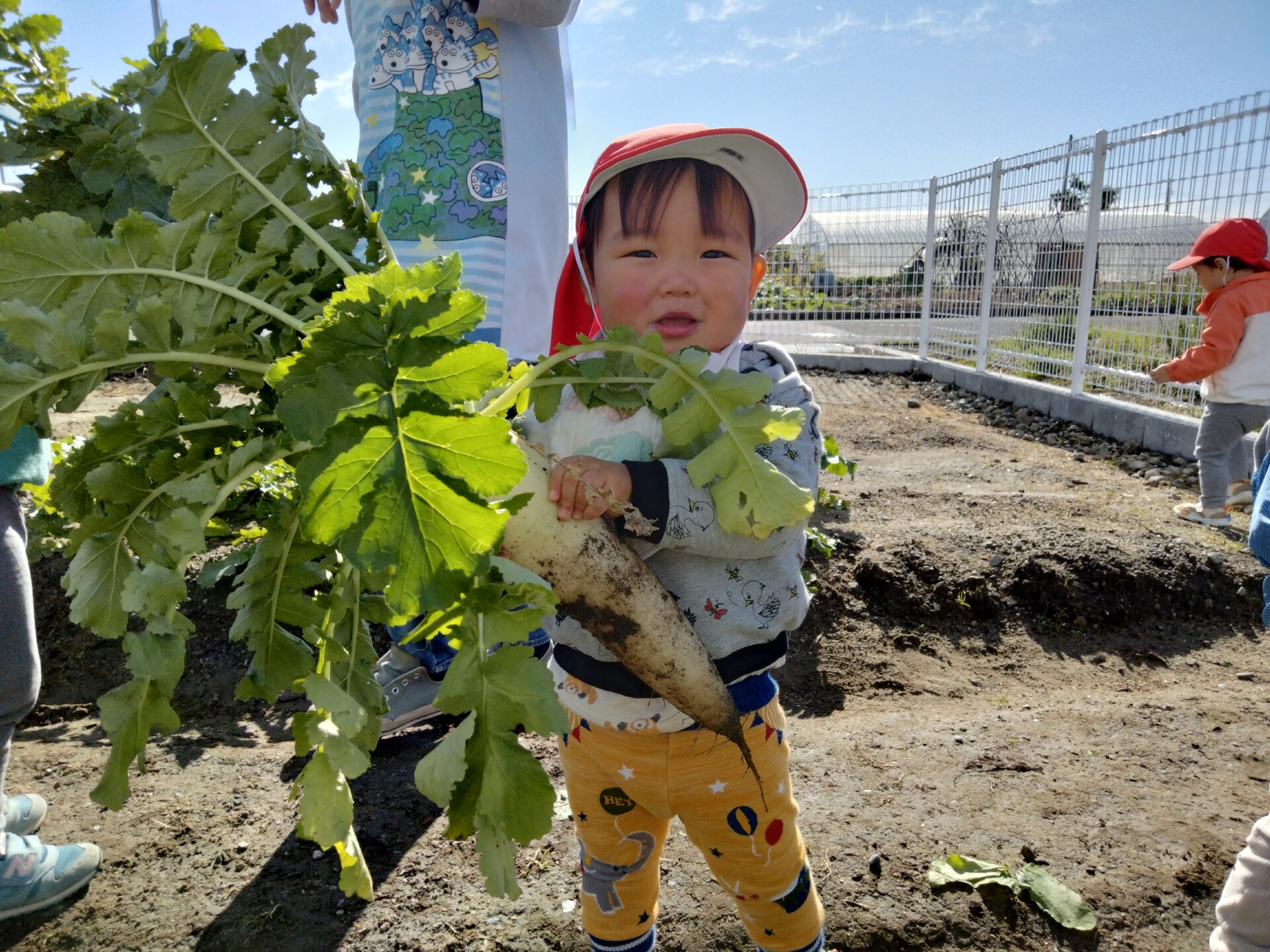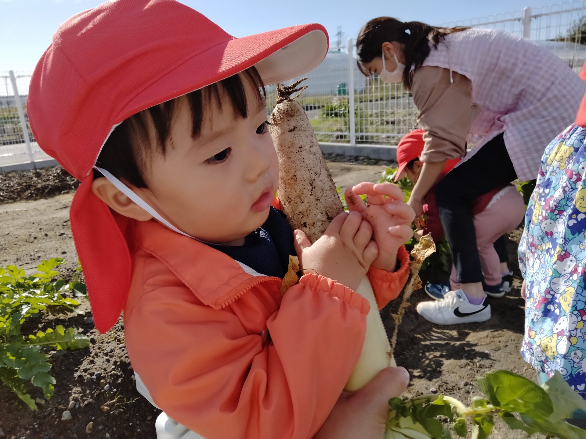 9月から、大根の成長を見守っていた、うみぐみ(1歳児)です。