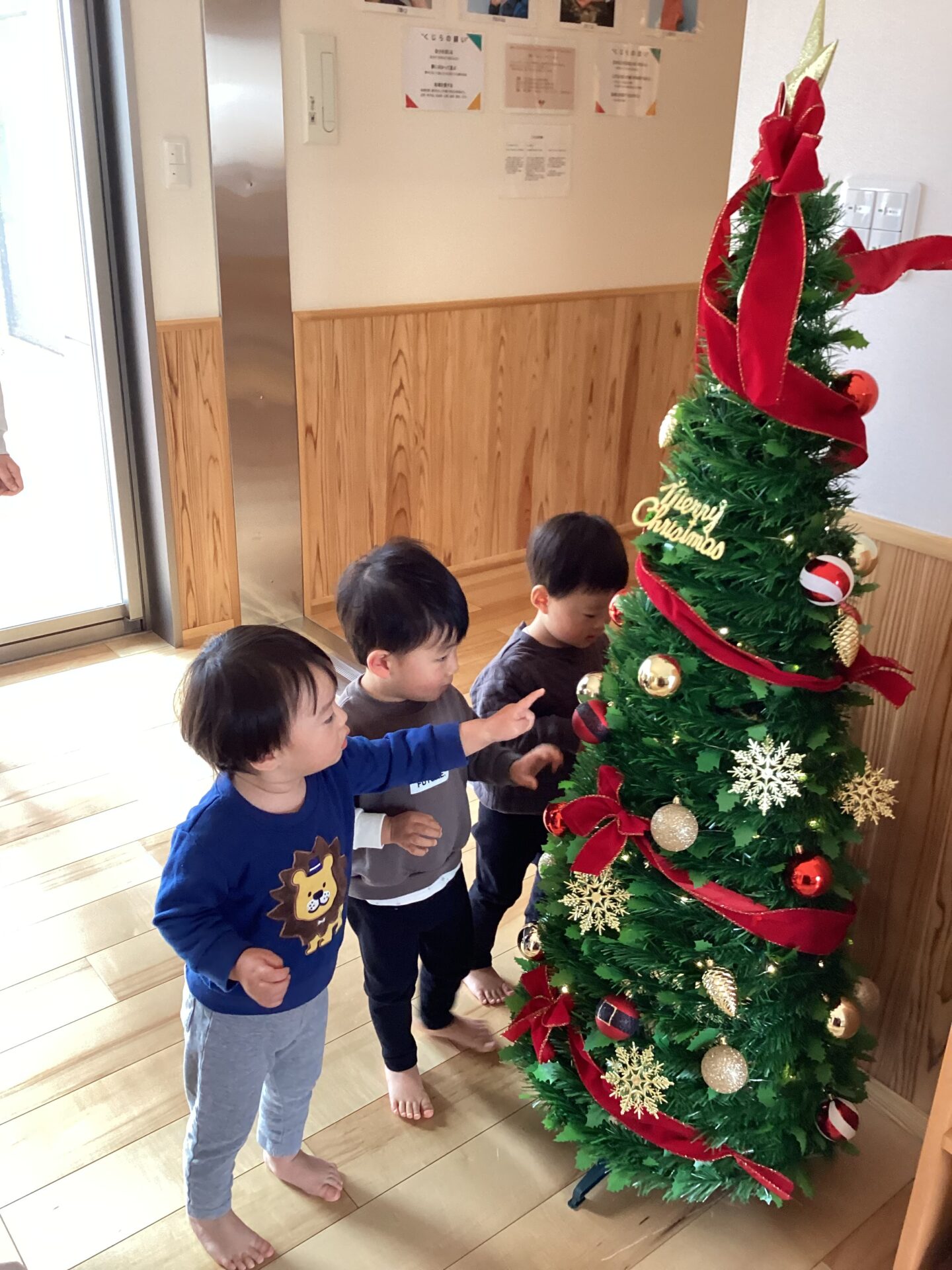 玄関には、大きなクリスマスツリーが登場し、子どもたちも興味津々です🤩