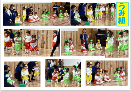 うみ組(1歳児) 手あそび「くいしんぼうゴリラ」 遊戯「おまめ戦隊ビビンビン」