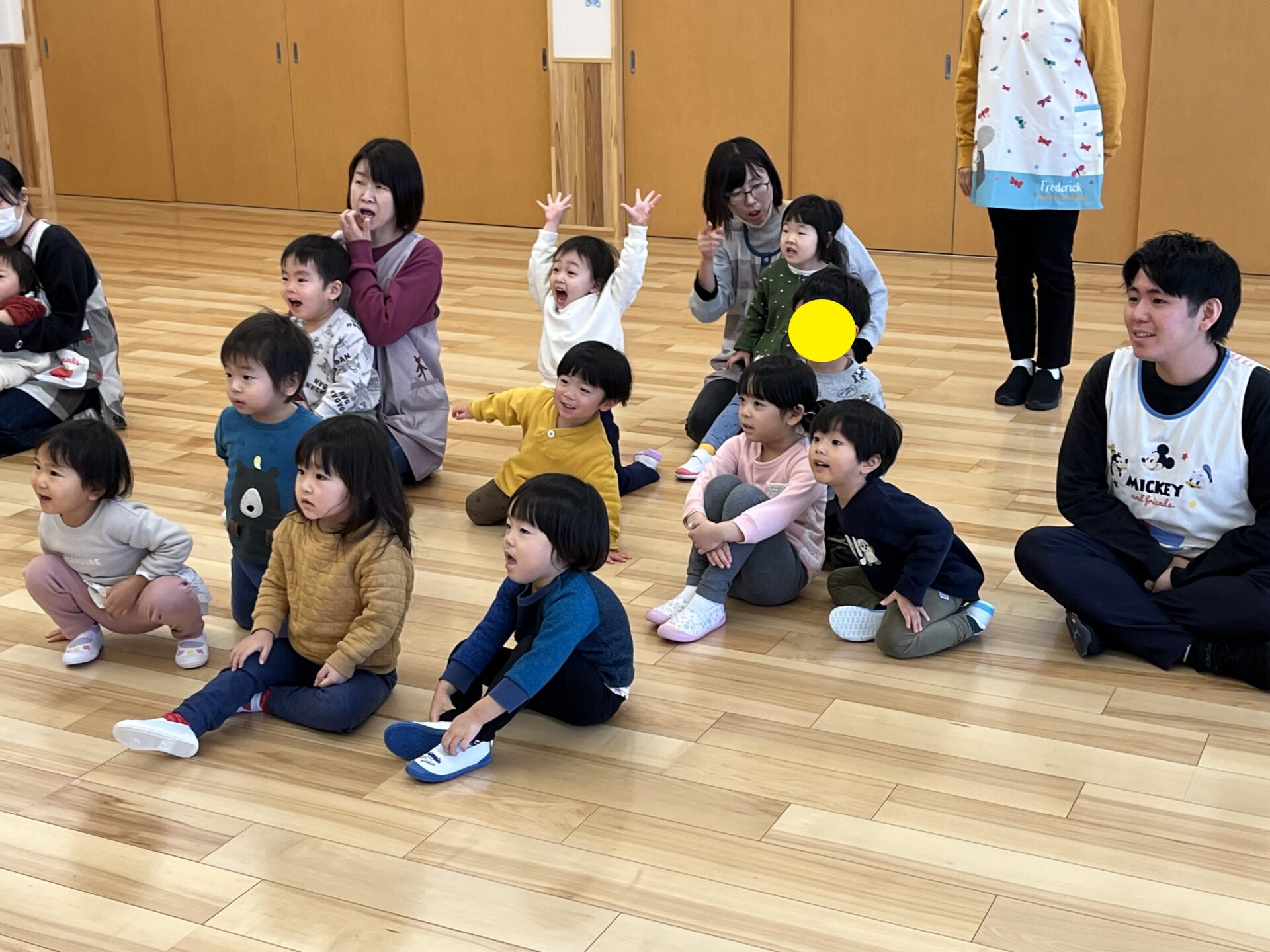 クリスマス発表会では、突然のサンタさん登場に、歓声に包まれたえだまめこども園。