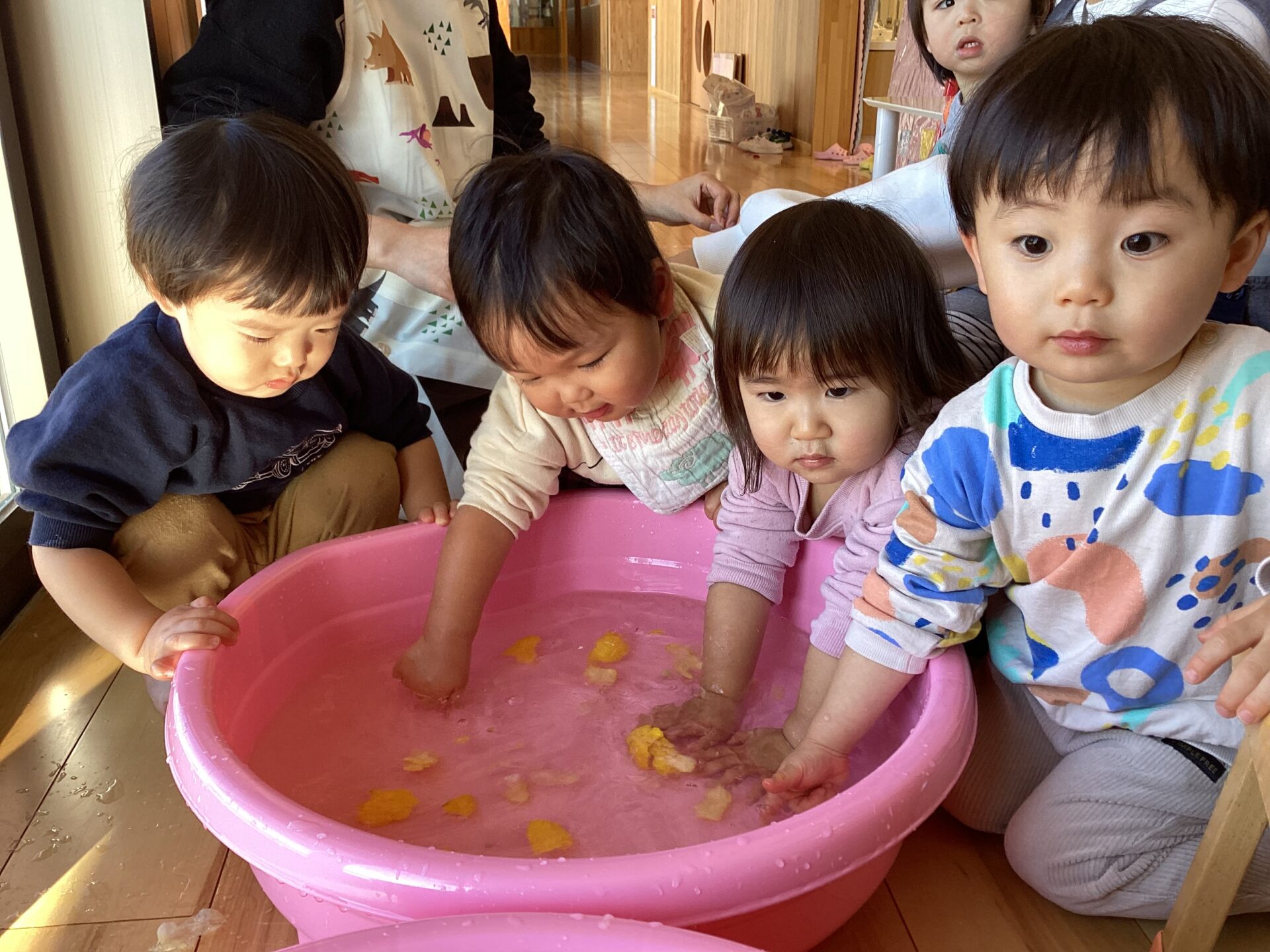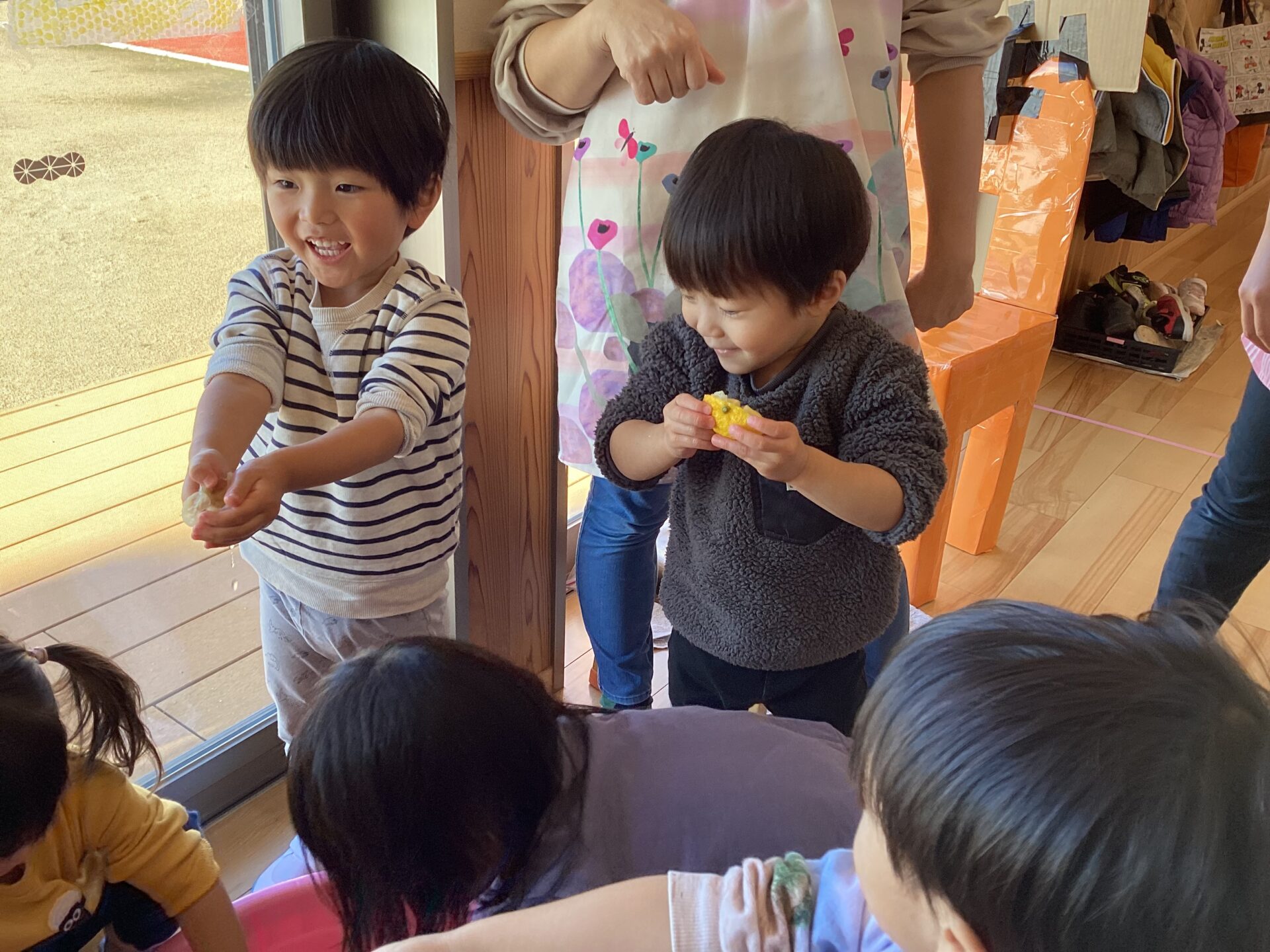 「レモンみたい!」「ぎゅってすると(果汁が)出てくるよ~」と、子どもたちの発見も尽きません。