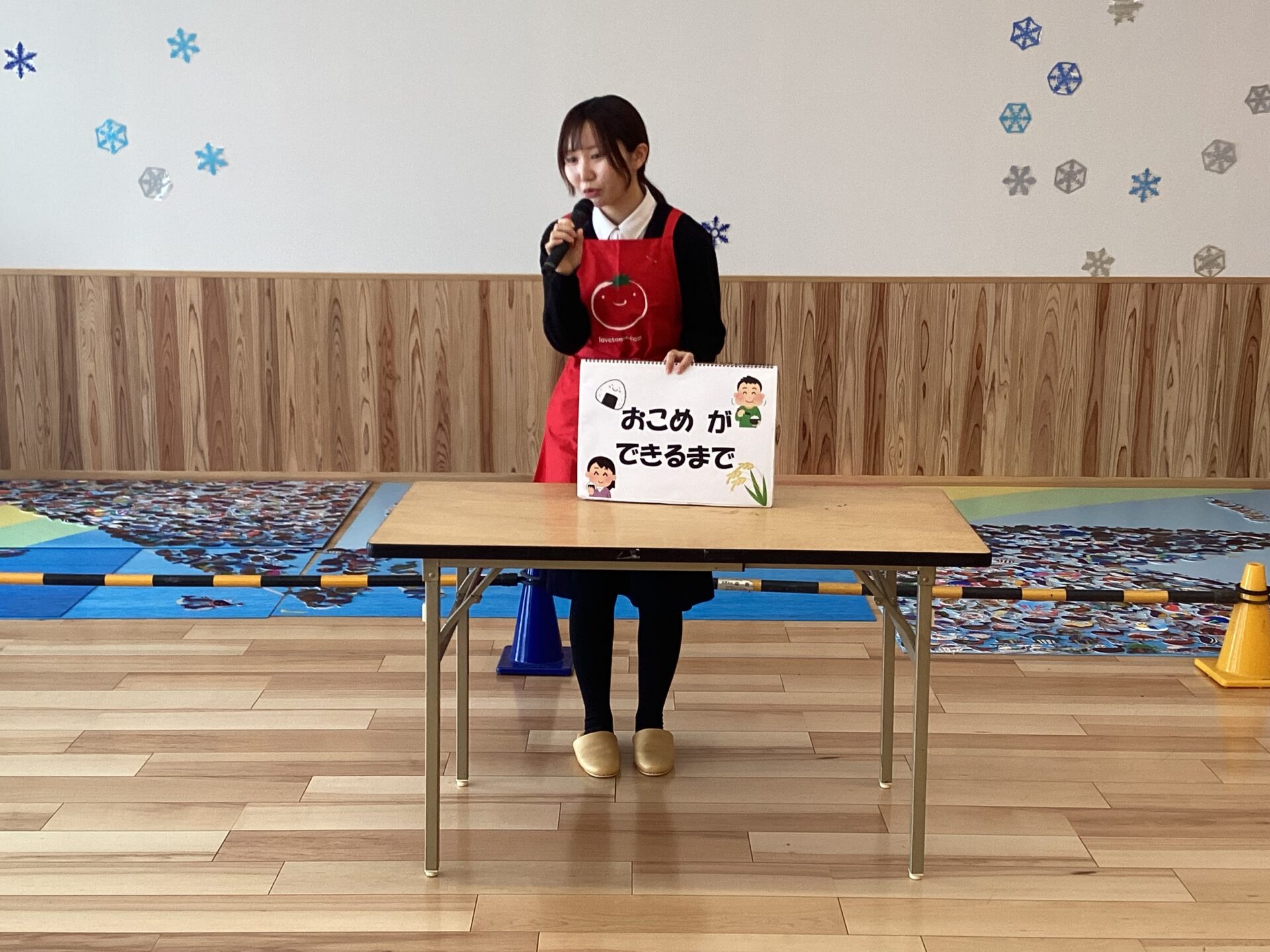 JA職員の方が『おこめができるまで』と、『冬のおいしい野菜果物クイズ』のお話があり、シルエットクイズは、大盛り上がり!大きな声で答えていました。