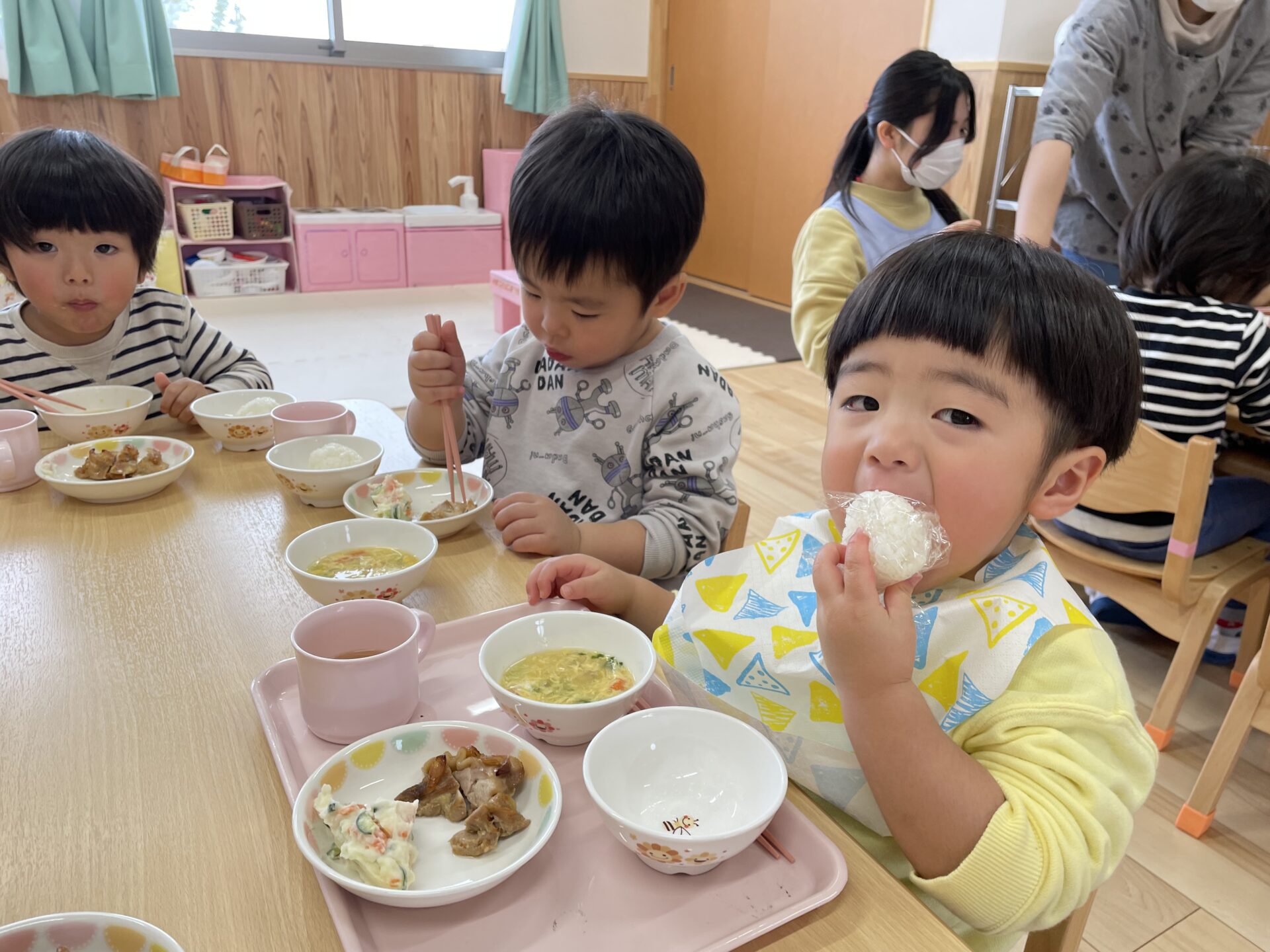 自分で作ったおにぎりは・・特別な美味しさ😋おかわりをして、いつもよりたくさん食べていました。
