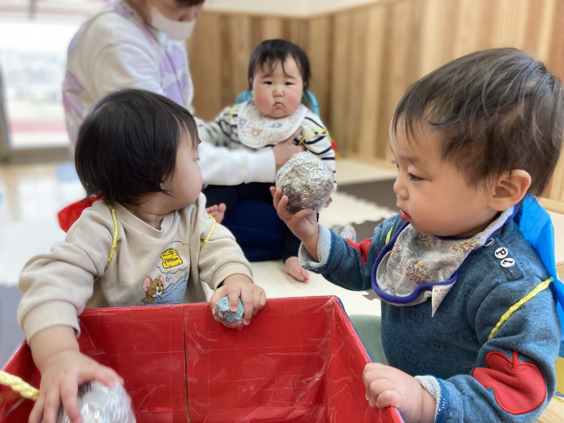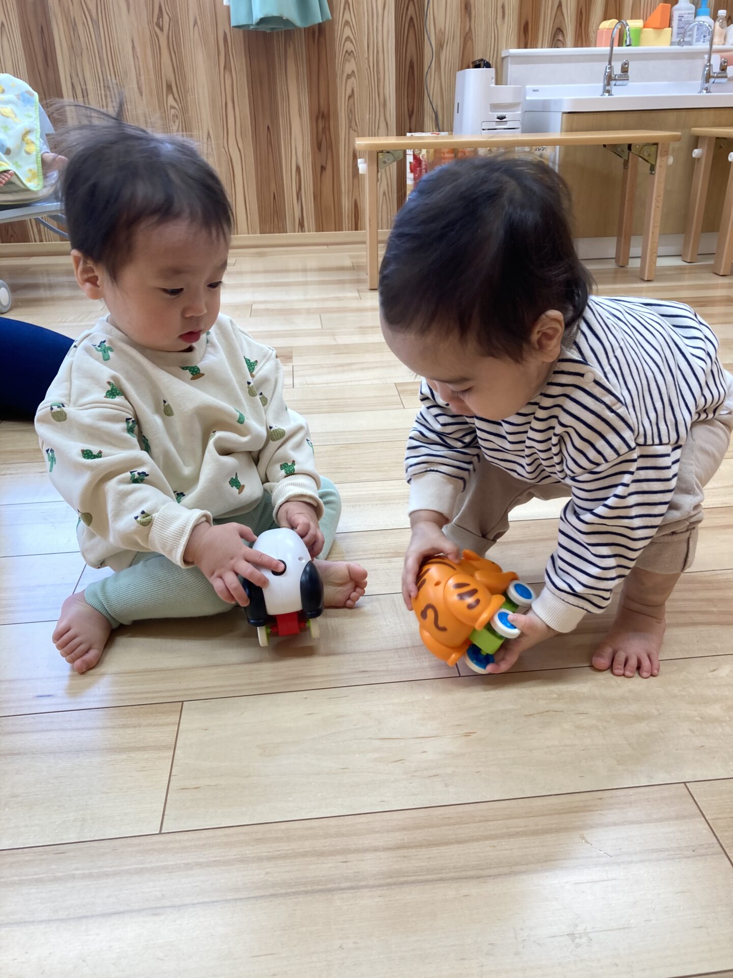 子どもたちは初めてのおもちゃをみると、まず触ります!