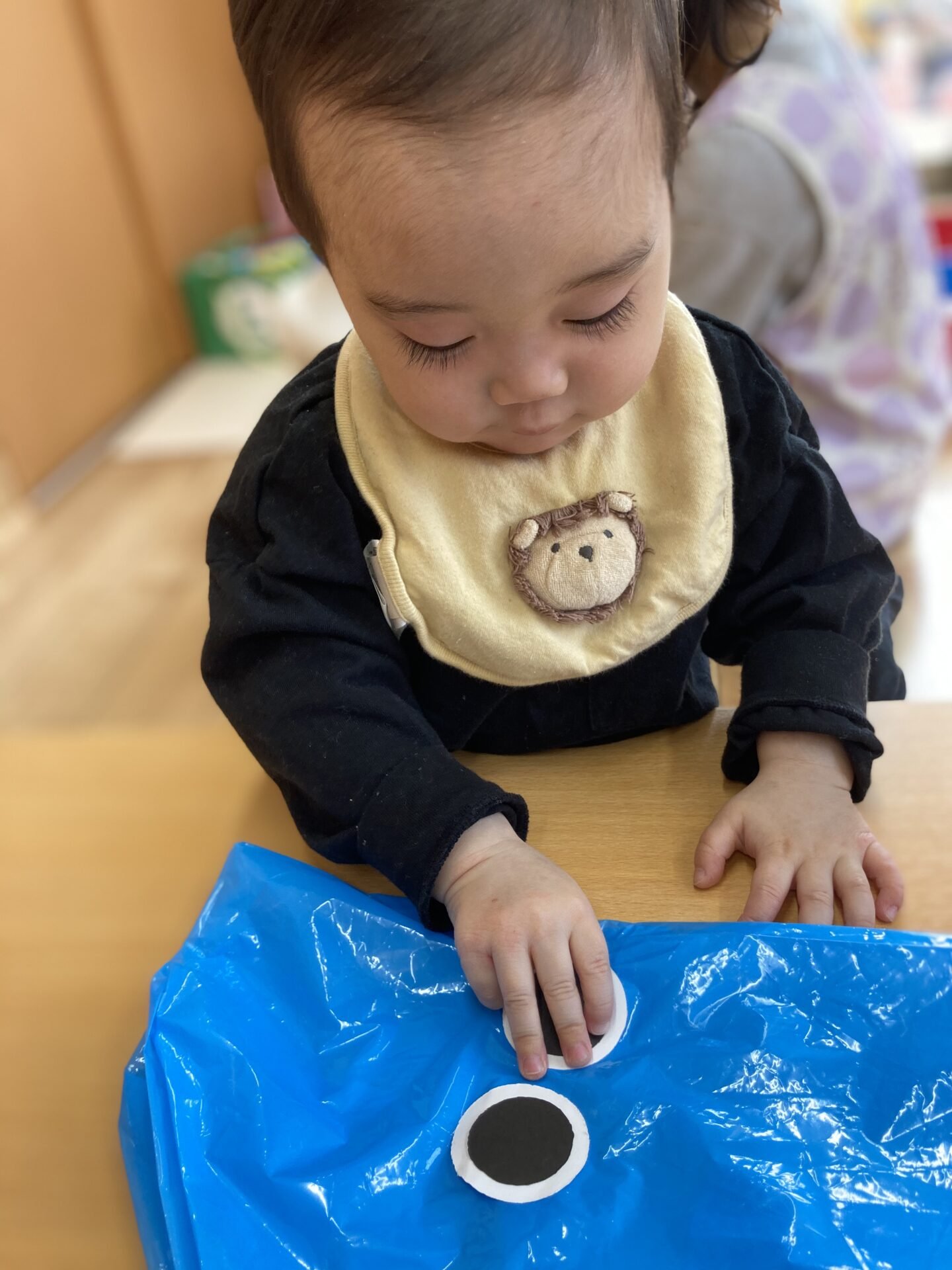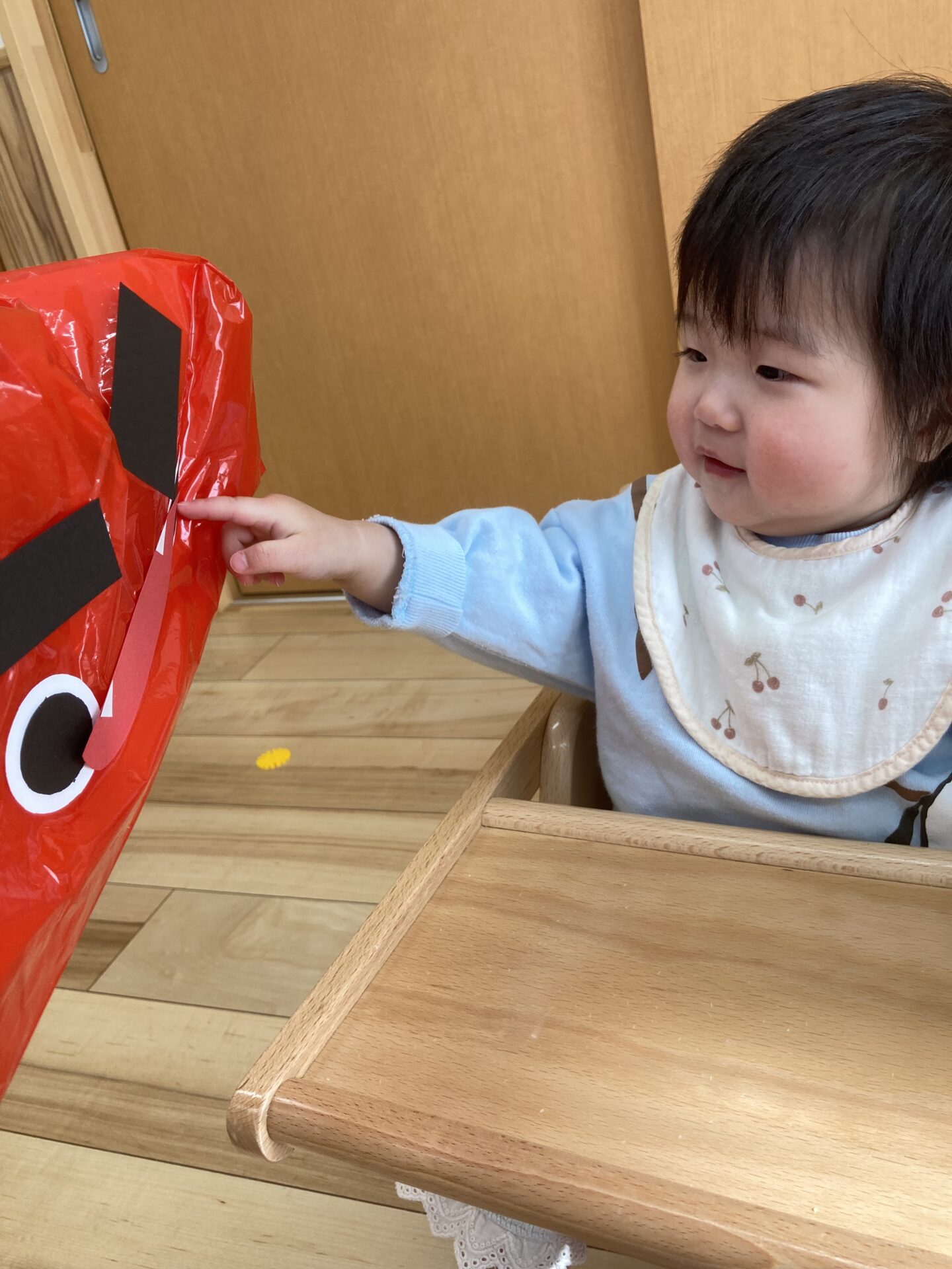 節分に向けて、おにの顔のパーツ貼りをしてみました。