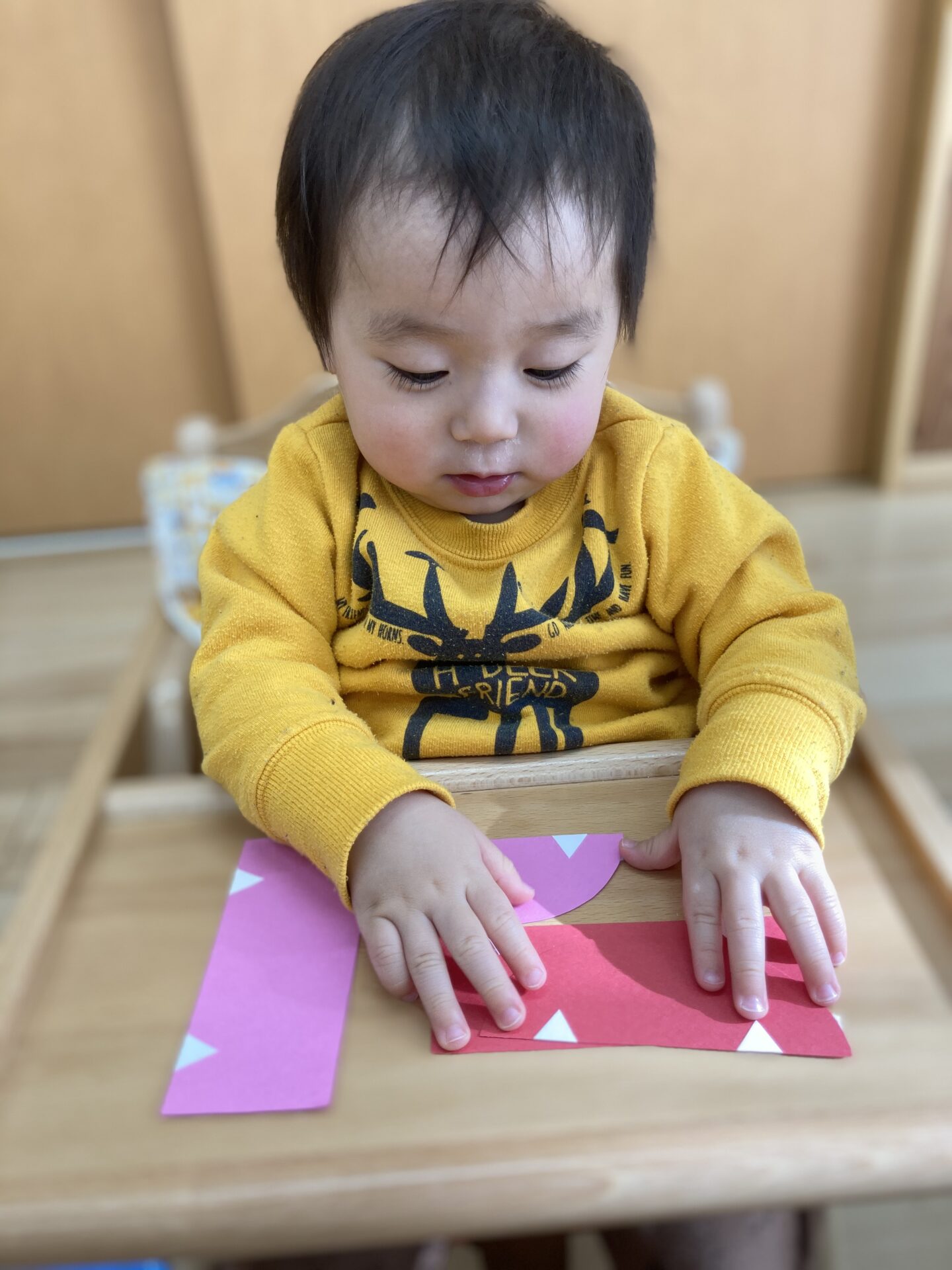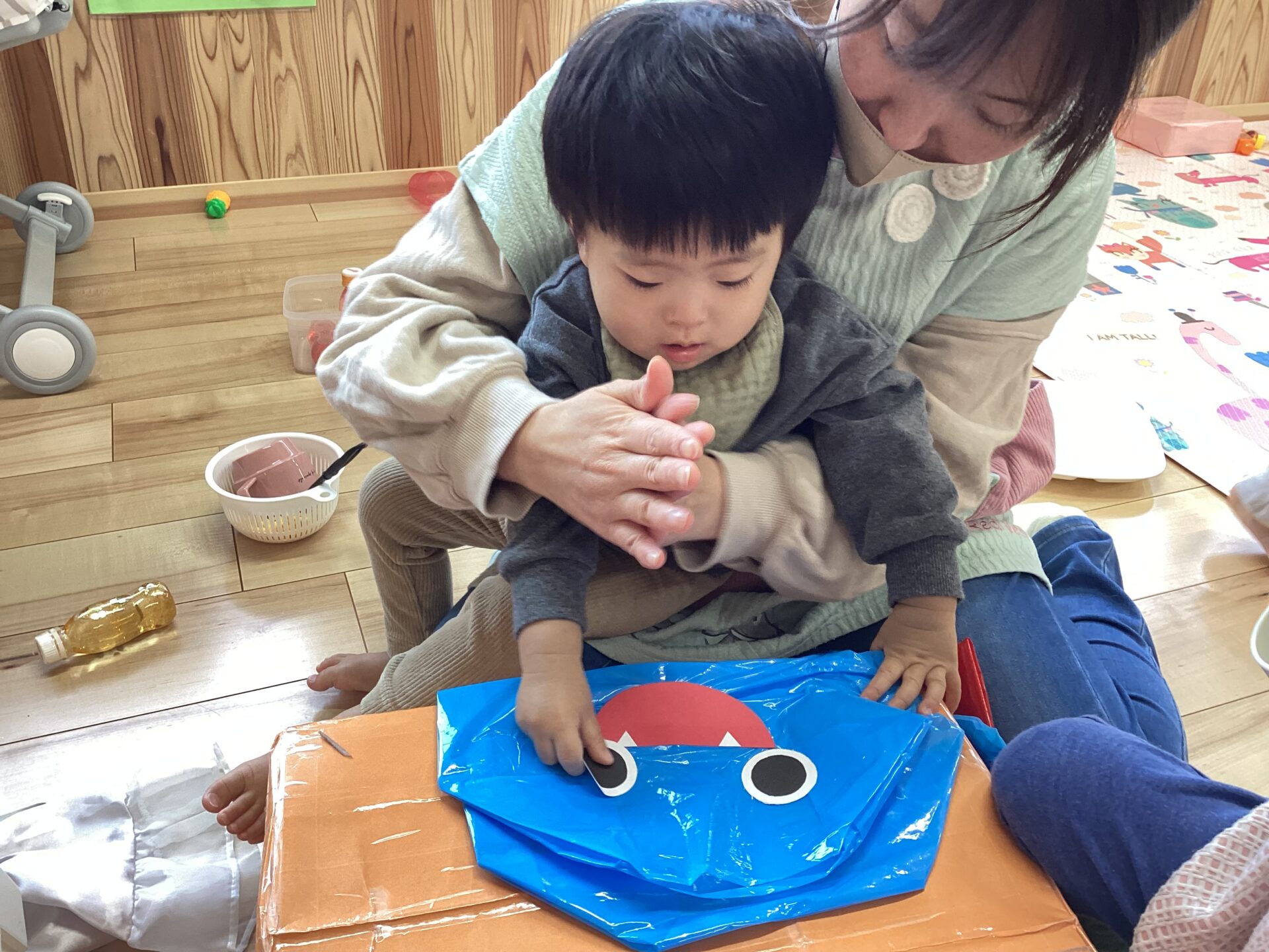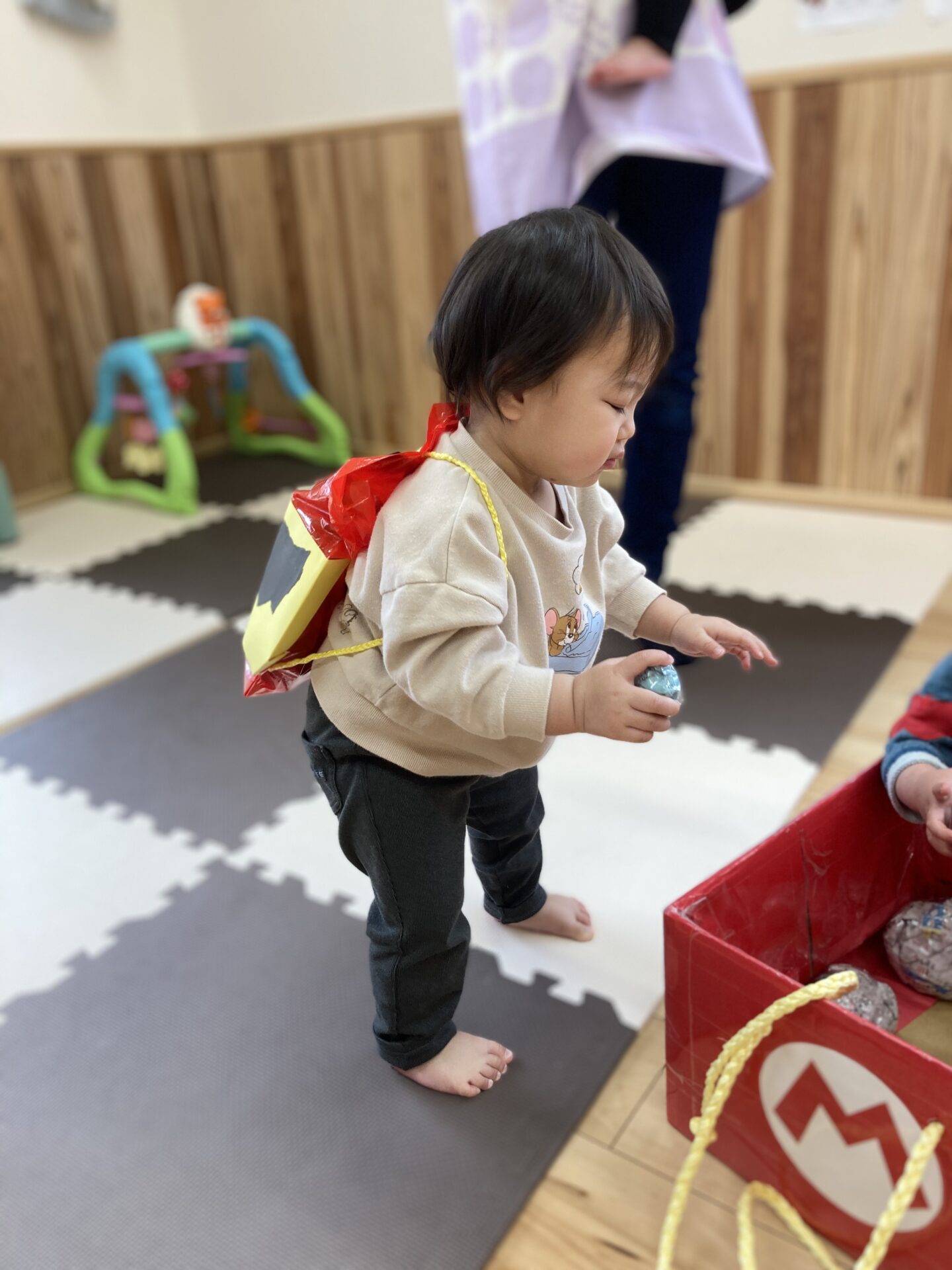 とにかく触ってさわって・・・✋「これは?」「動くかな?」と遊び方を考えていました