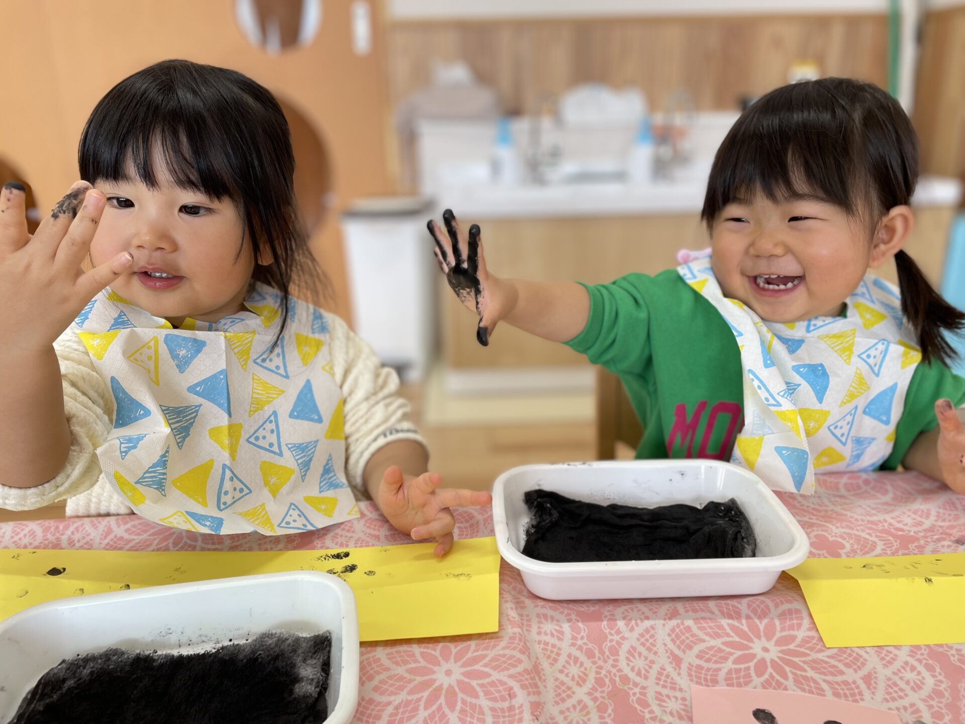 「みて~!」手が真っ黒に!「まっくろくろすけいるかな~👀」