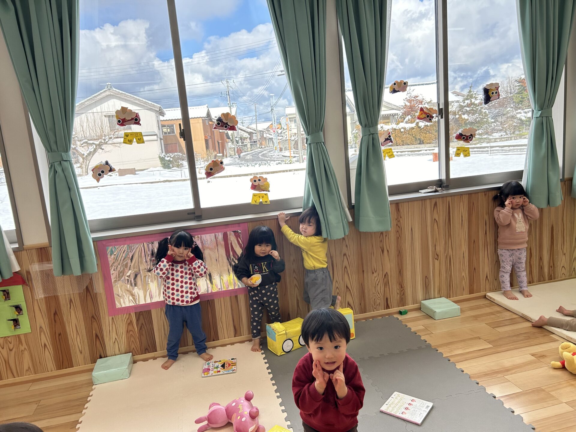 「できたよ~!かわいいでしょ~😊」かわいいオニが窓いっぱいに!