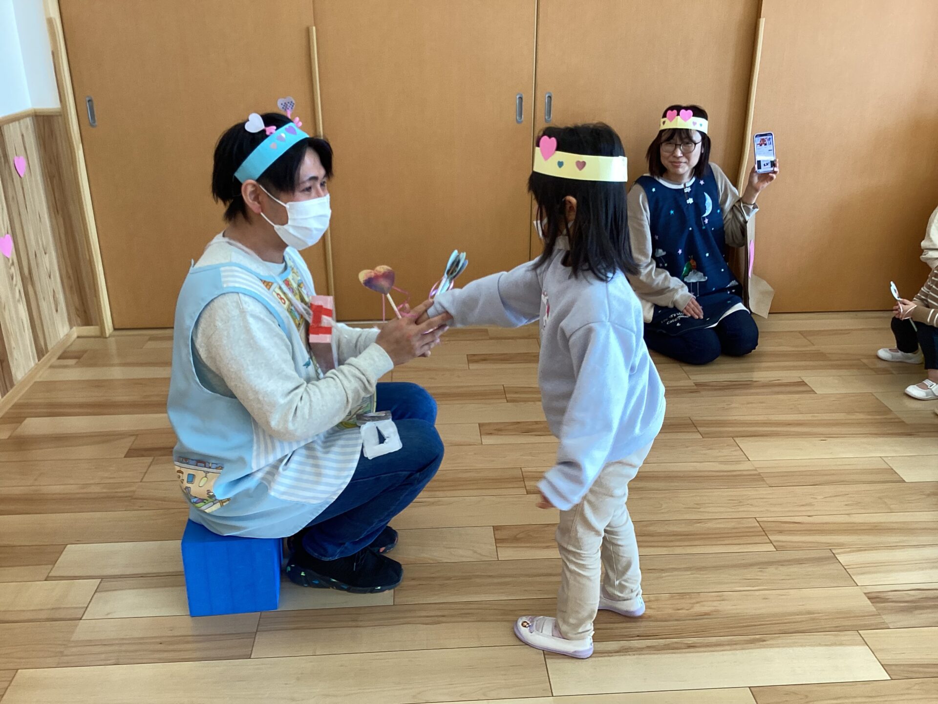 こっそり作った、みんなの顔写真付きのハートのスティック❤️を一人ずつプレゼントしました。