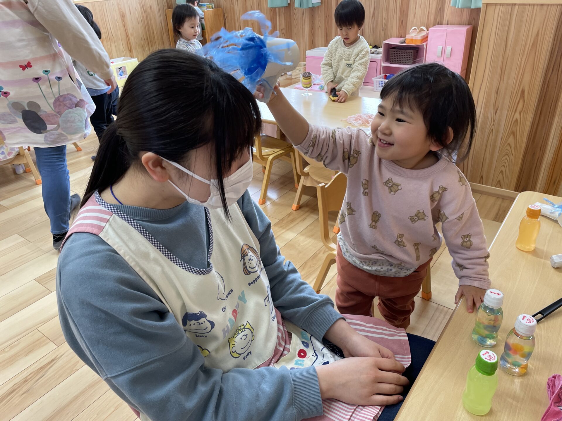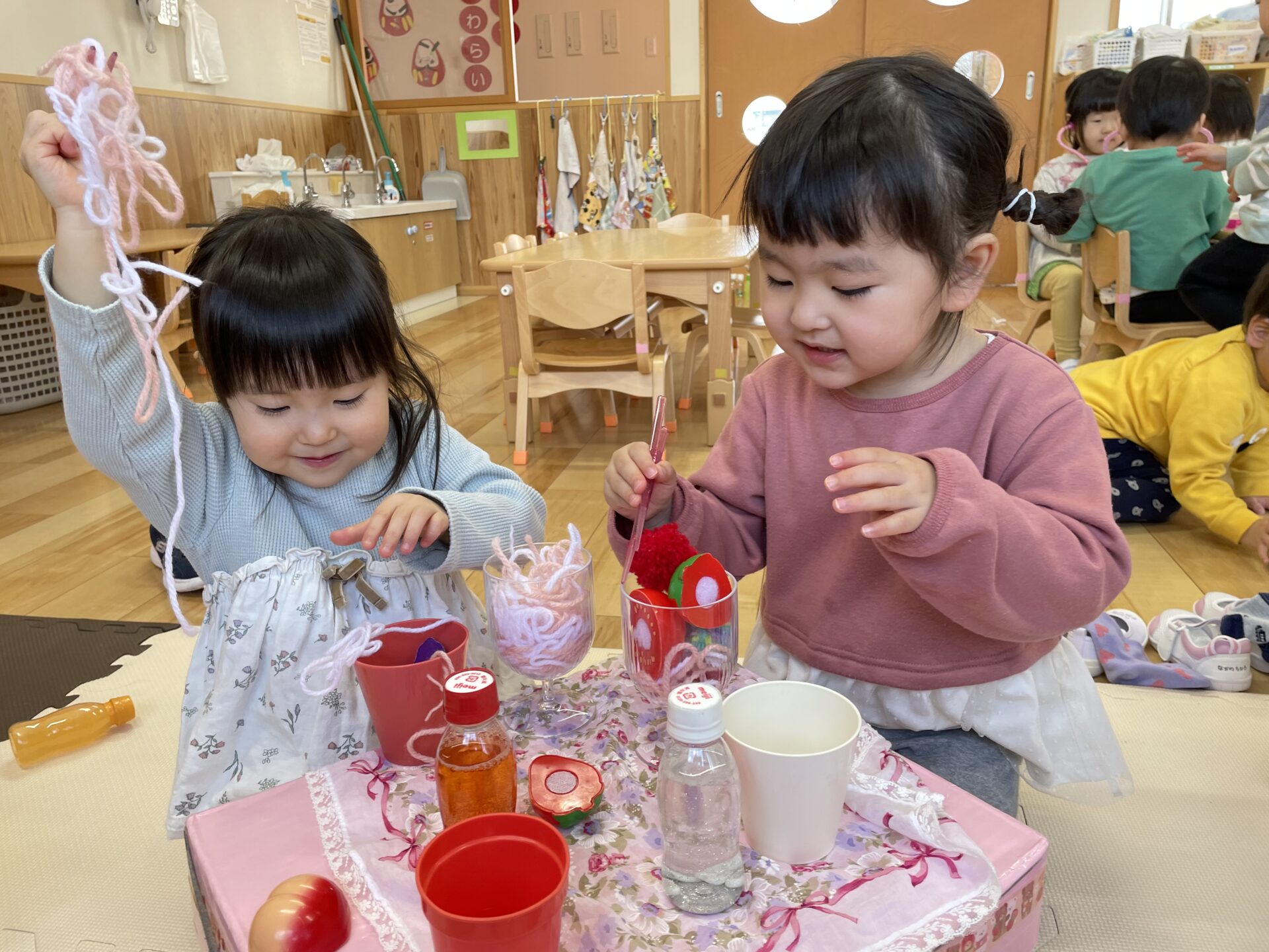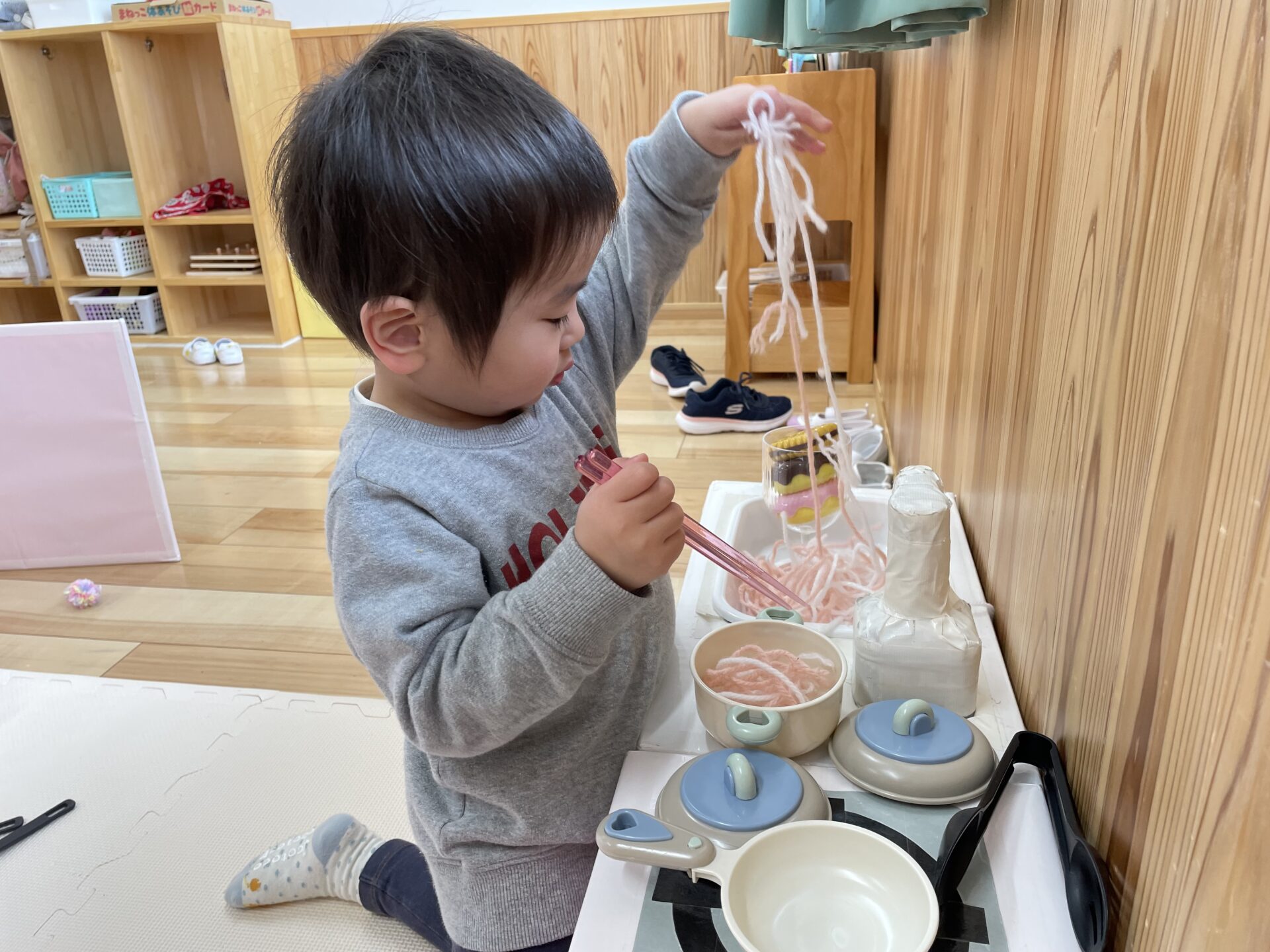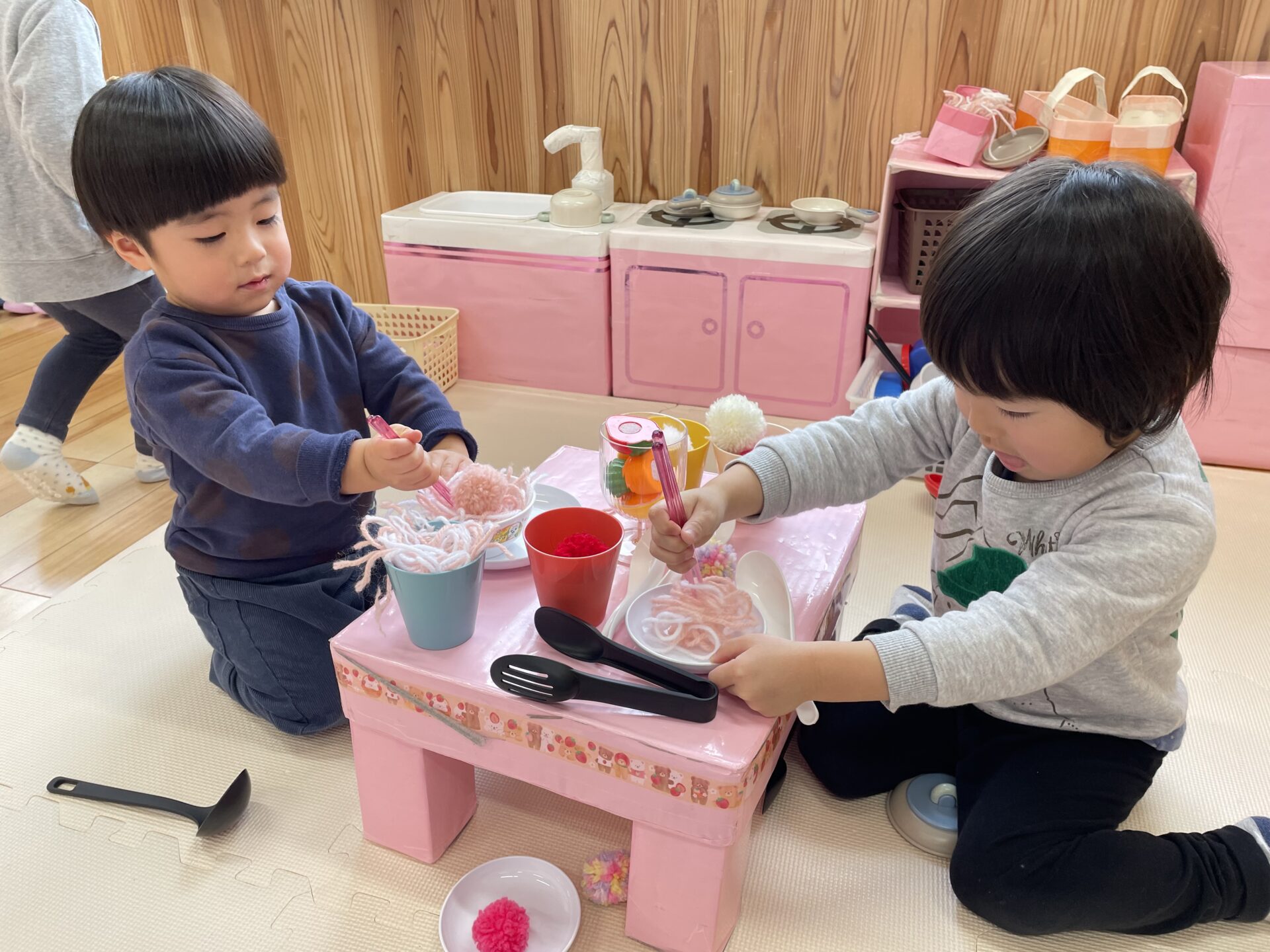にじ組(2歳児)は、お友だちとごっこ遊びをすることが大好きです🎶お医者さんや店員さん、お客さんなど、その日の気分によって、お友だちと役になりきって楽しんでいます。そんな子どもたちの姿を、ご紹介いたします。