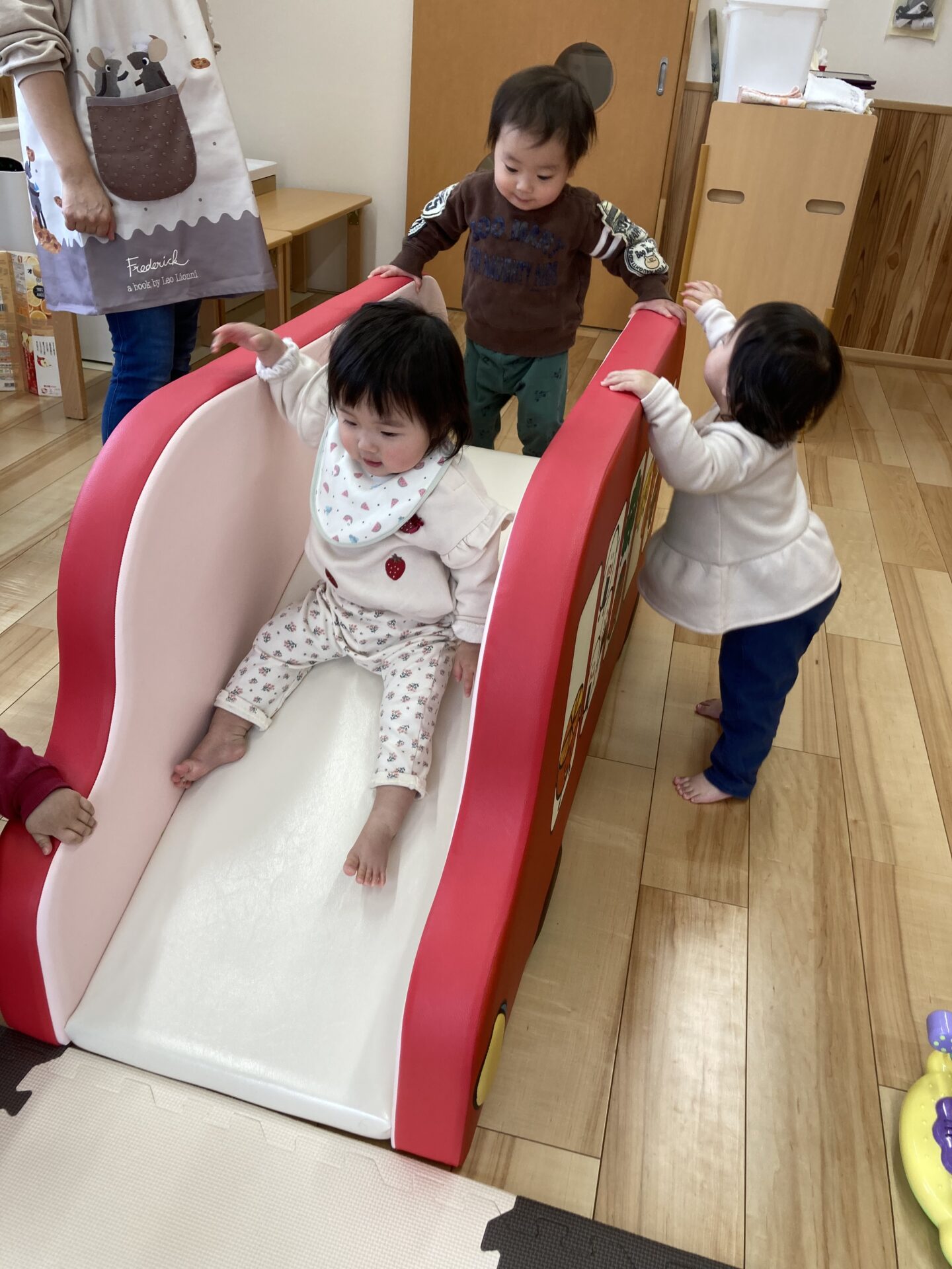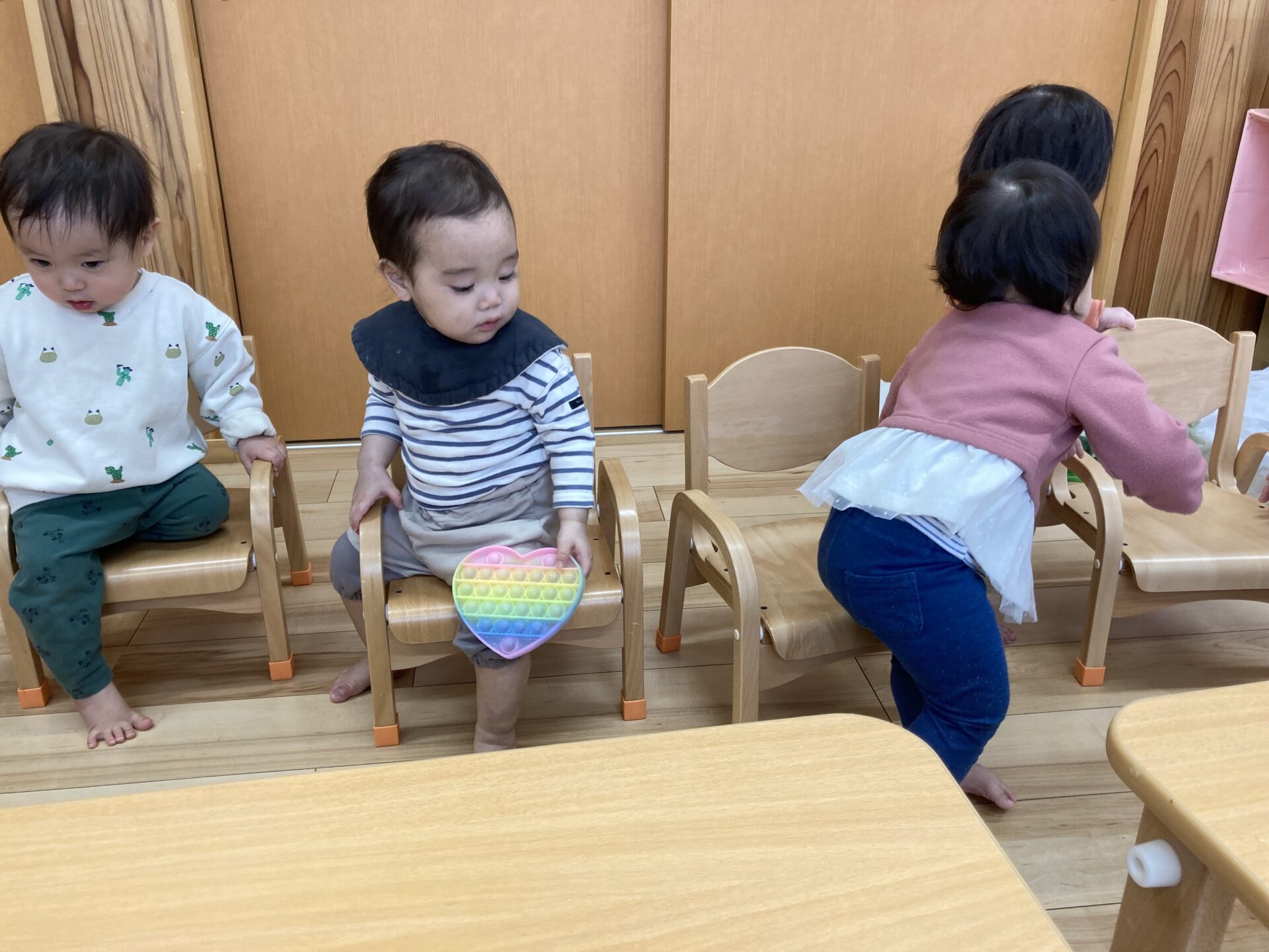 優しいえだまめ組(0歳児)、この春からもお友だちと仲良く