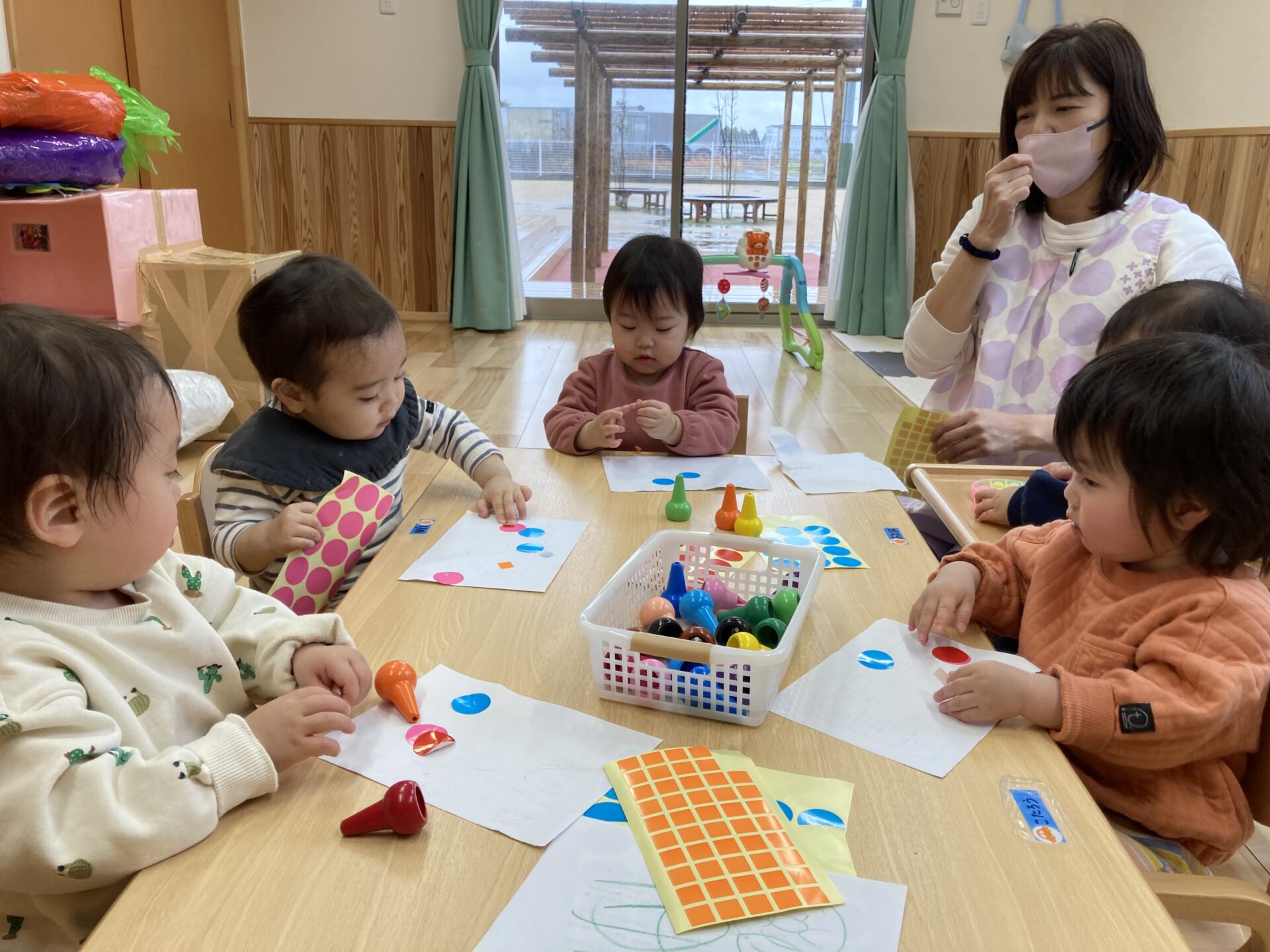 夢中でシールを貼ったり、クレヨンにも興味津々です。