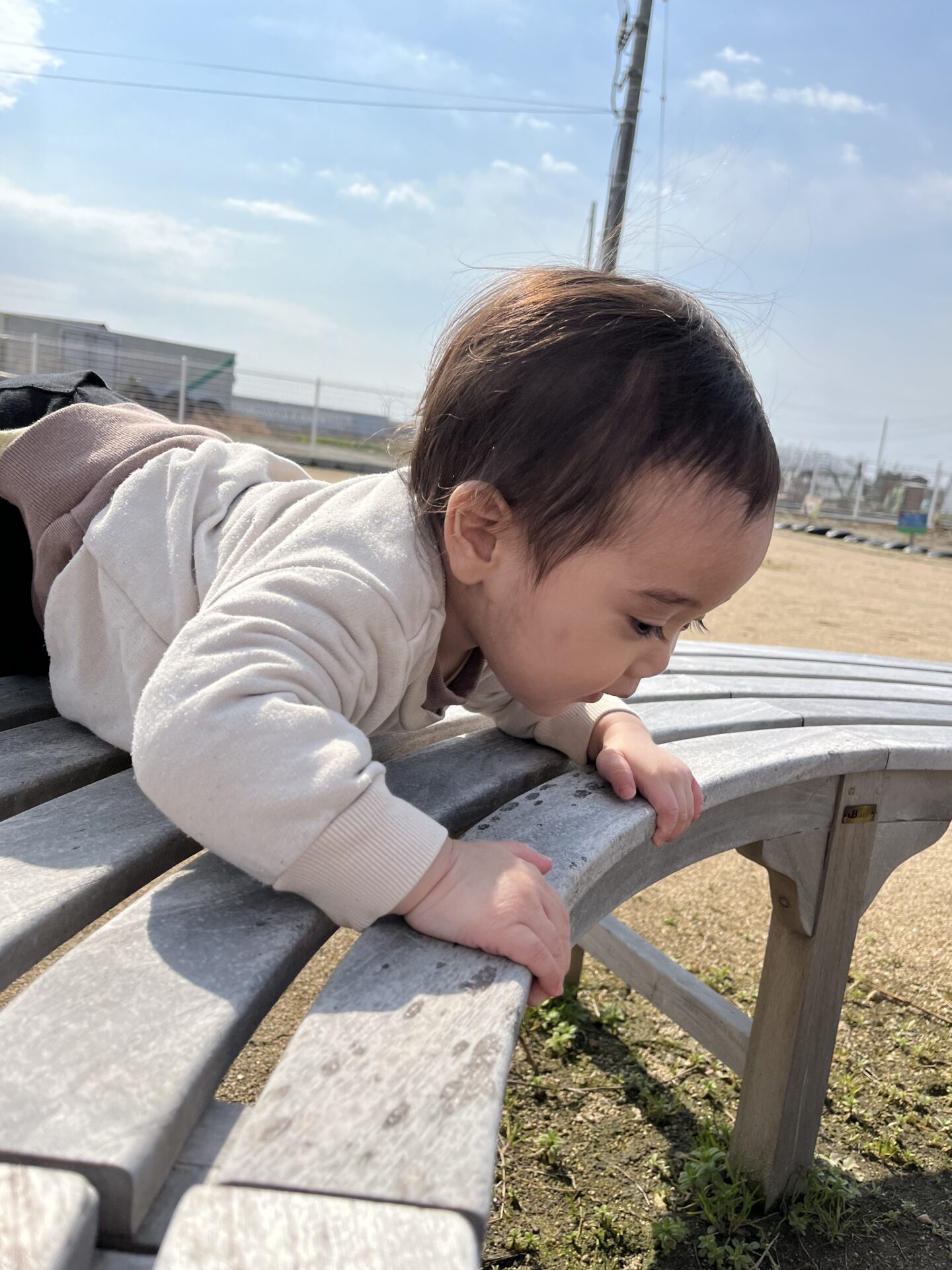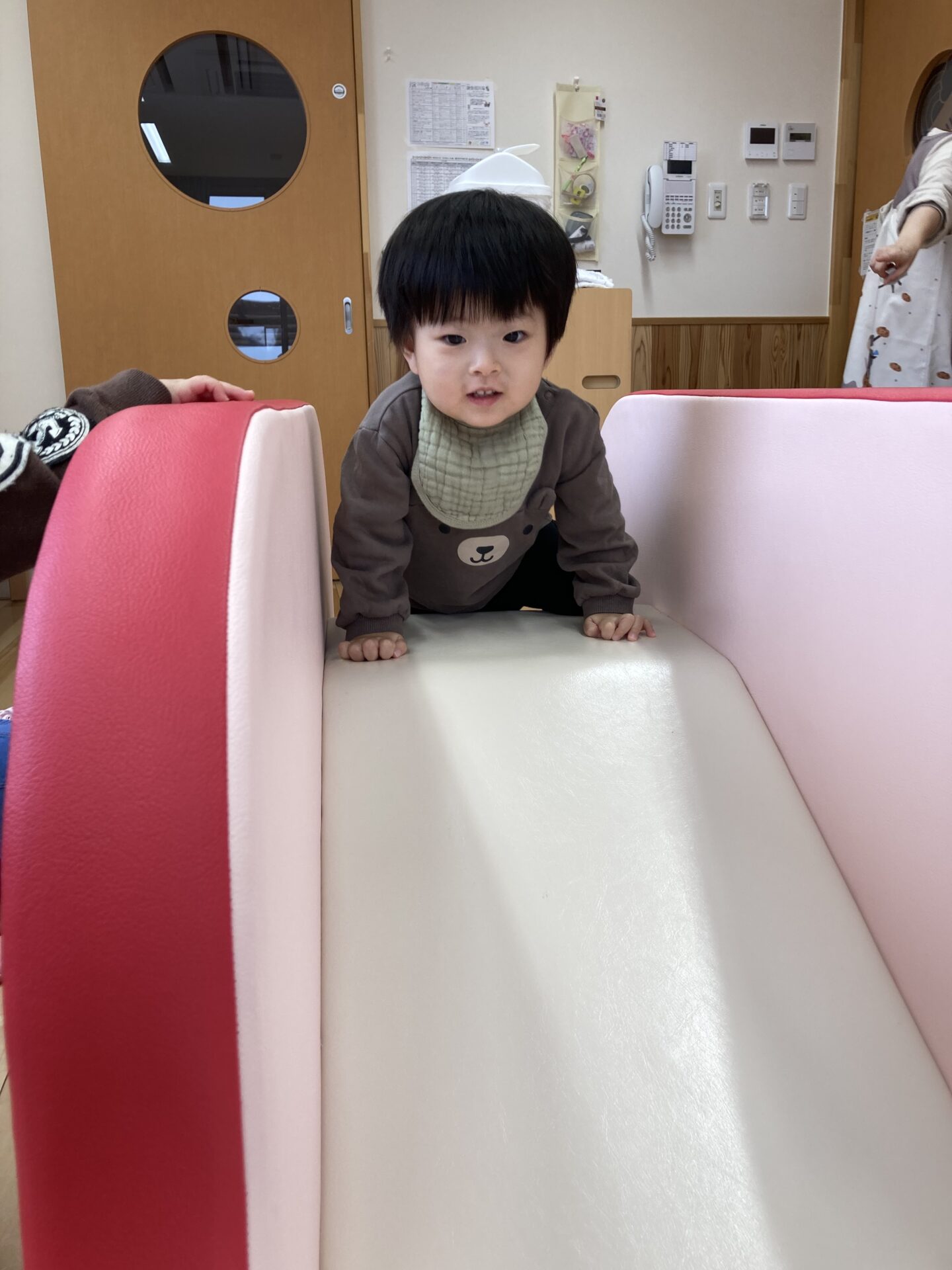 大好きな「園庭のベンチ」や「おべんとうバスのすべり台」も自分でのぼって、