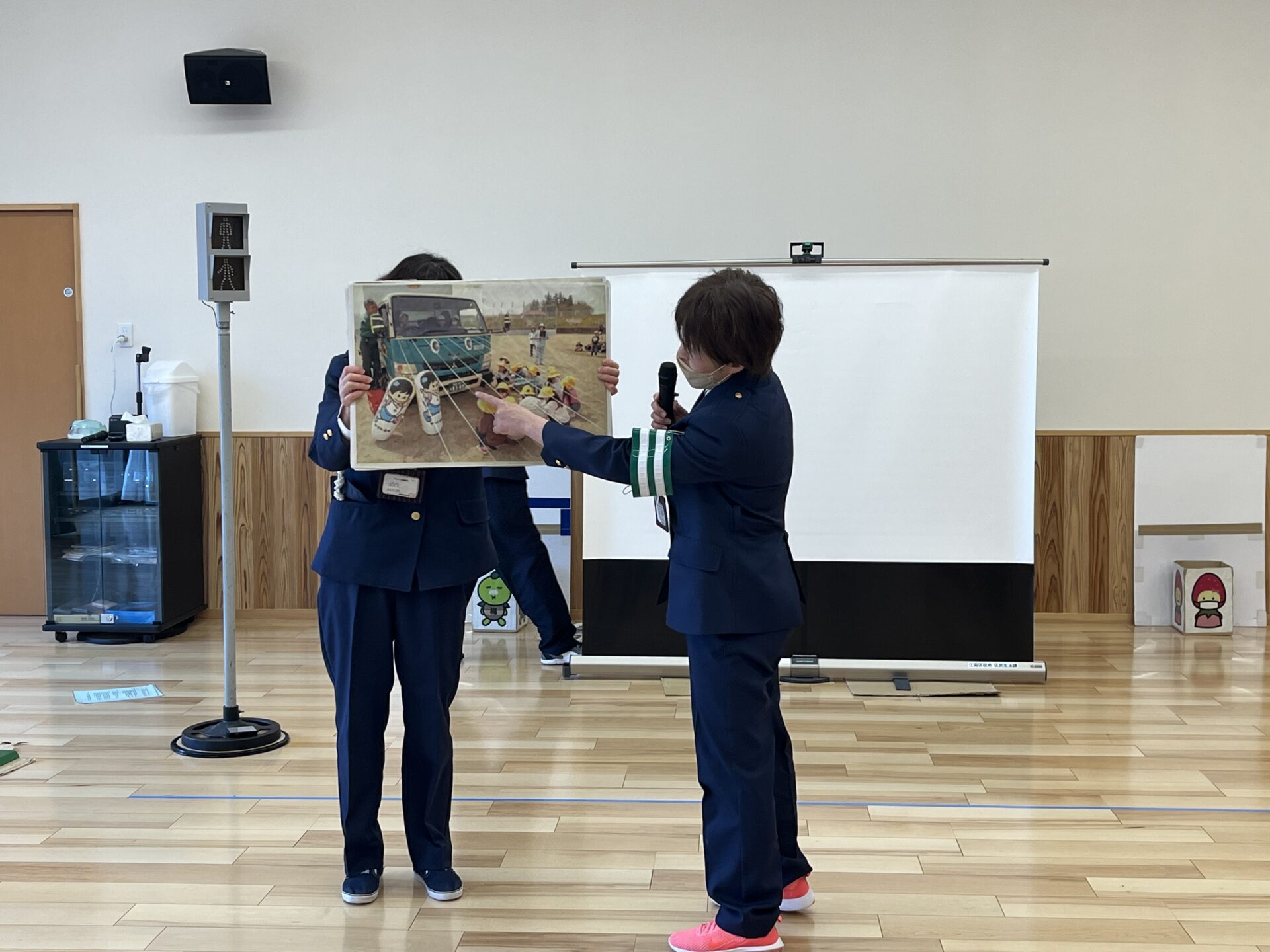 指導係の方がお手本になってくださり、渡る時は信号が青でも、【右を見て、左を見て、もう1度右を見て、車が来ないことをしっかり確認してから渡る】ということを、教わりました。