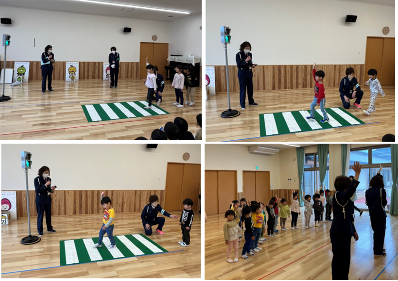 交通安全教室で学んだことを、えだまめこども園みんなで、しっかりと守っていきたいと思います。