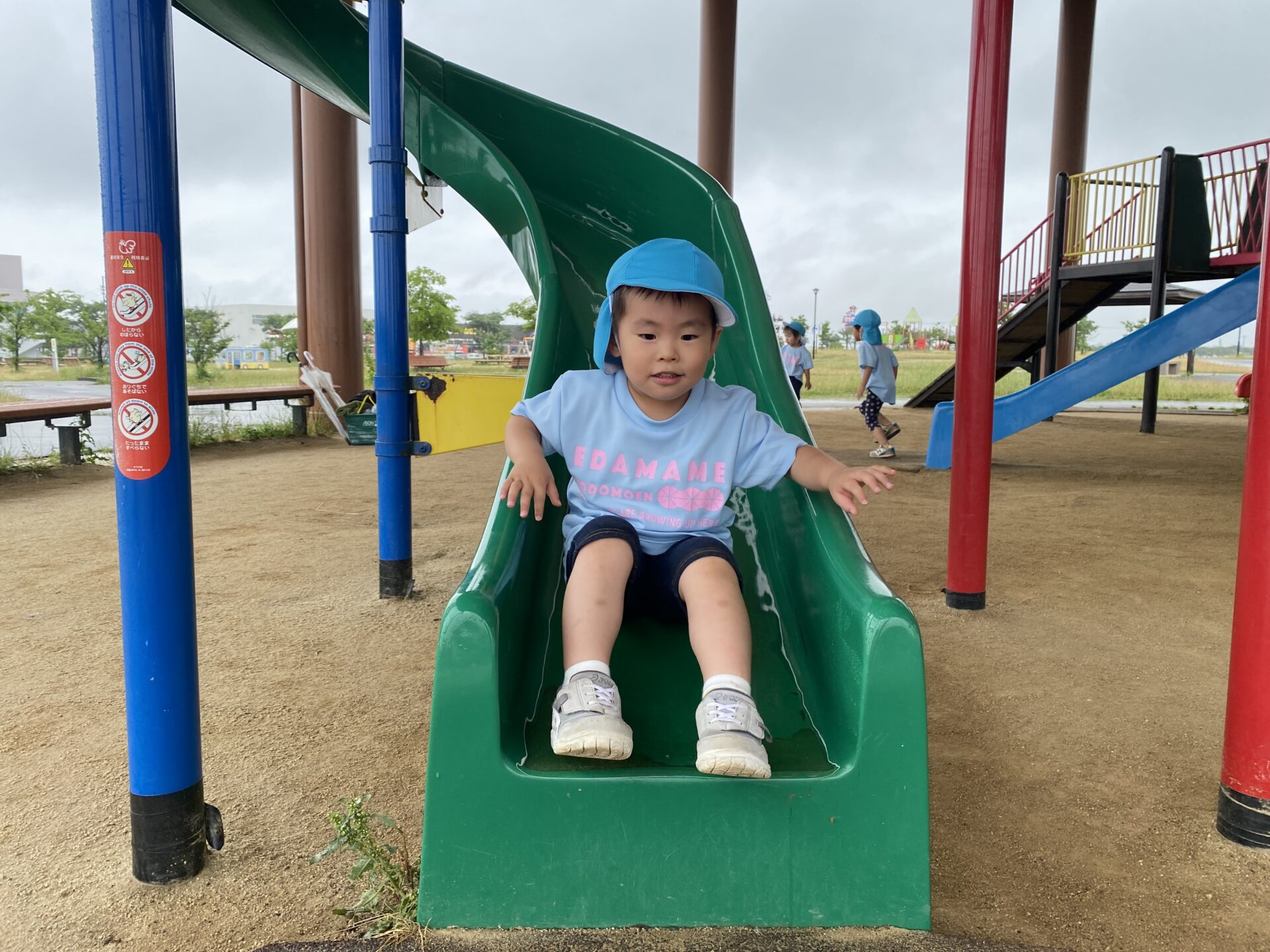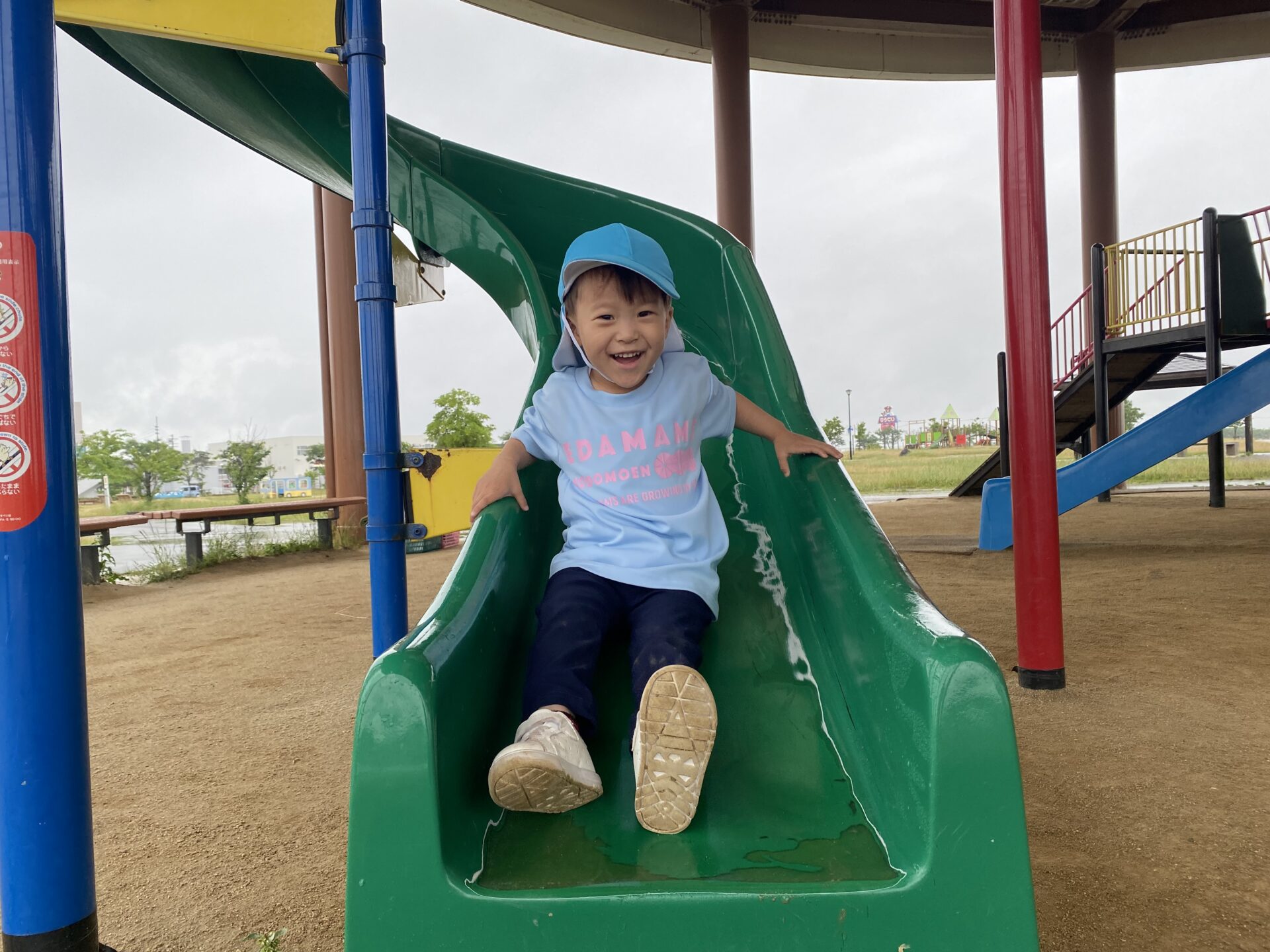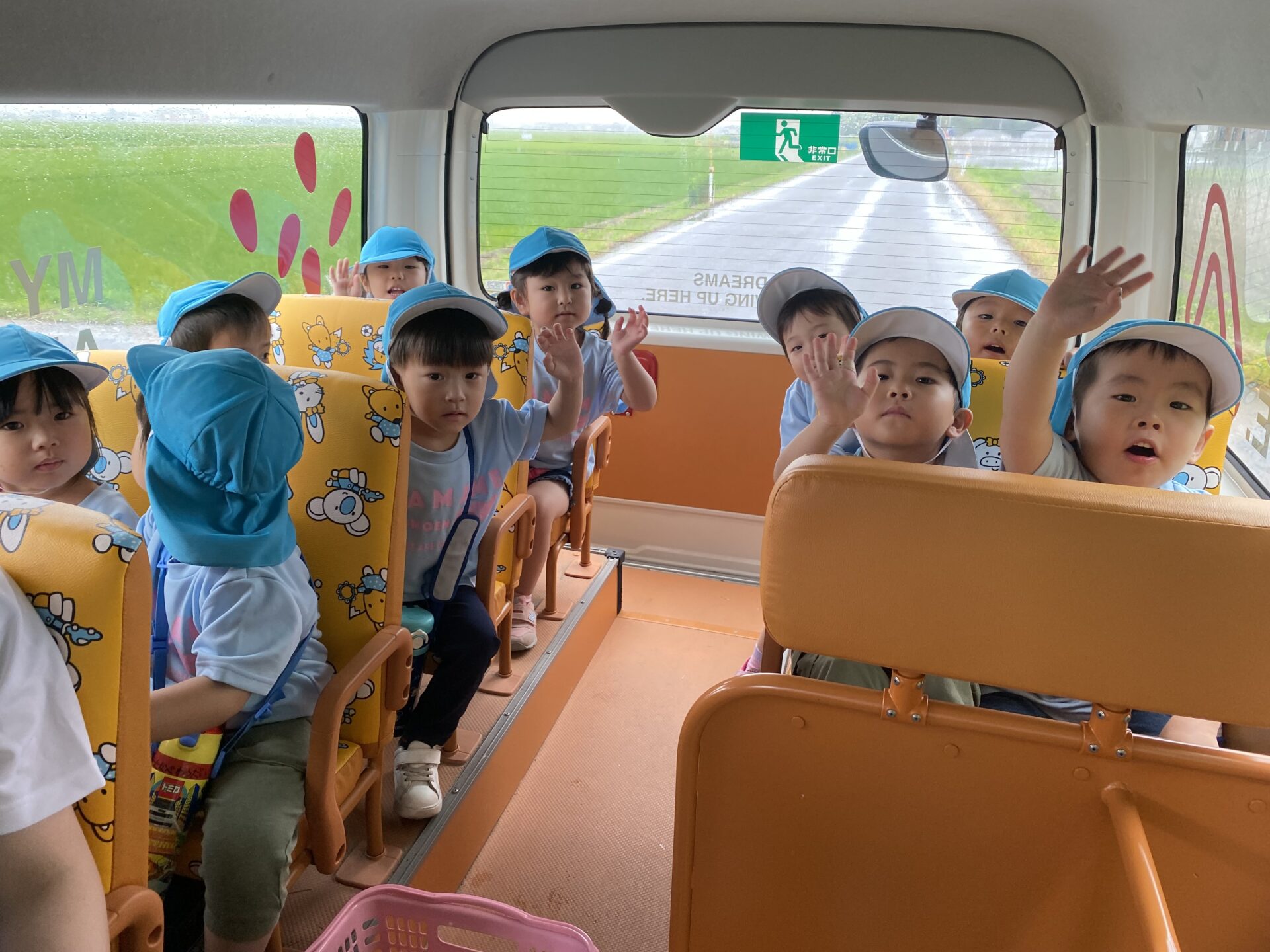 バスの中では、「赤い滑り台やりたい!」「青い滑り台もあるよね!」と、お話がとまりません。