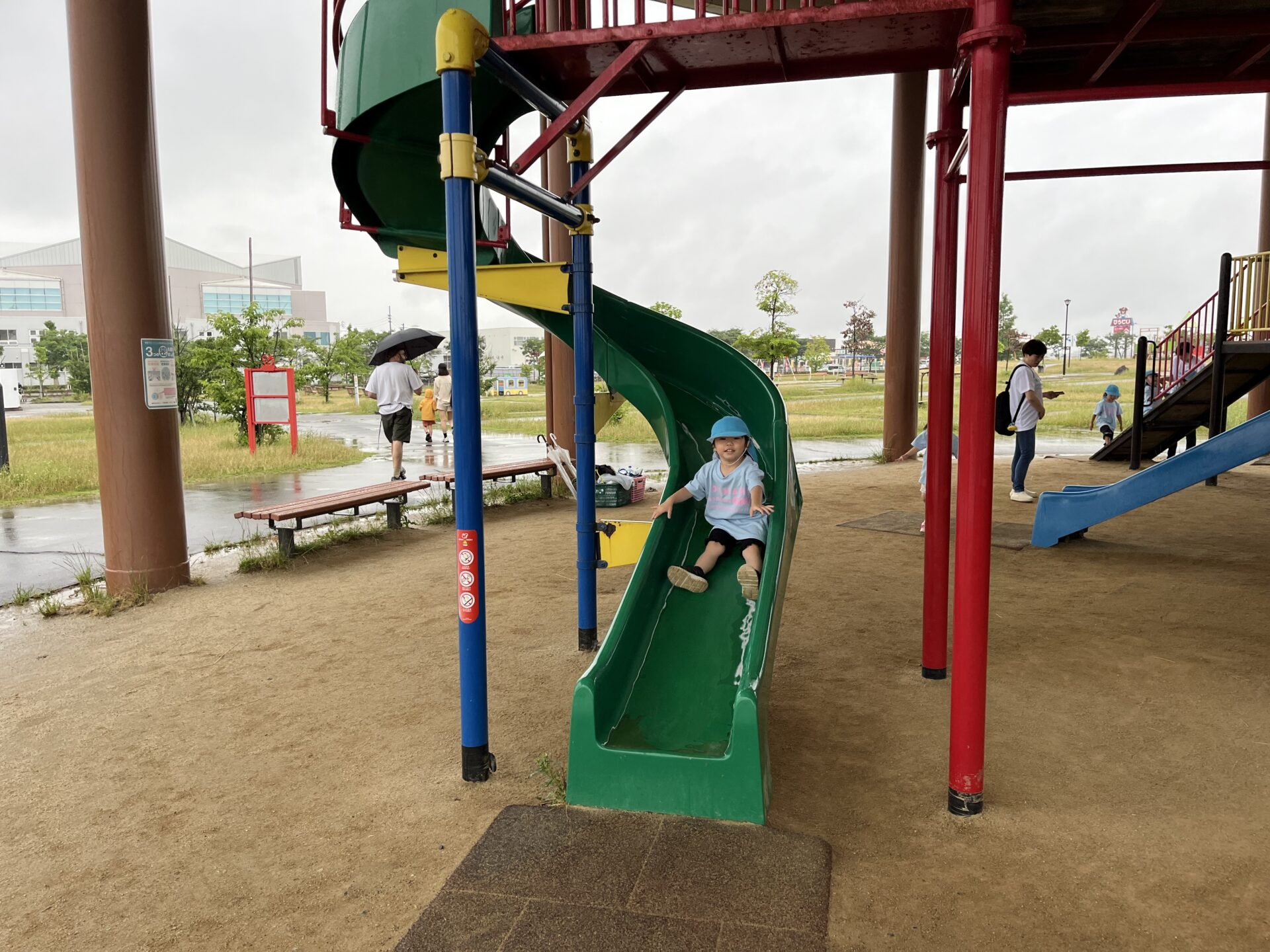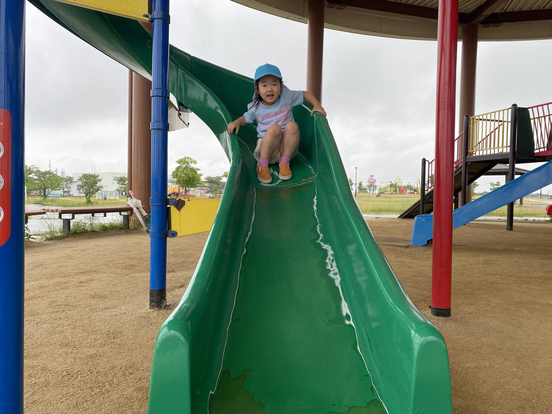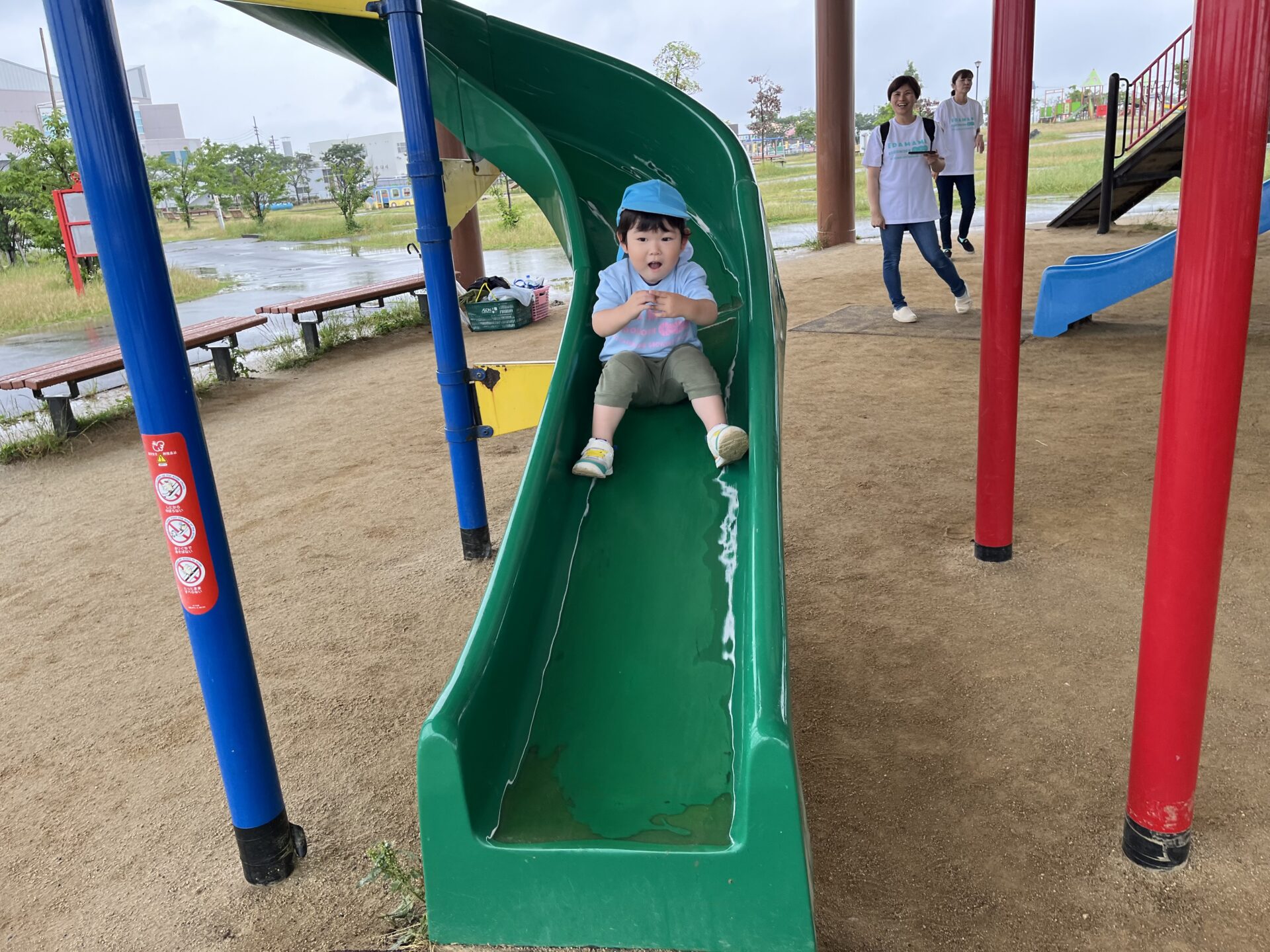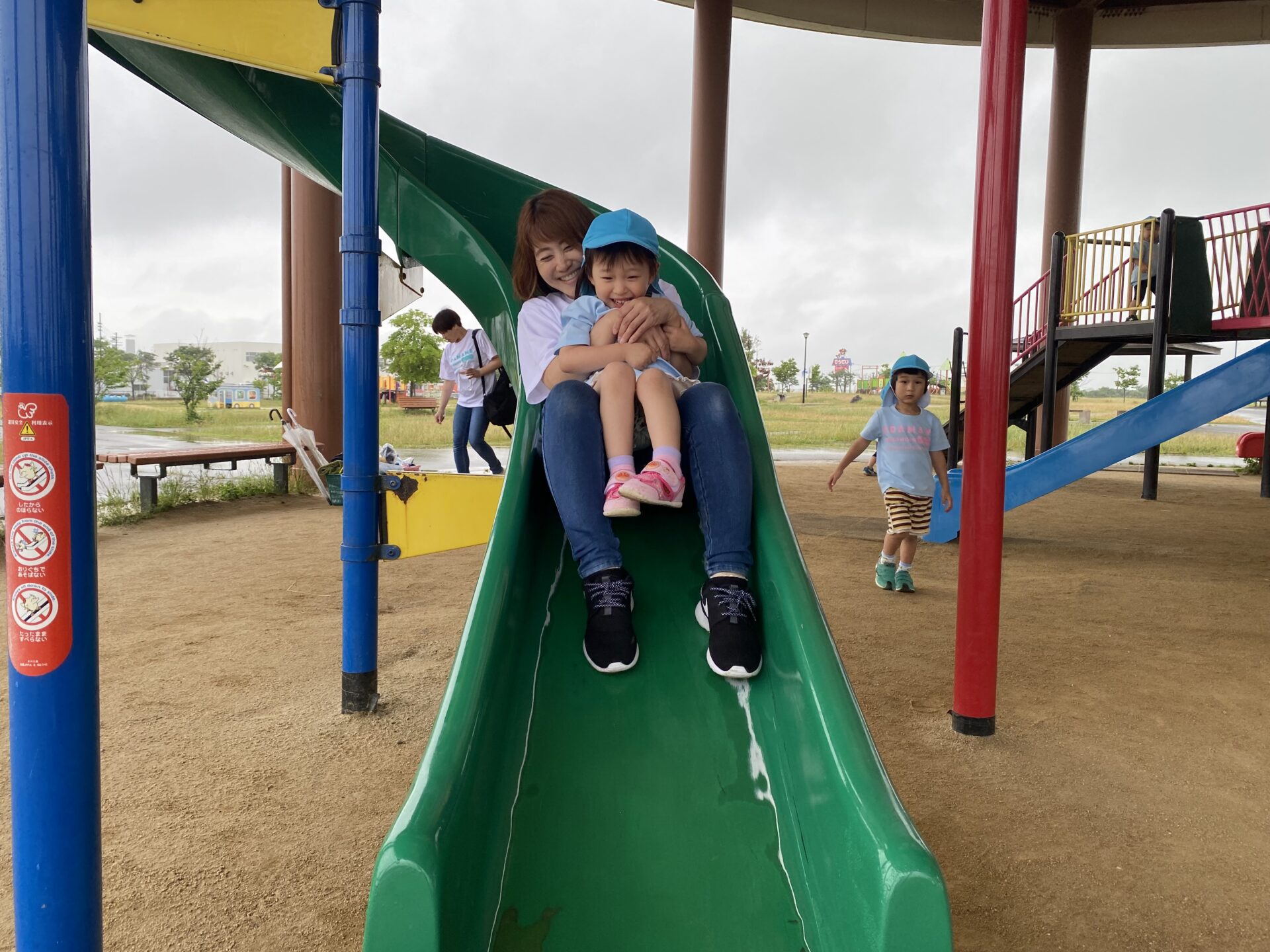 バスの中では、「赤い滑り台やりたい!」「青い滑り台もあるよね!」と、お話がとまりません。