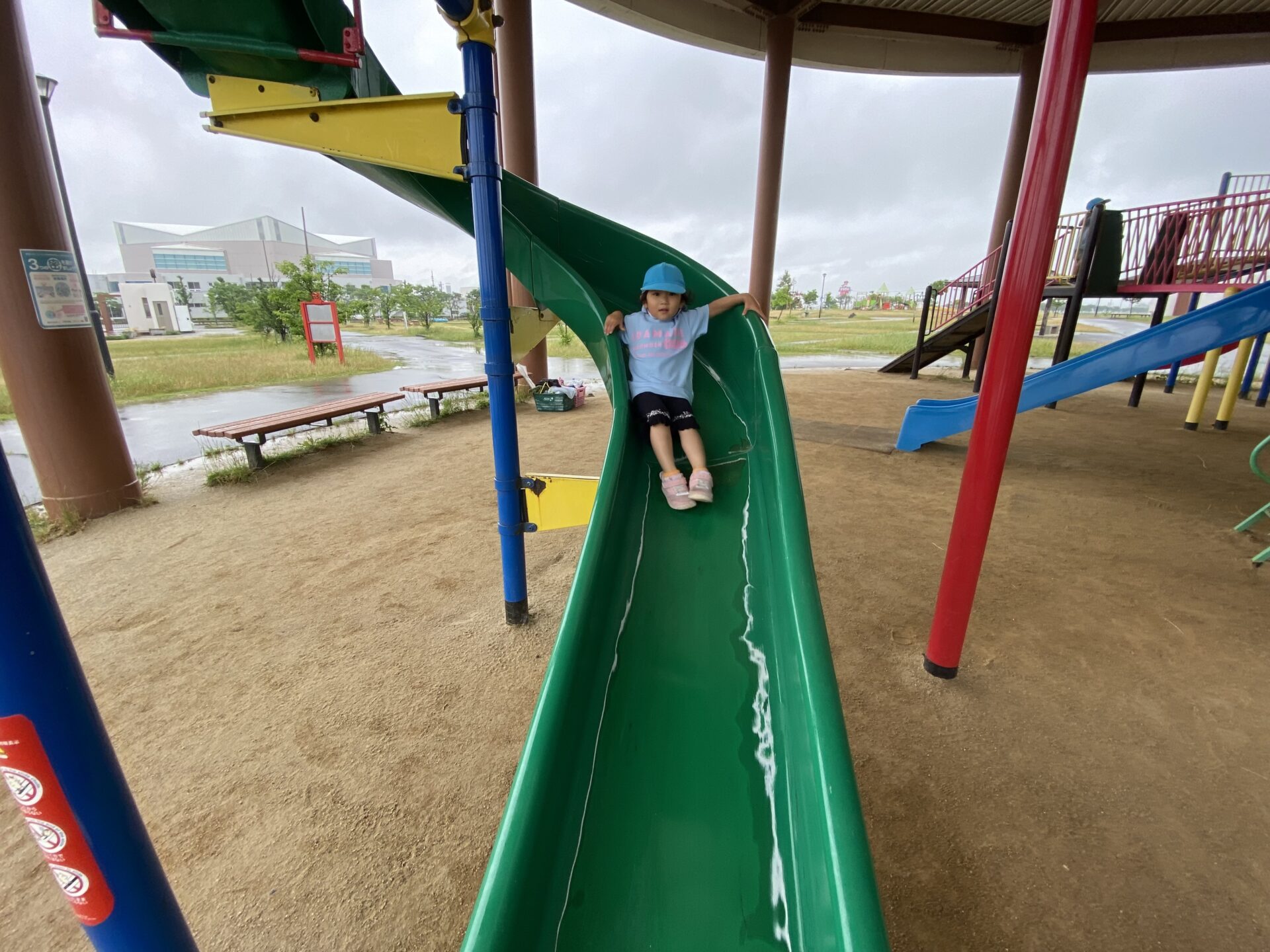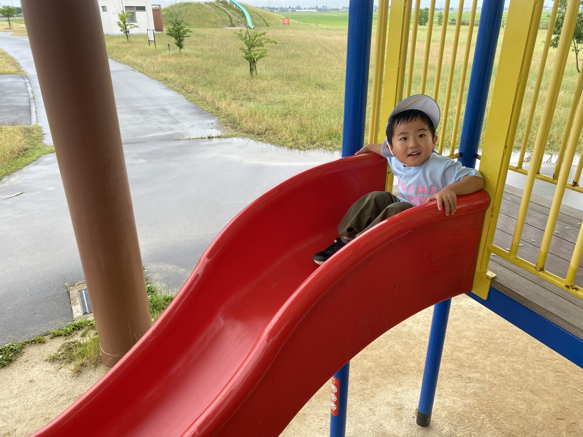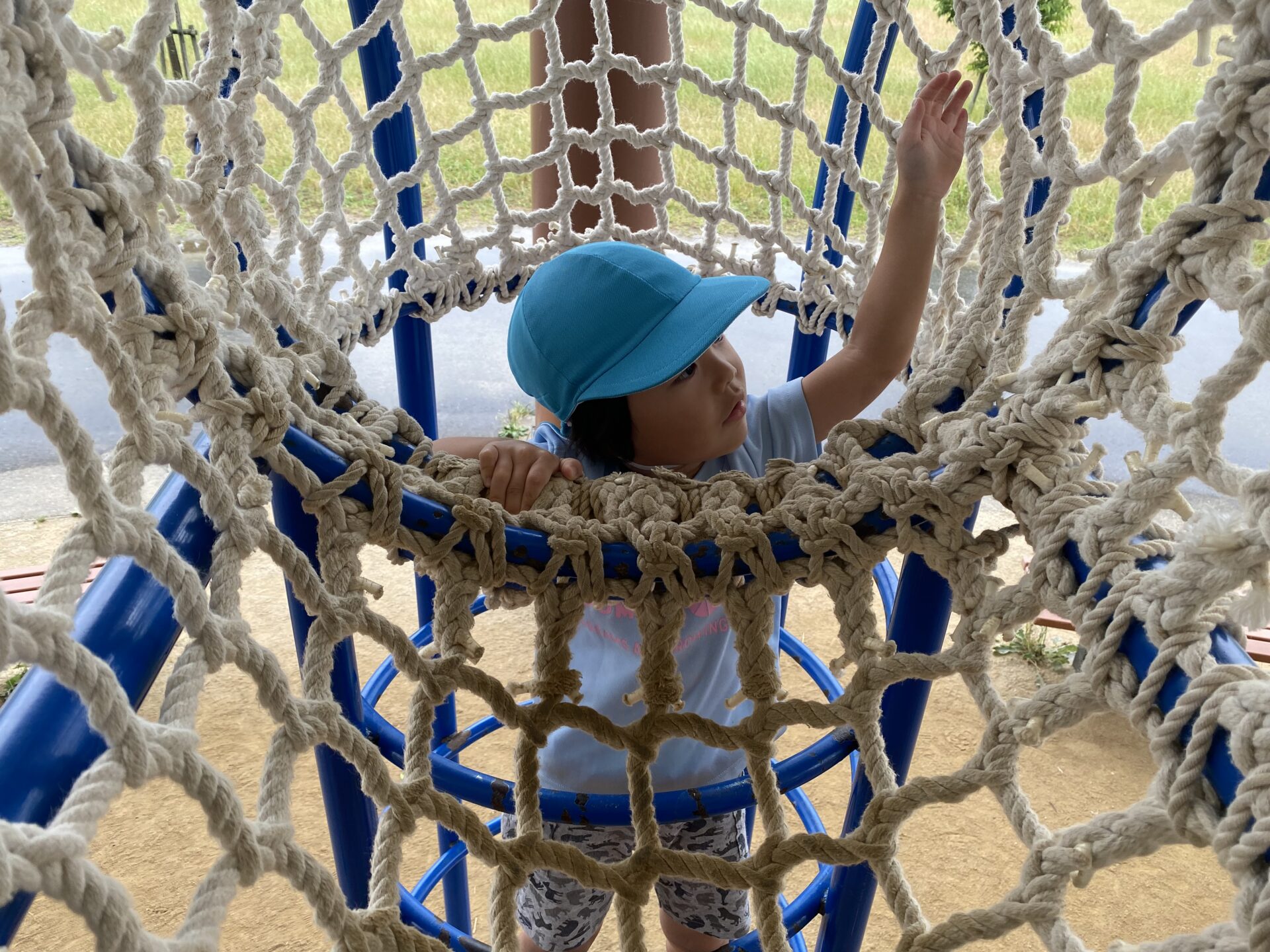 高い滑り台に「こわい…」と言いながらも、挑戦すると「楽しい!もう1回やる✨」と何度も滑ったり、ロープネットにも「ここ1人でできるんだよ!」と登ったりして、楽しみました😊