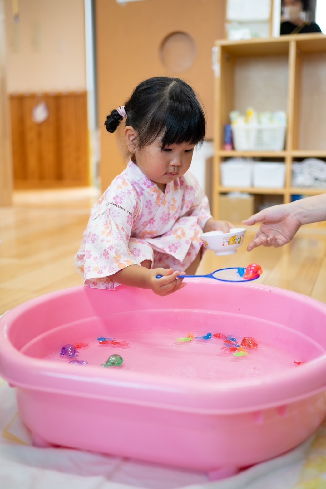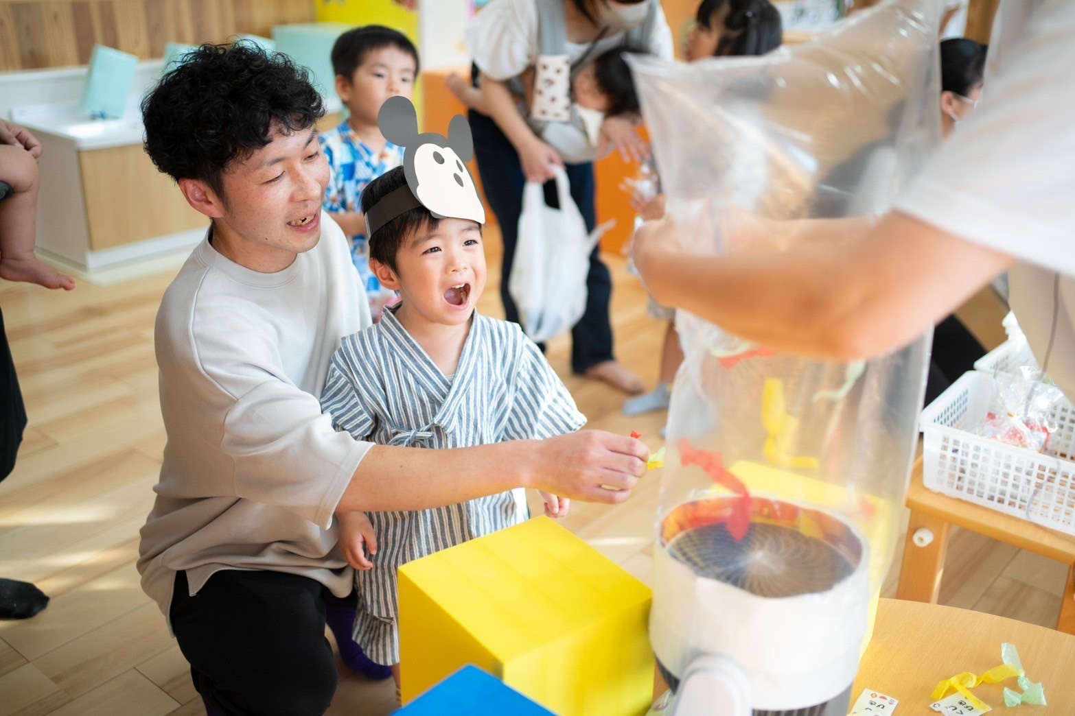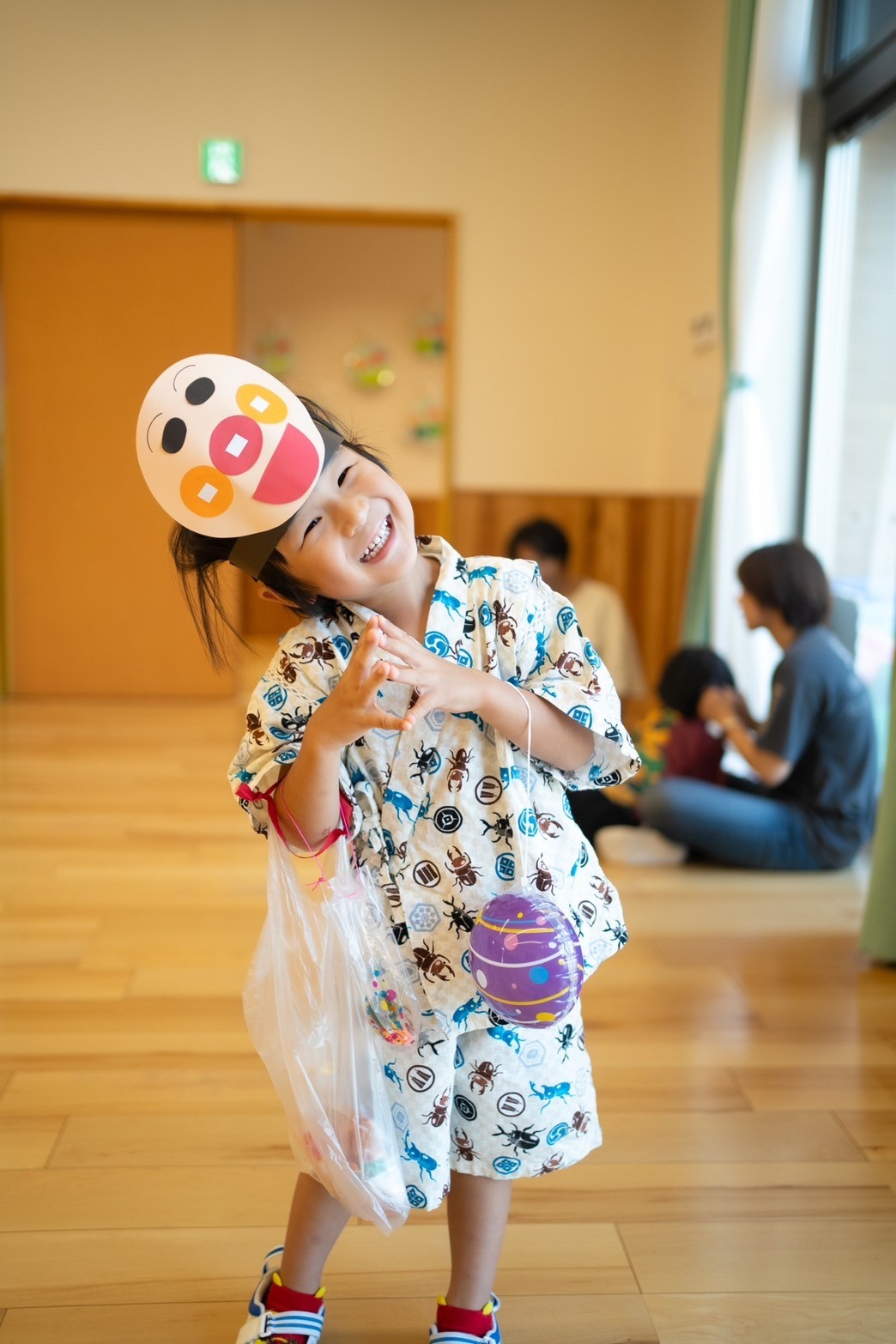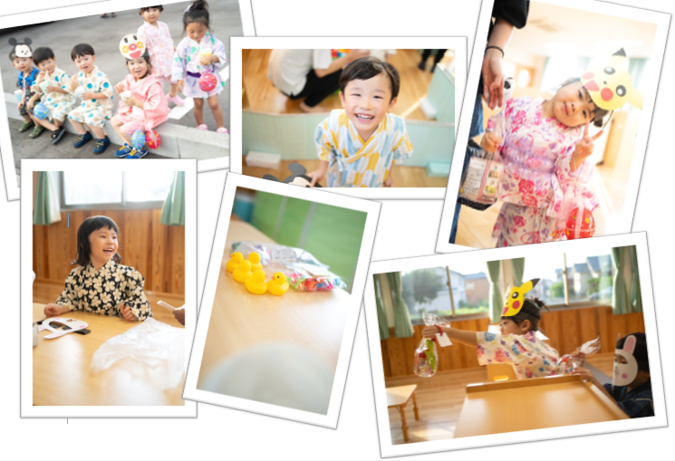 まつりのお楽しみコーナーは、金魚すくい&お面づくり、宝さがし&くじびきと、たくさんありました。どのコーナーも子どもたちが楽しめるよう、職員同士でアイデアを出し合い、準備をしました。
