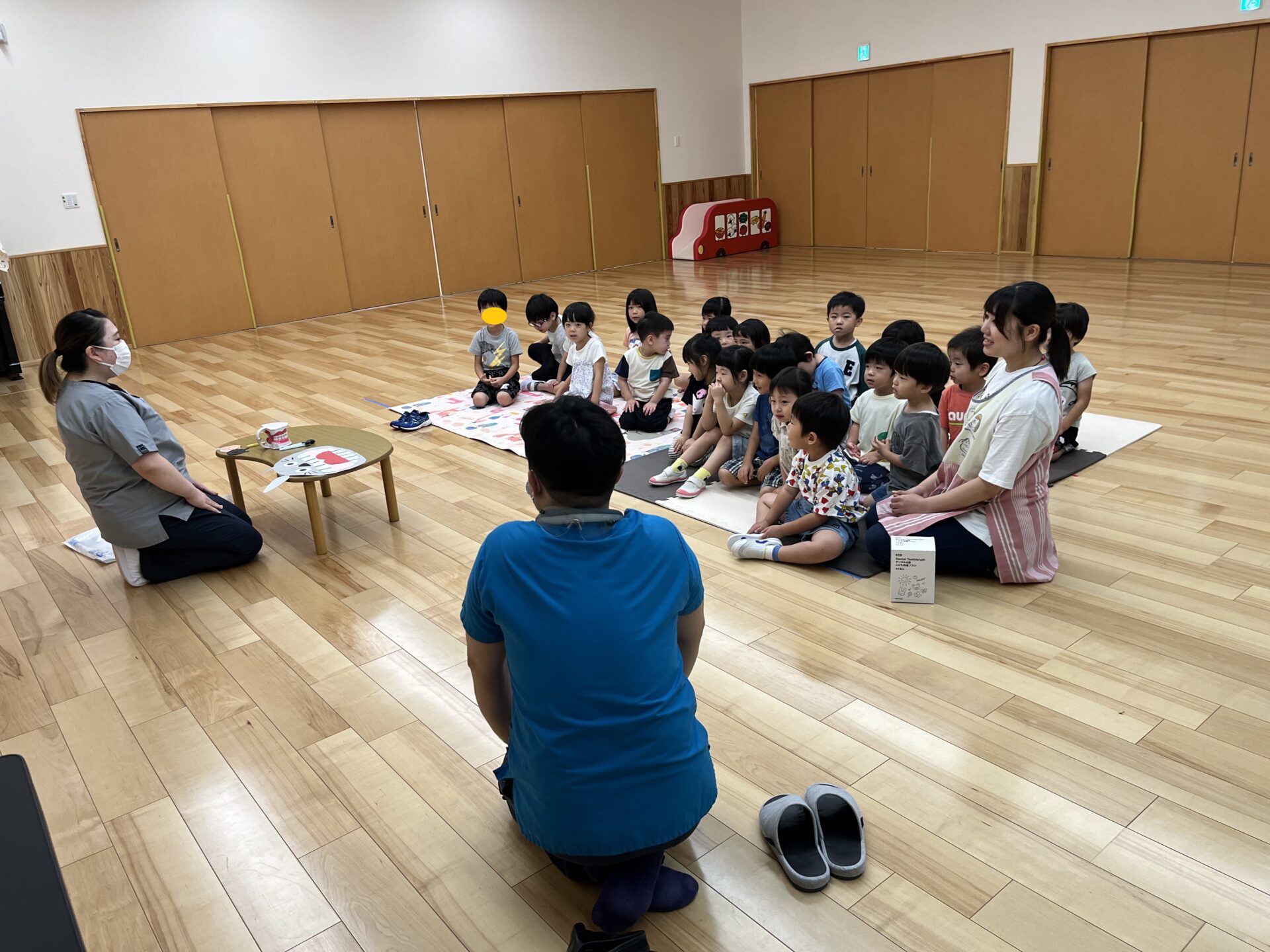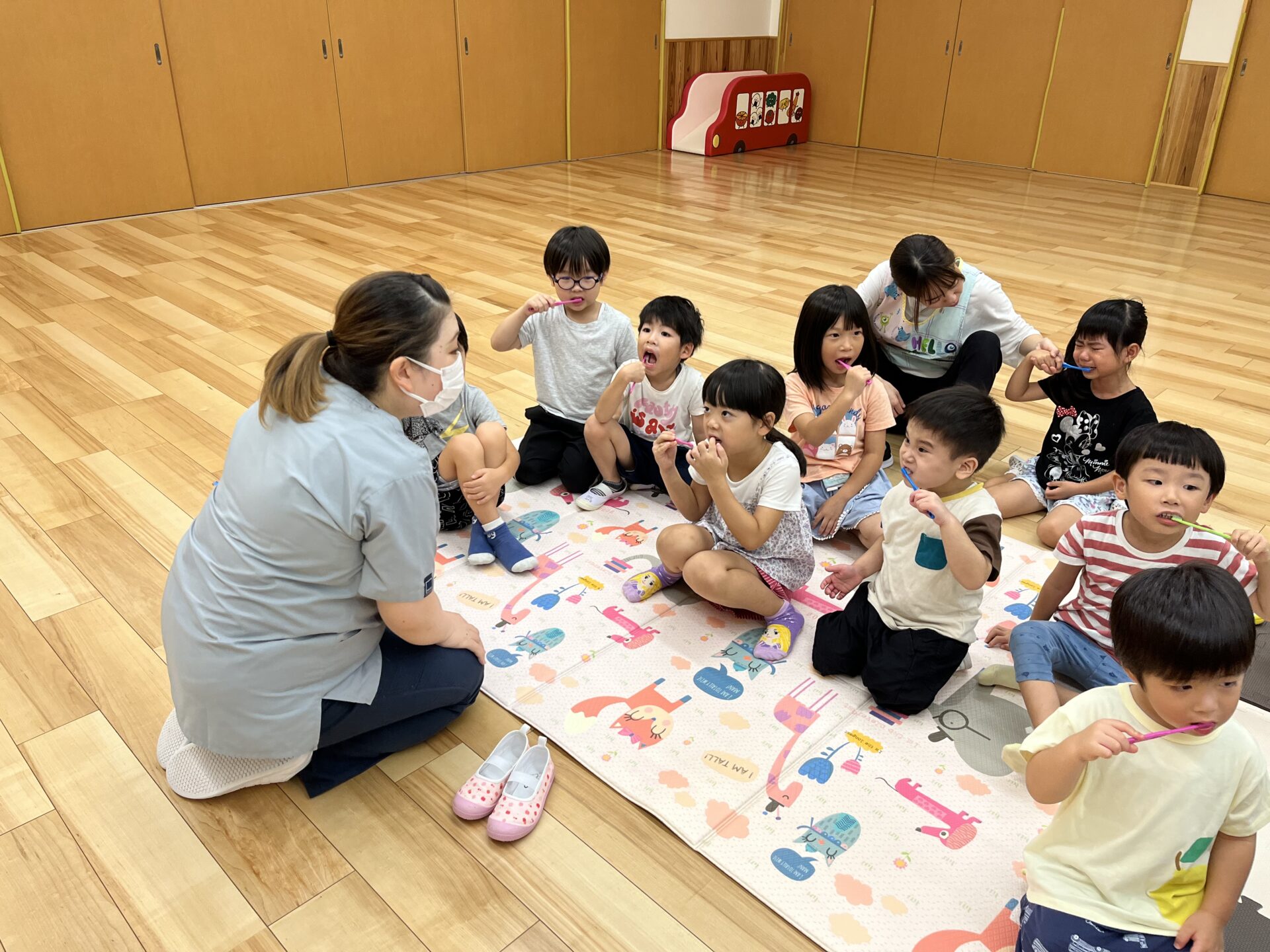 そんな願いを込めて、嘱託医のしんじょう歯科医院様より、歯みがき指導を行っていただきました。