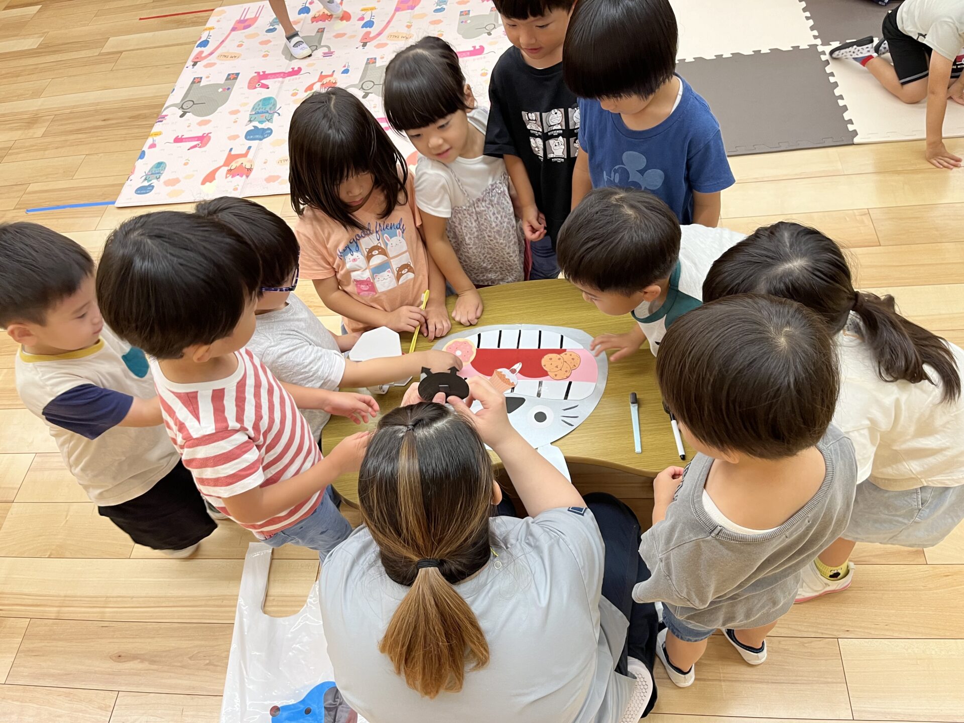 ゆき組(3歳児)、そら・つき組(4・5歳児)の子どもたちは、興味津々な様子でお話を聞いていました。