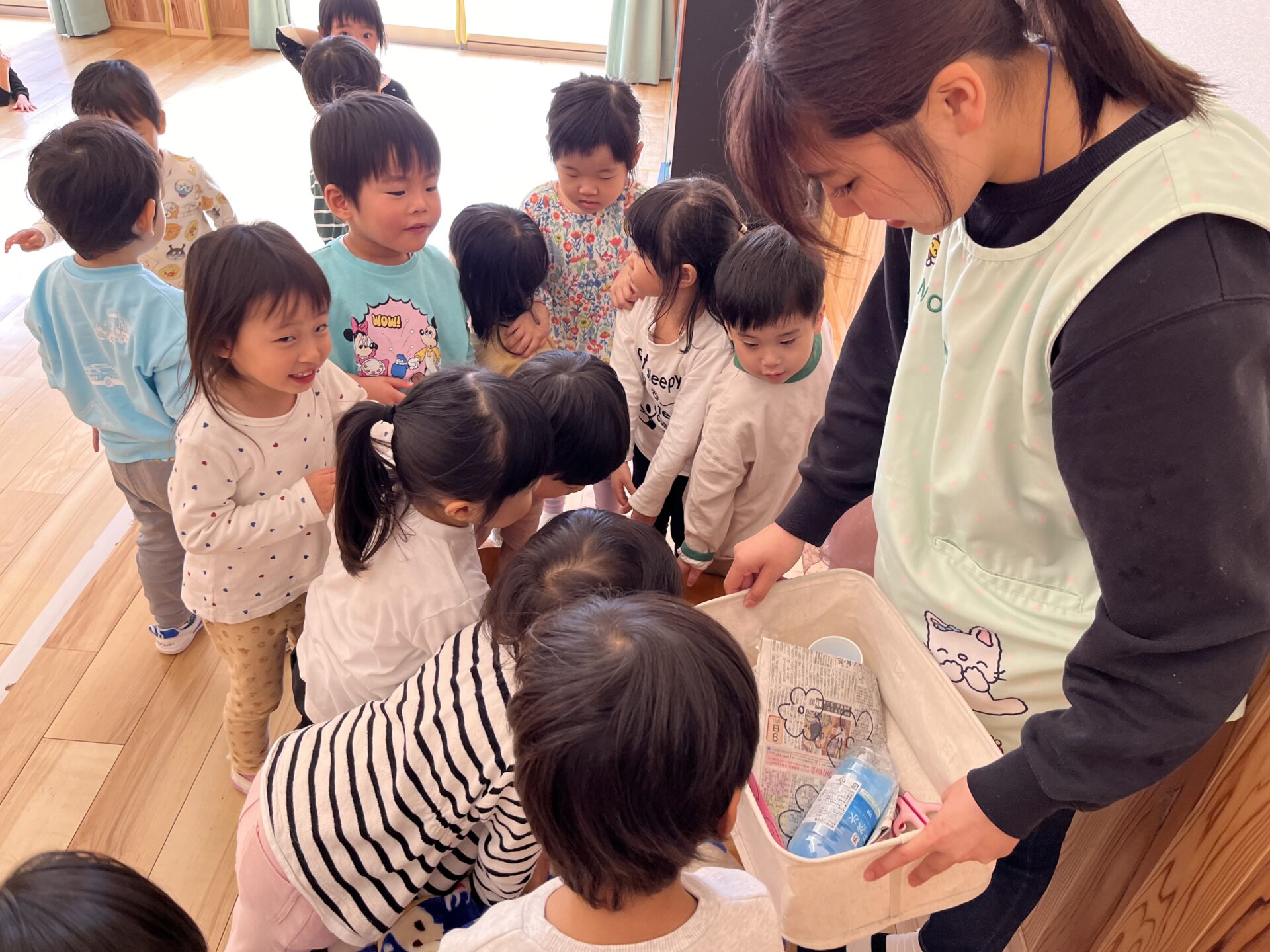 子どもたちの「なぜ?」「どうして?」は、誕生会終了後も、まだまだ続きます・・・