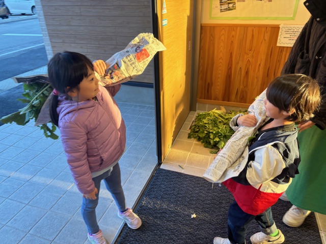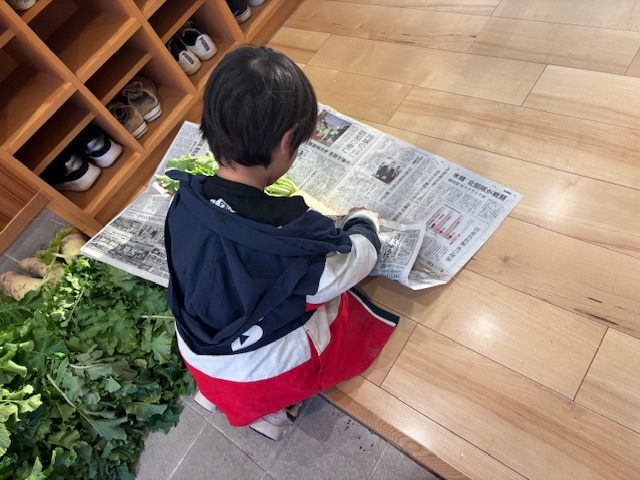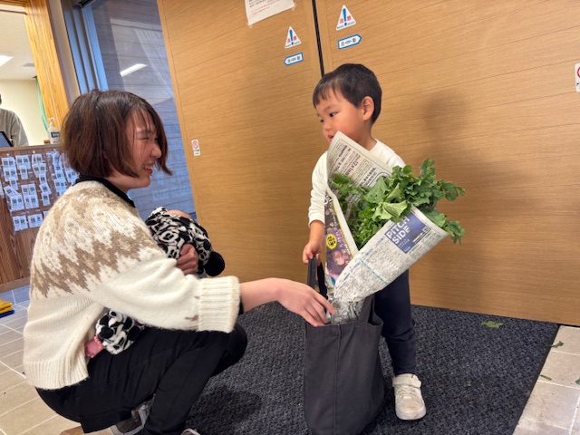 子どもたちは、好きな形を選び、新聞紙にくるんで持ち帰ります。