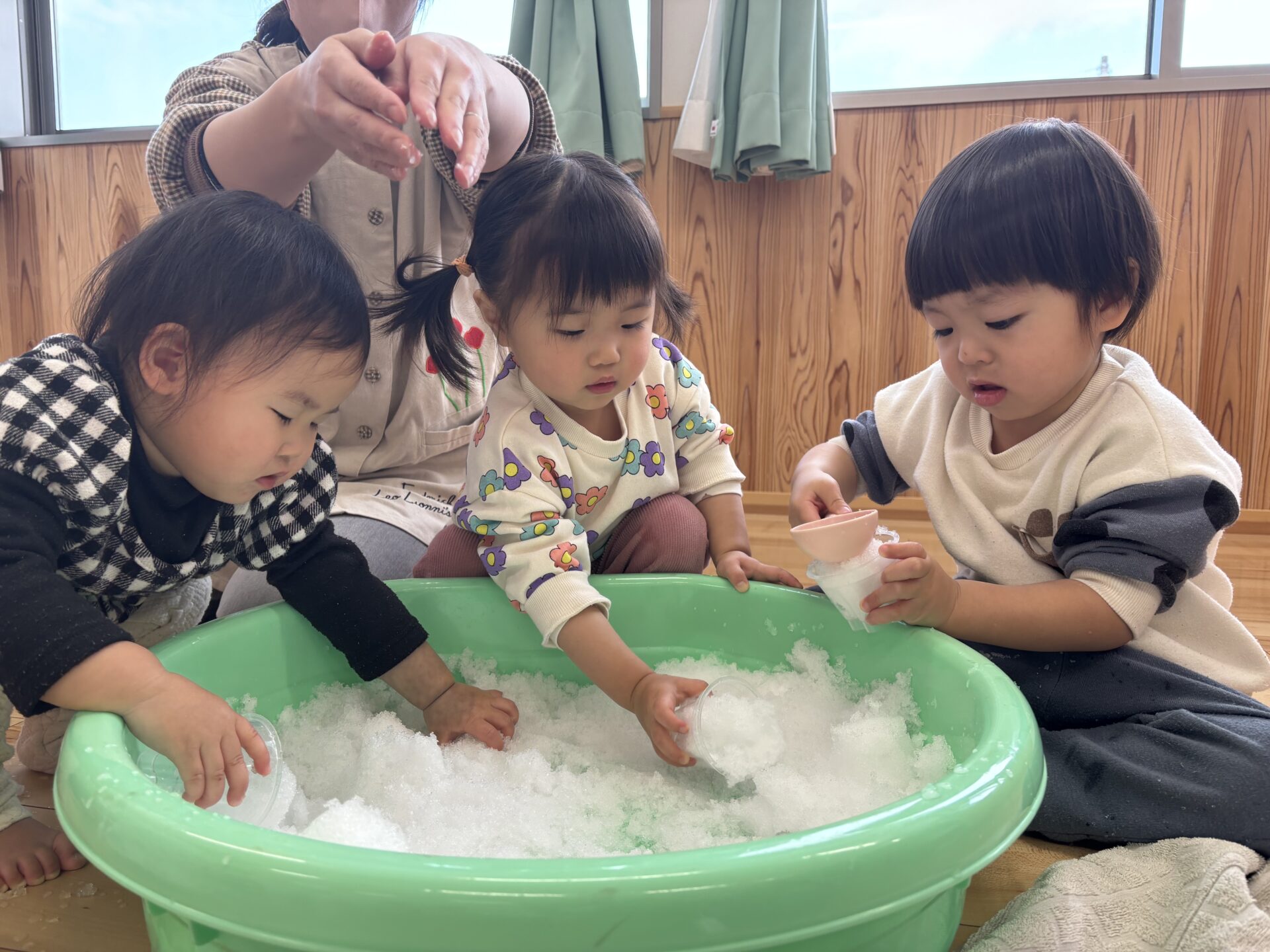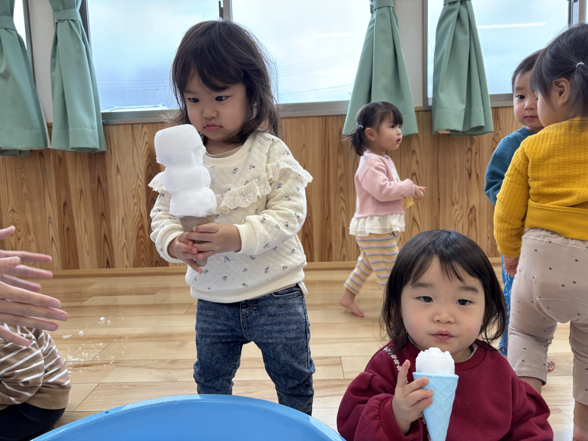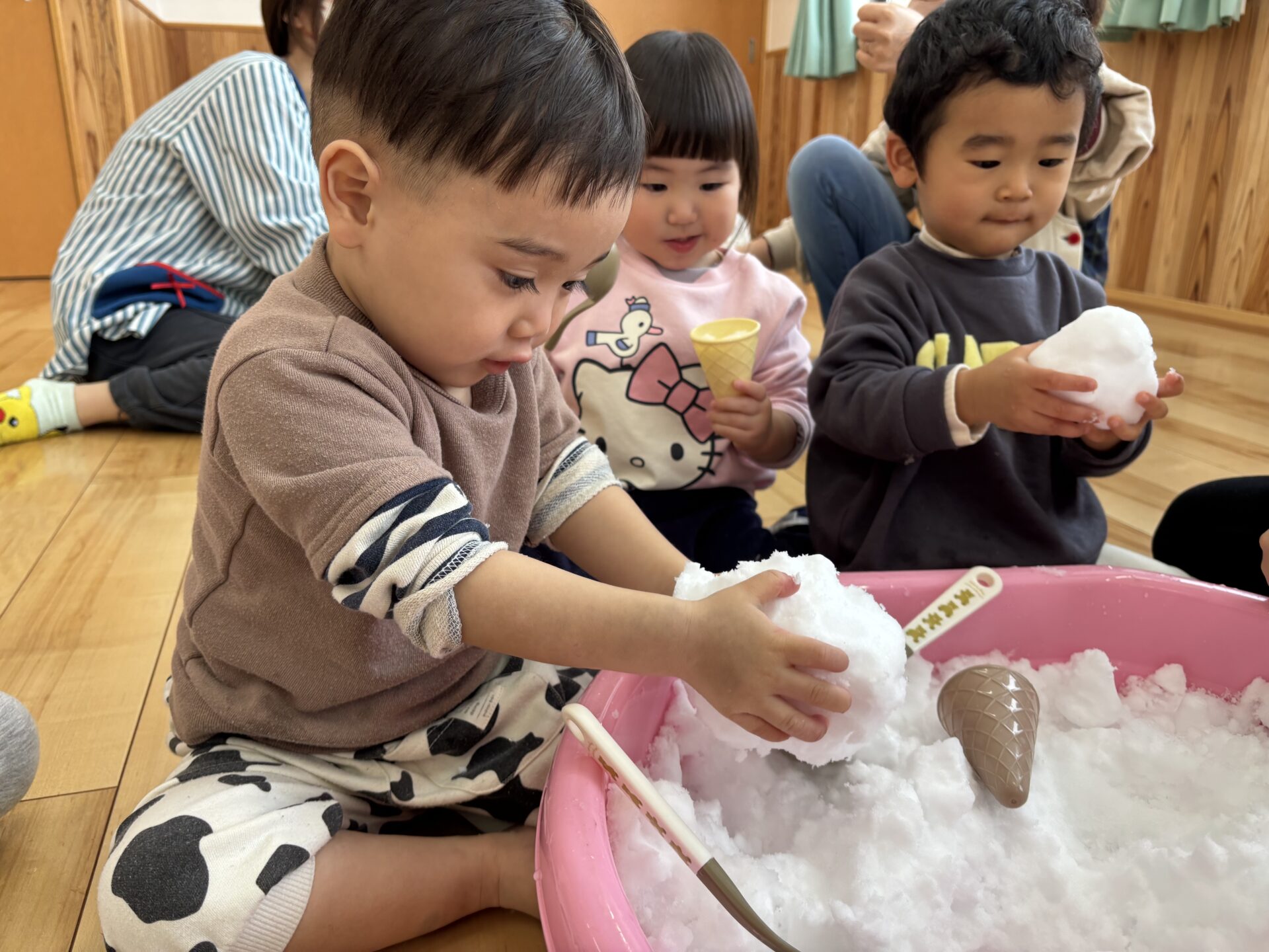 そーっと触れたり、握ったりしながら、思い思いに雪の感触を楽しんでいます。