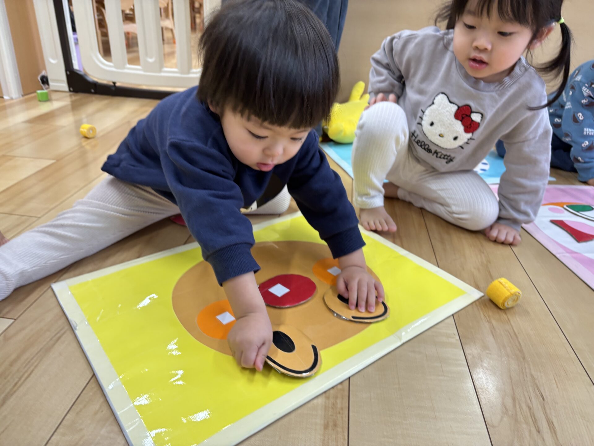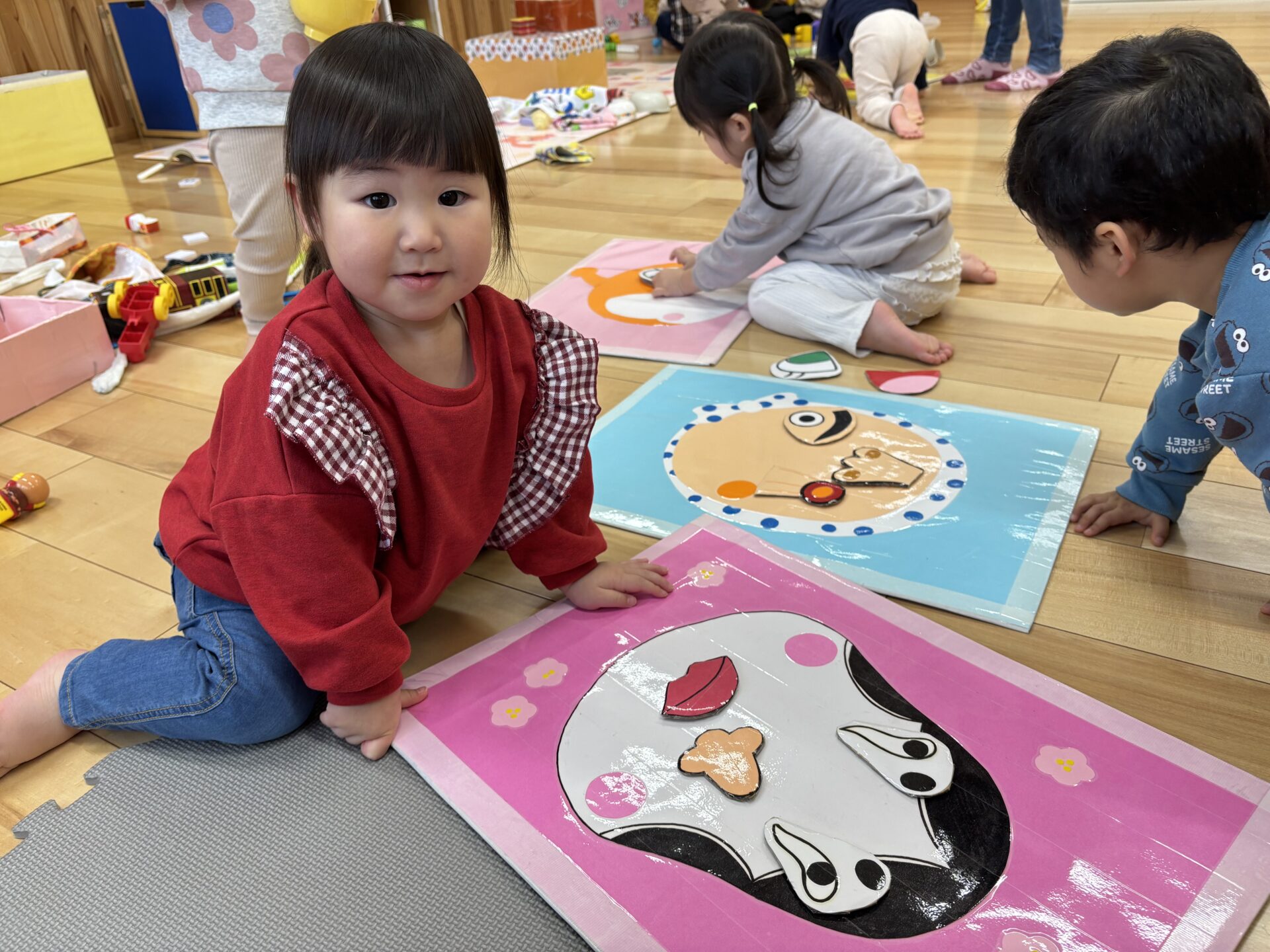 目・口・鼻などの位置が分かるようになったうみ組(1歳児)さん。