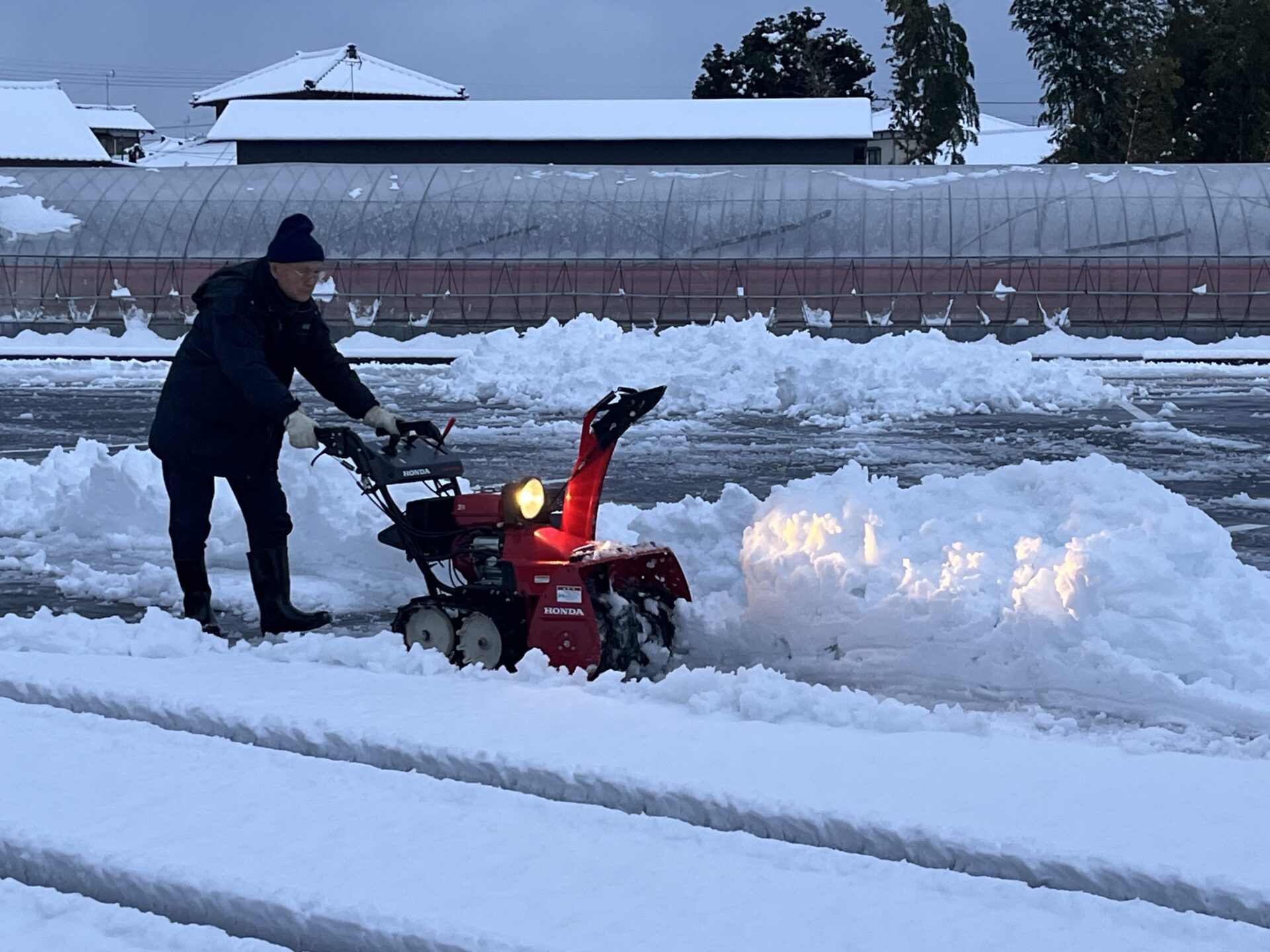 職員は、まだ早朝の暗いうちから、出勤して雪かきに励んでいます。